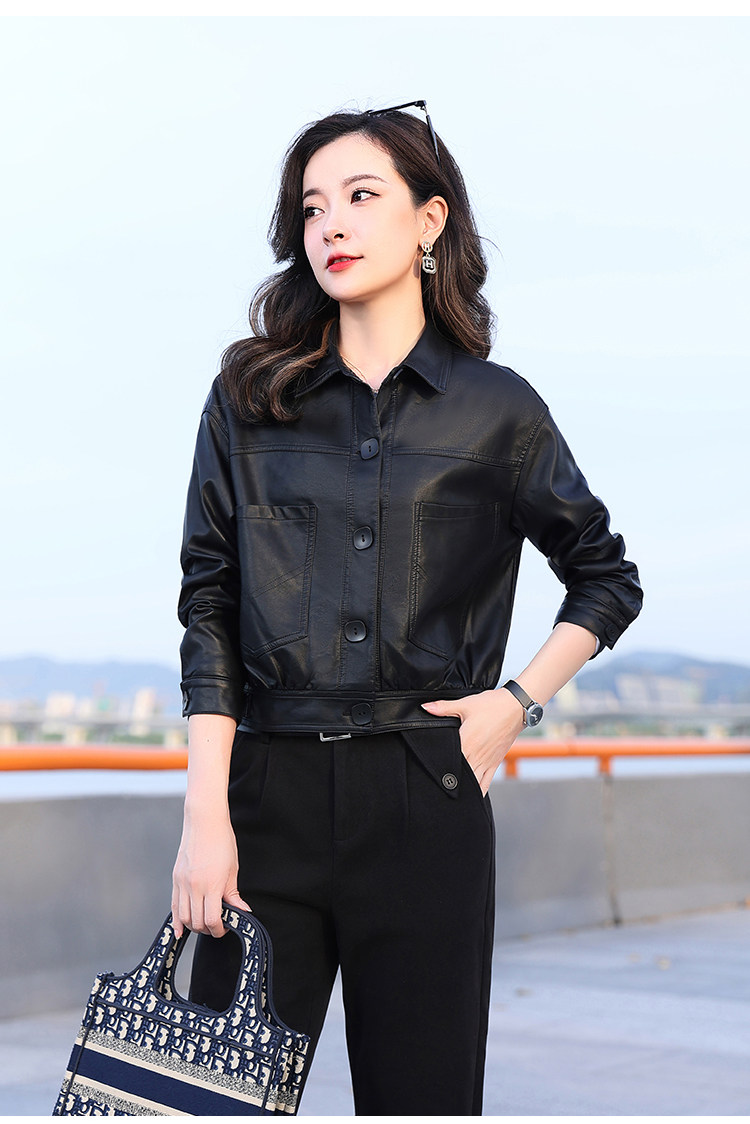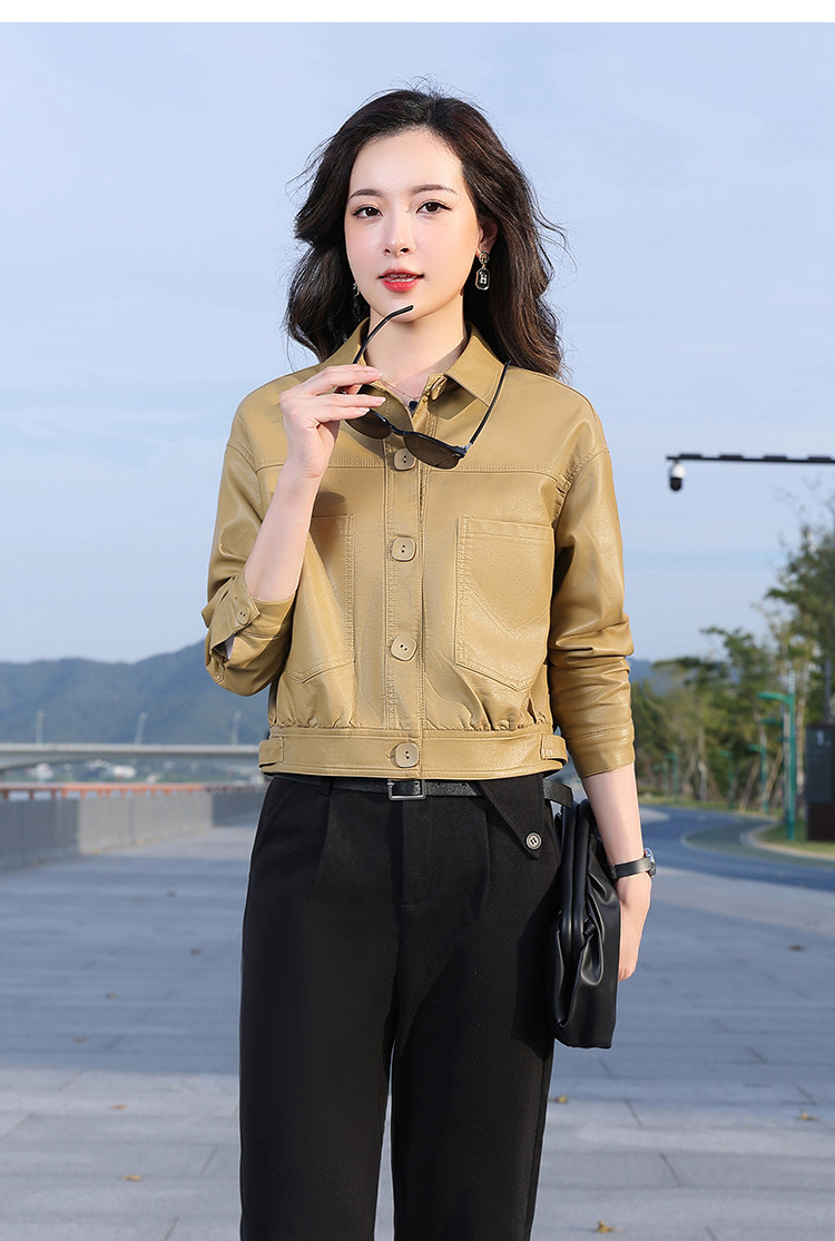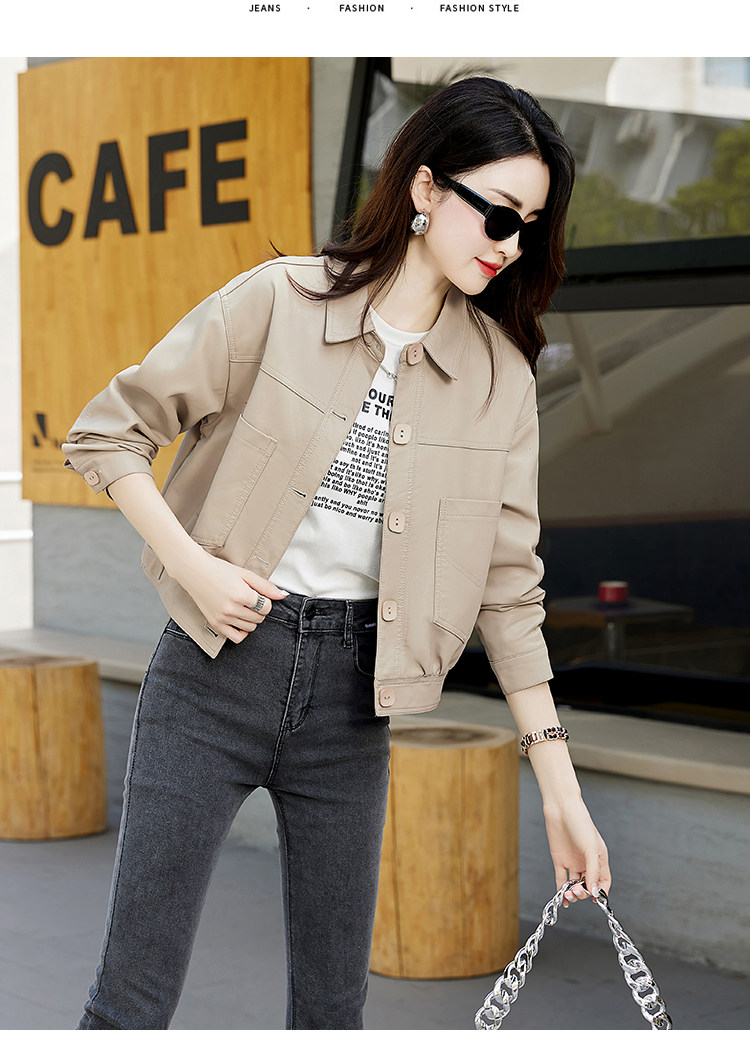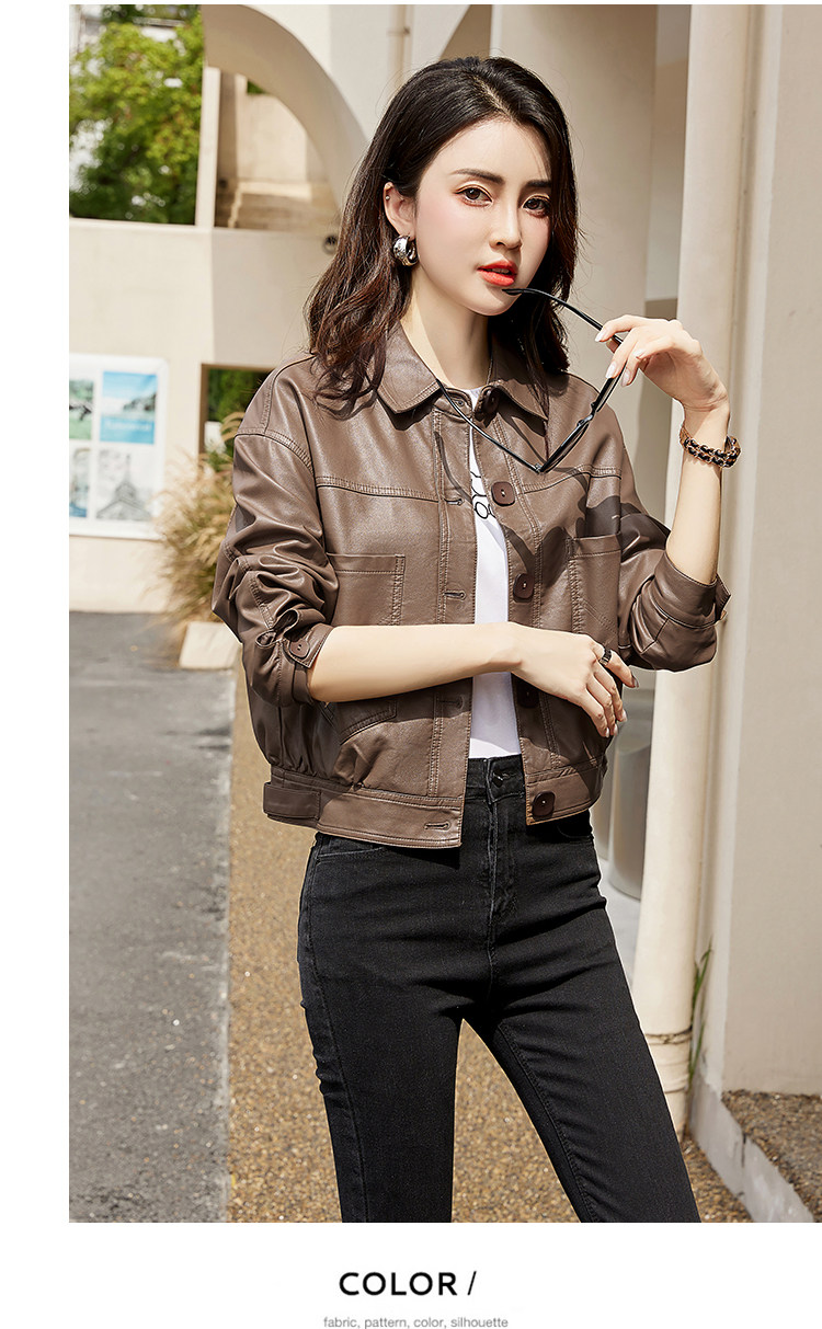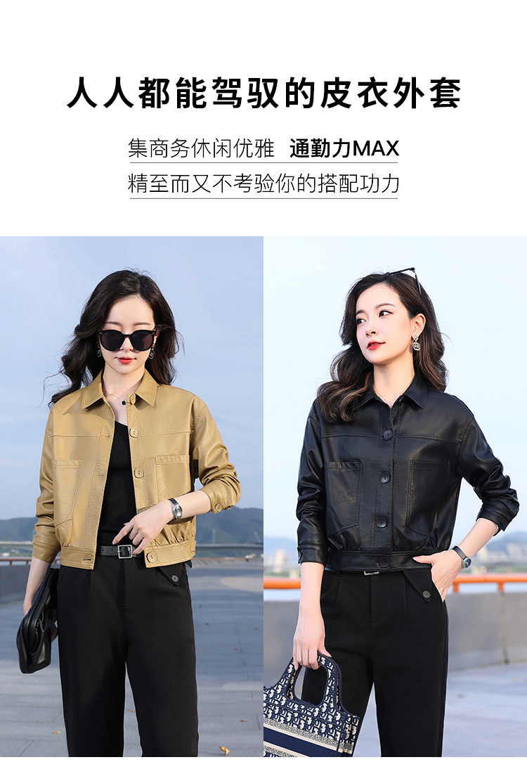 Leather jacket women's 2024 autumn new loose and popular maillard motorcycle short sheepskin jacket casual top
