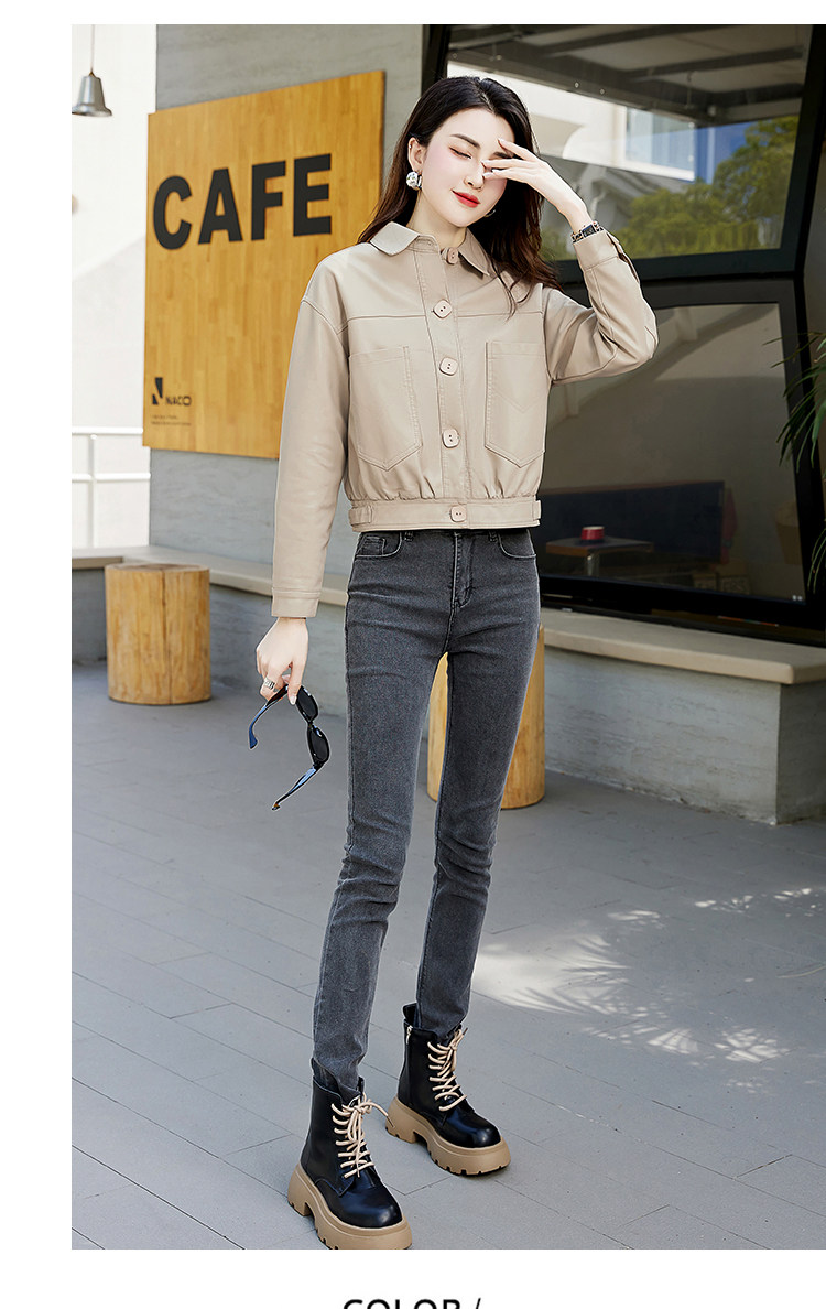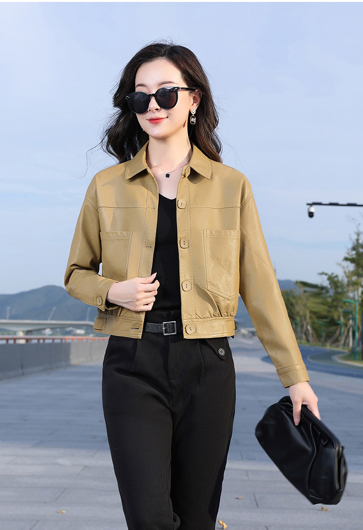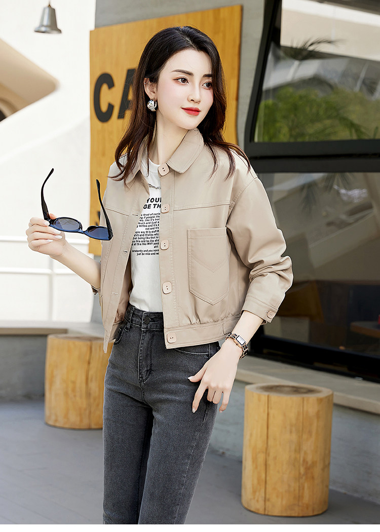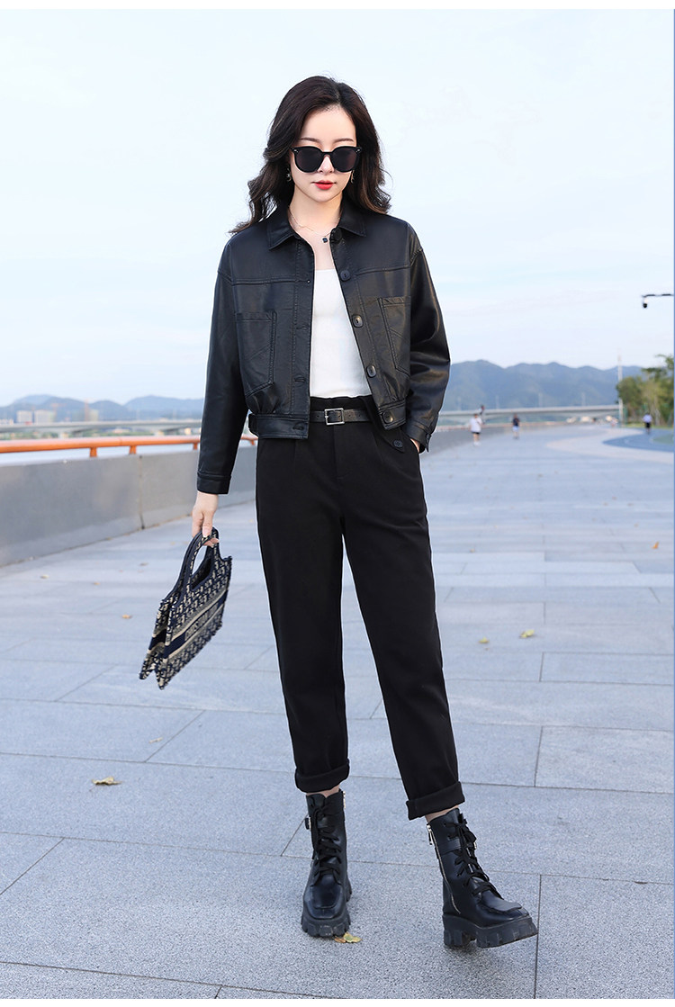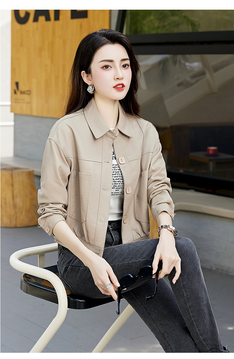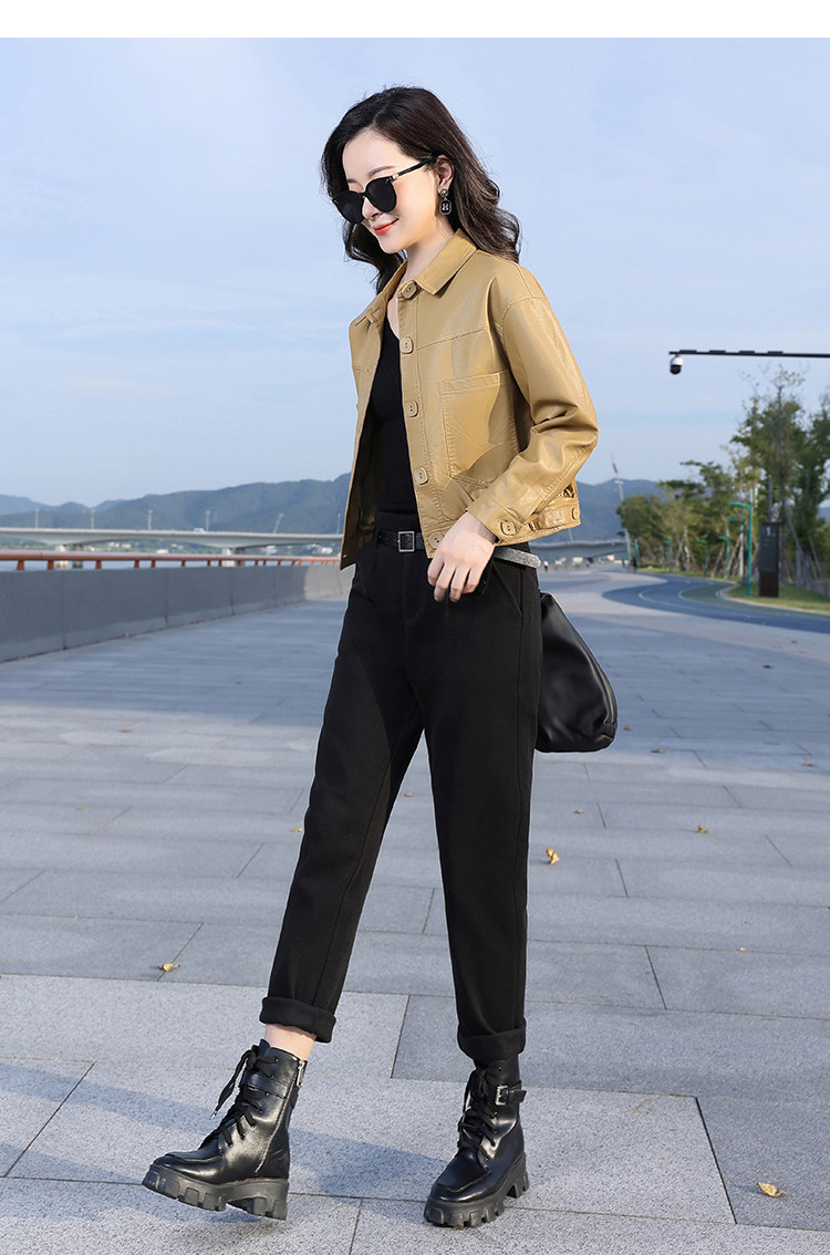 Leather jacket women's 2024 autumn new loose and popular maillard motorcycle short sheepskin jacket casual top