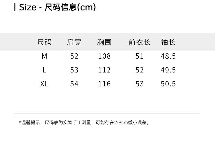 Size (cm) 42 44 46 48 50