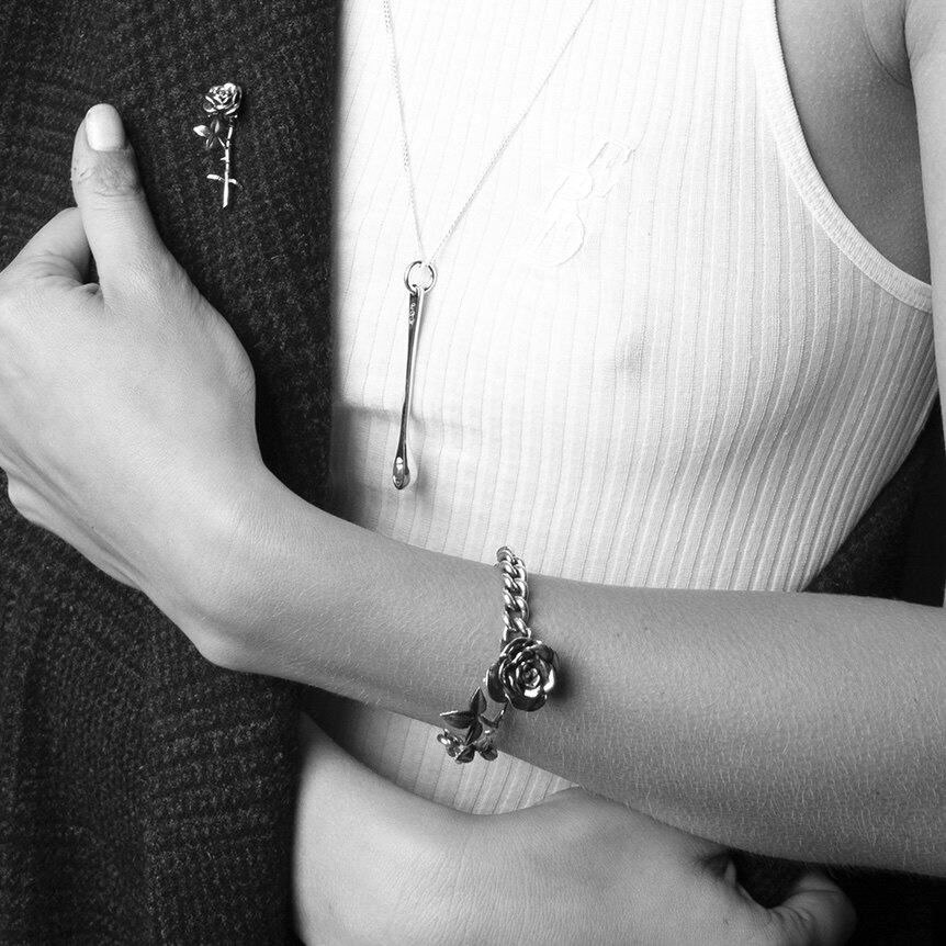 KIOSK rose personalized hip-hop couple erd silver bracelet men's high-end light luxury ins design trend bracelet for women