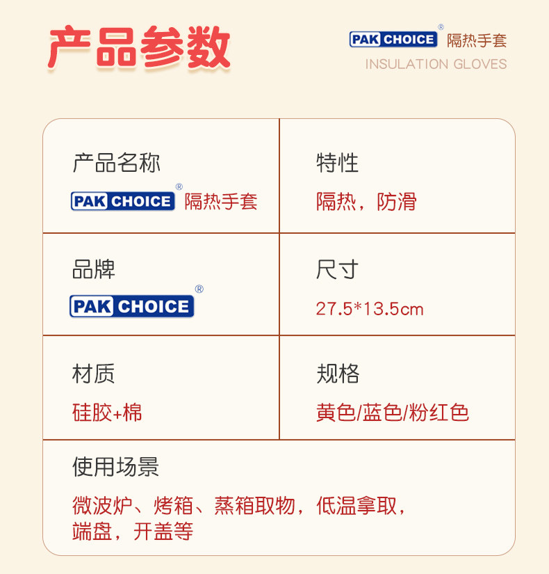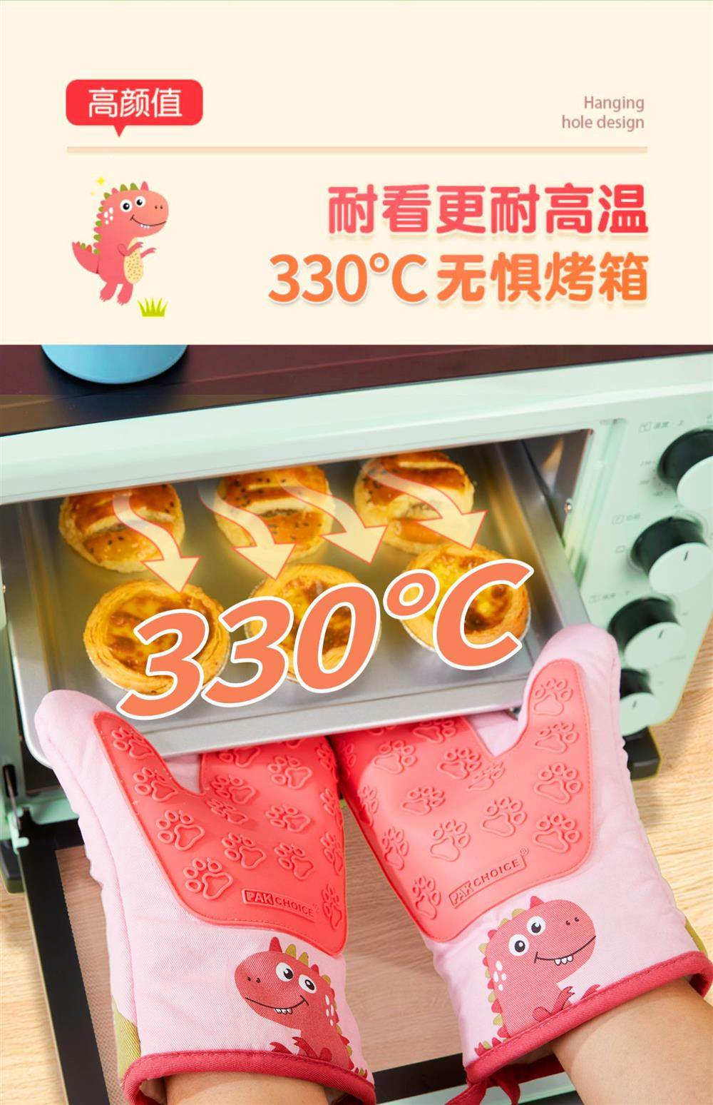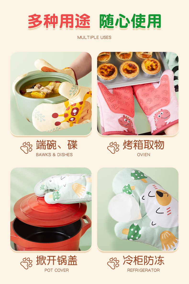 隔热防烫手套烤箱手套加厚微波炉烘焙手套耐高温防滑厨房硅胶手套
