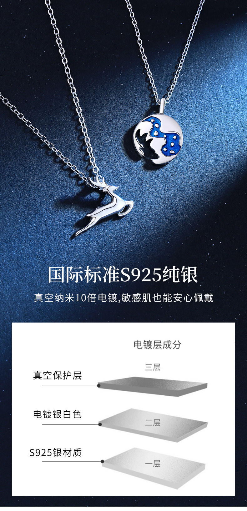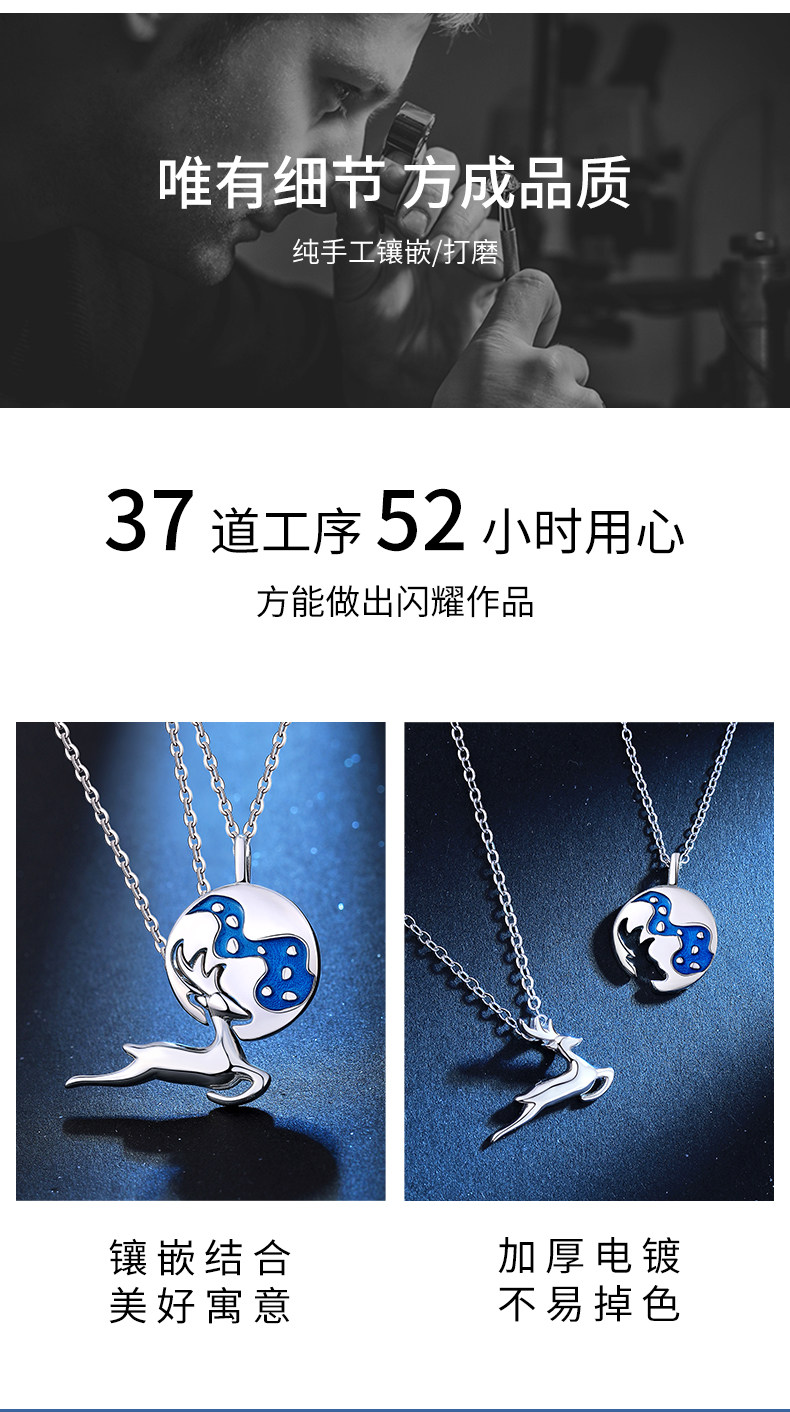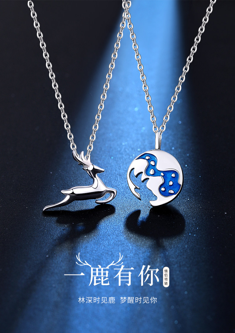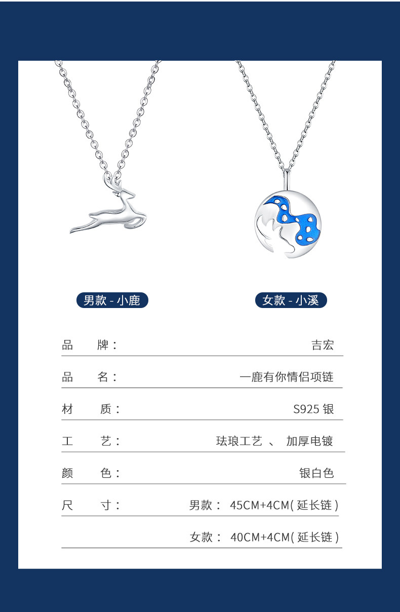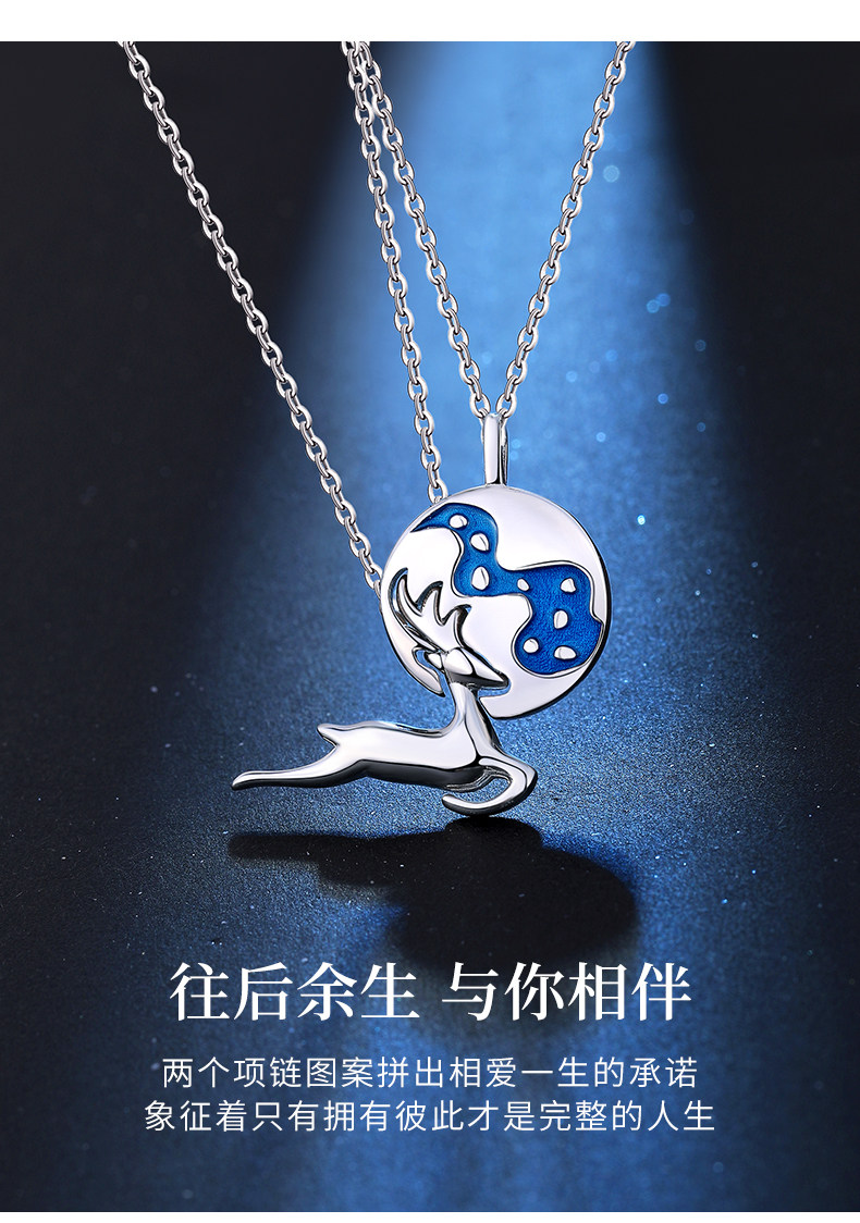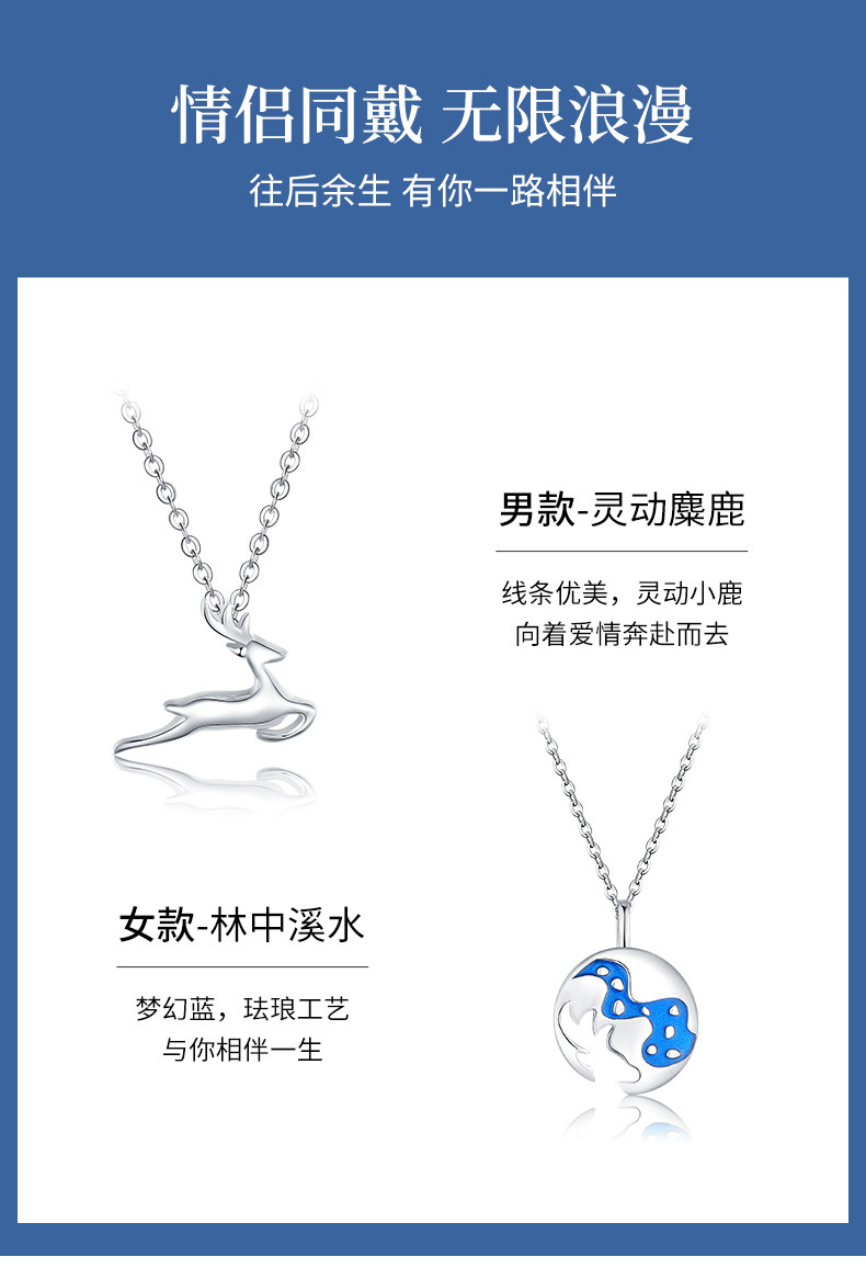 一鹿路有你情侣项链一对纯银男女款轻奢高级感吊坠生日礼物送女友