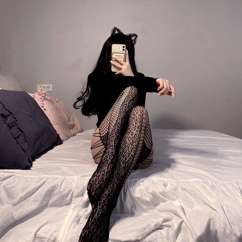 Large size 200jin jin is equal to 0.5kg fat mm sexy hollow fishnet stockings with diamonds leopard print pantyhose open crotch hot girl black stockings