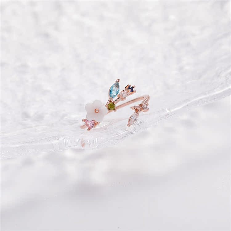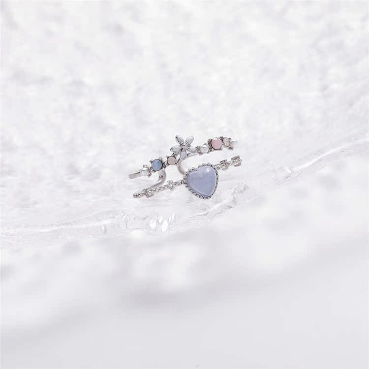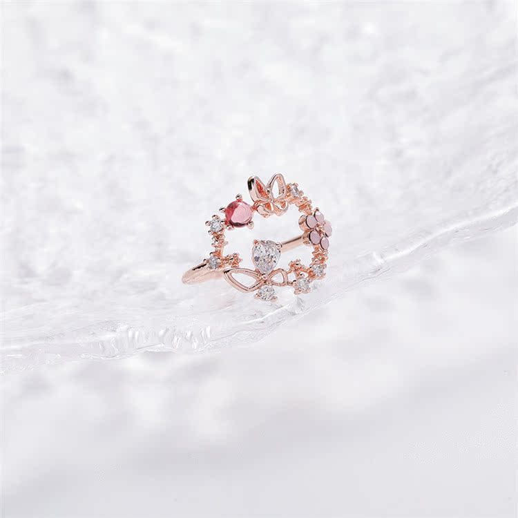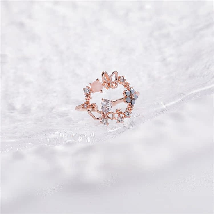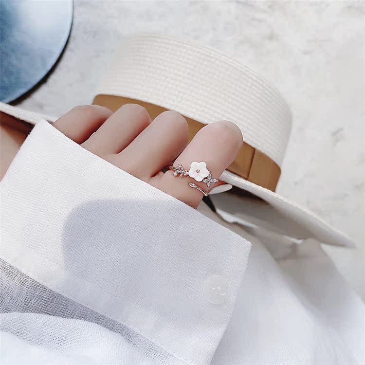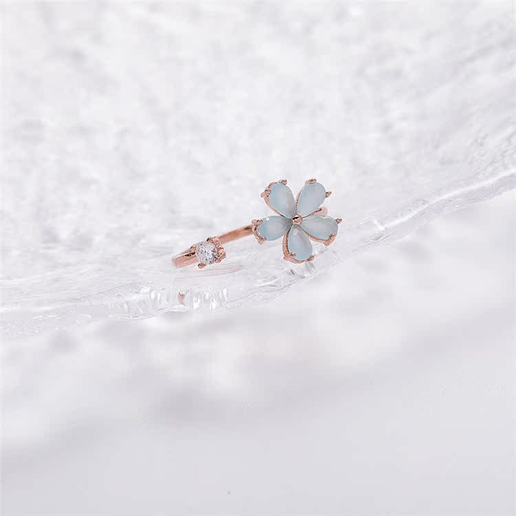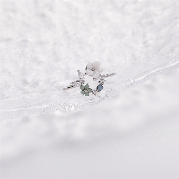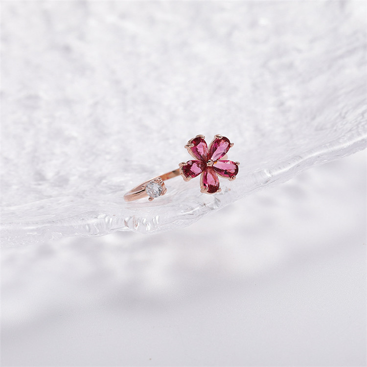 Korean and Japanese Trendy Sparkling Crystal Zircon Flower Ring Micro-Inlaid Sweet Versatile Heart Flower Open Ring Jewelry