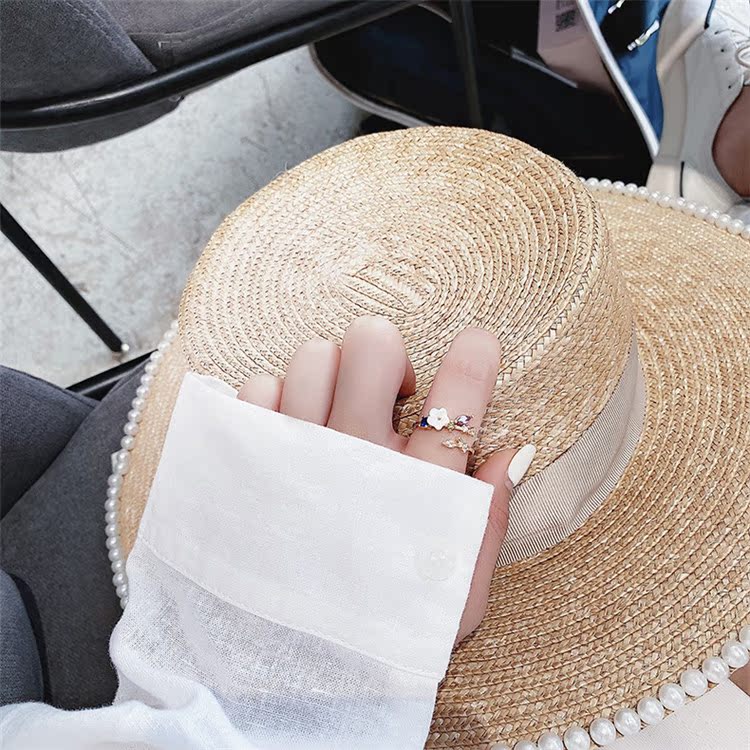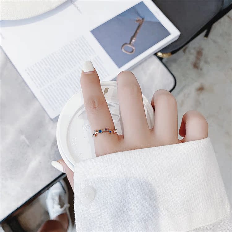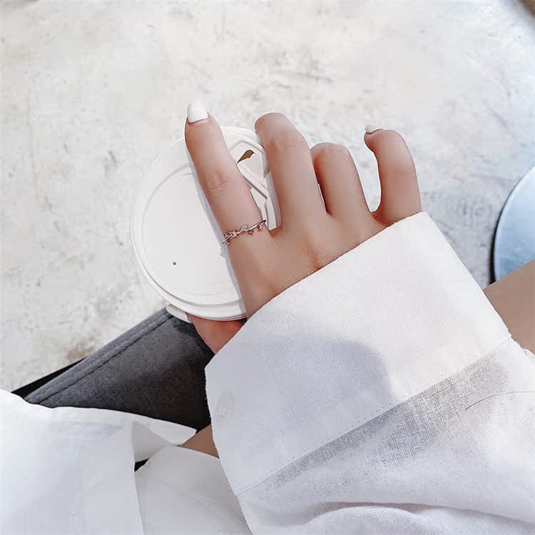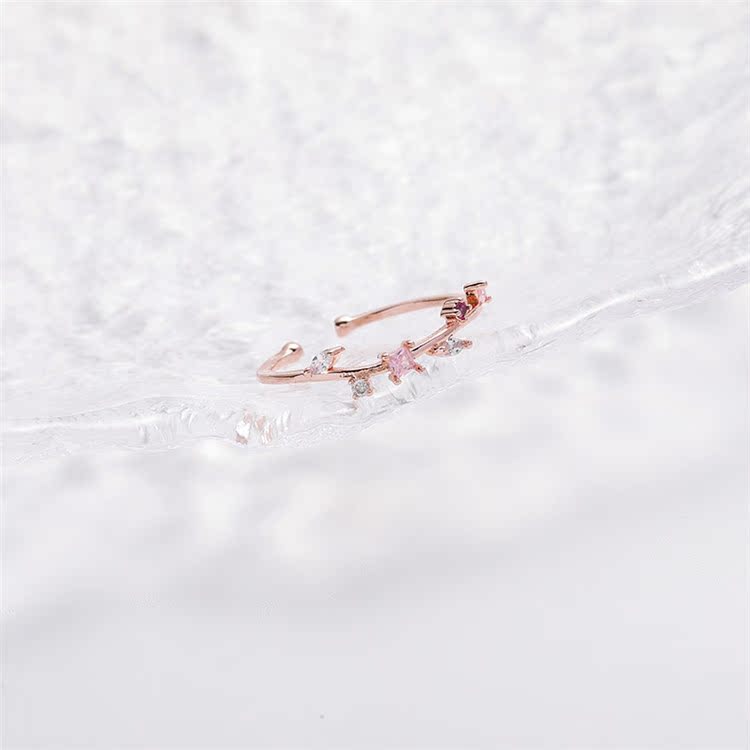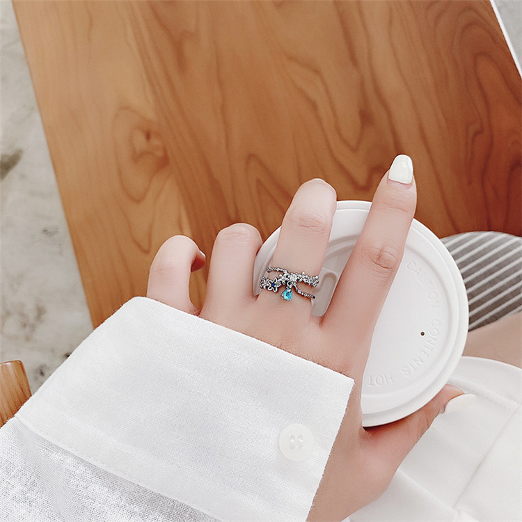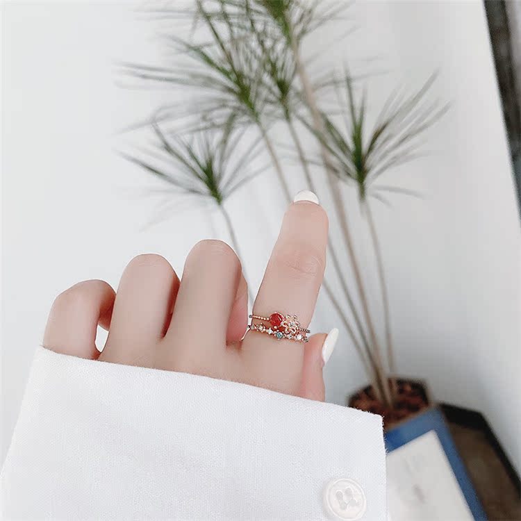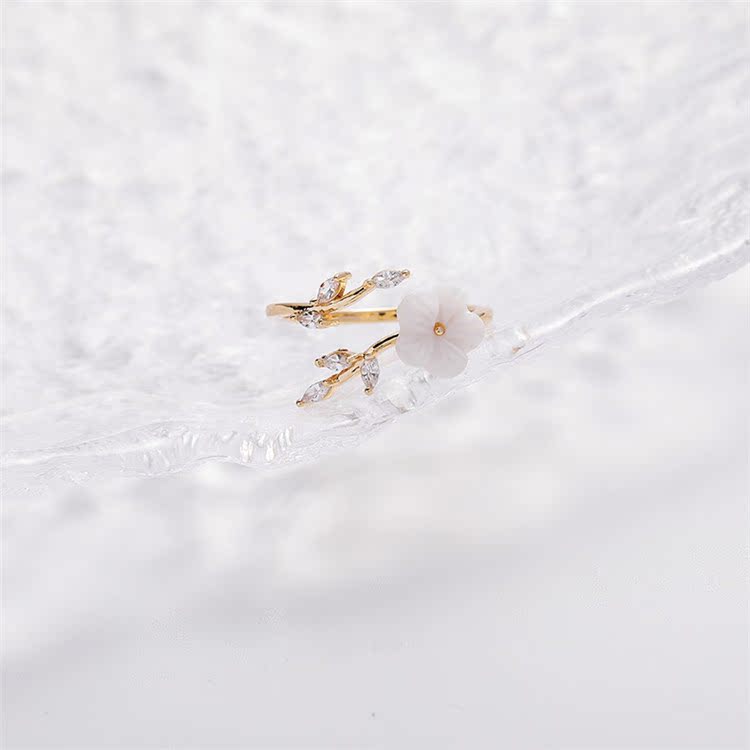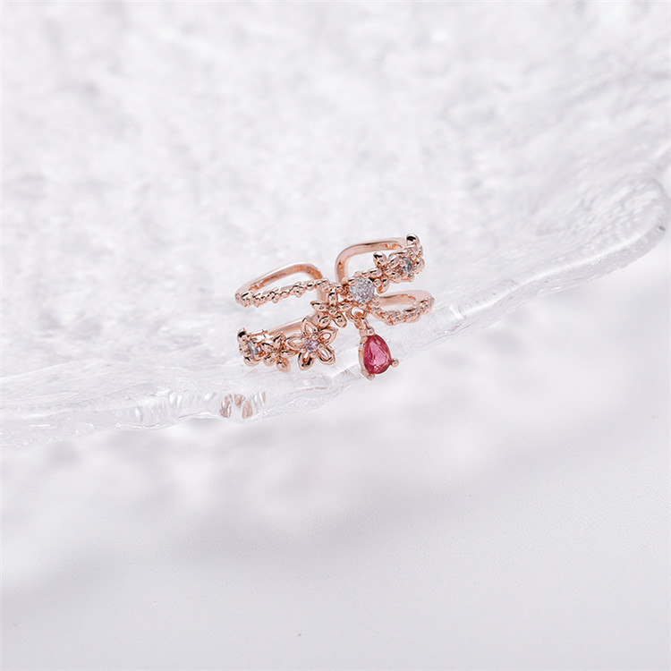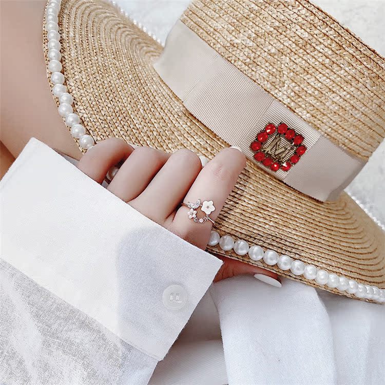 Korean and Japanese Trendy Sparkling Crystal Zircon Flower Ring Micro-Inlaid Sweet Versatile Heart Flower Open Ring Jewelry
