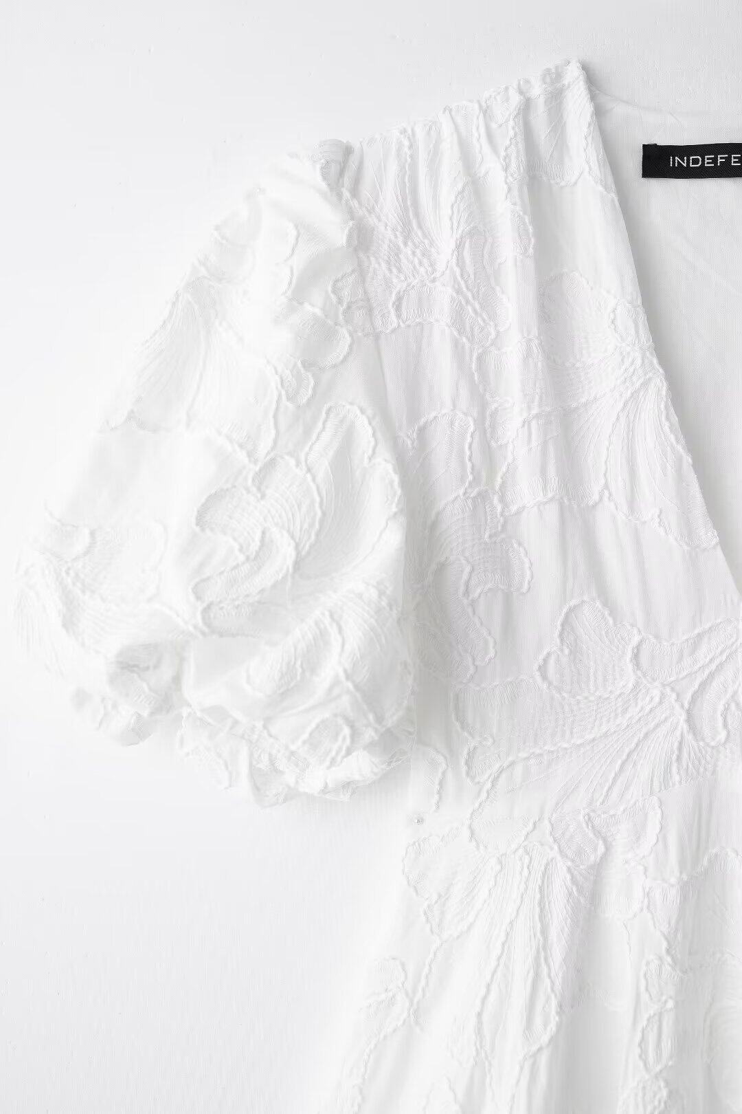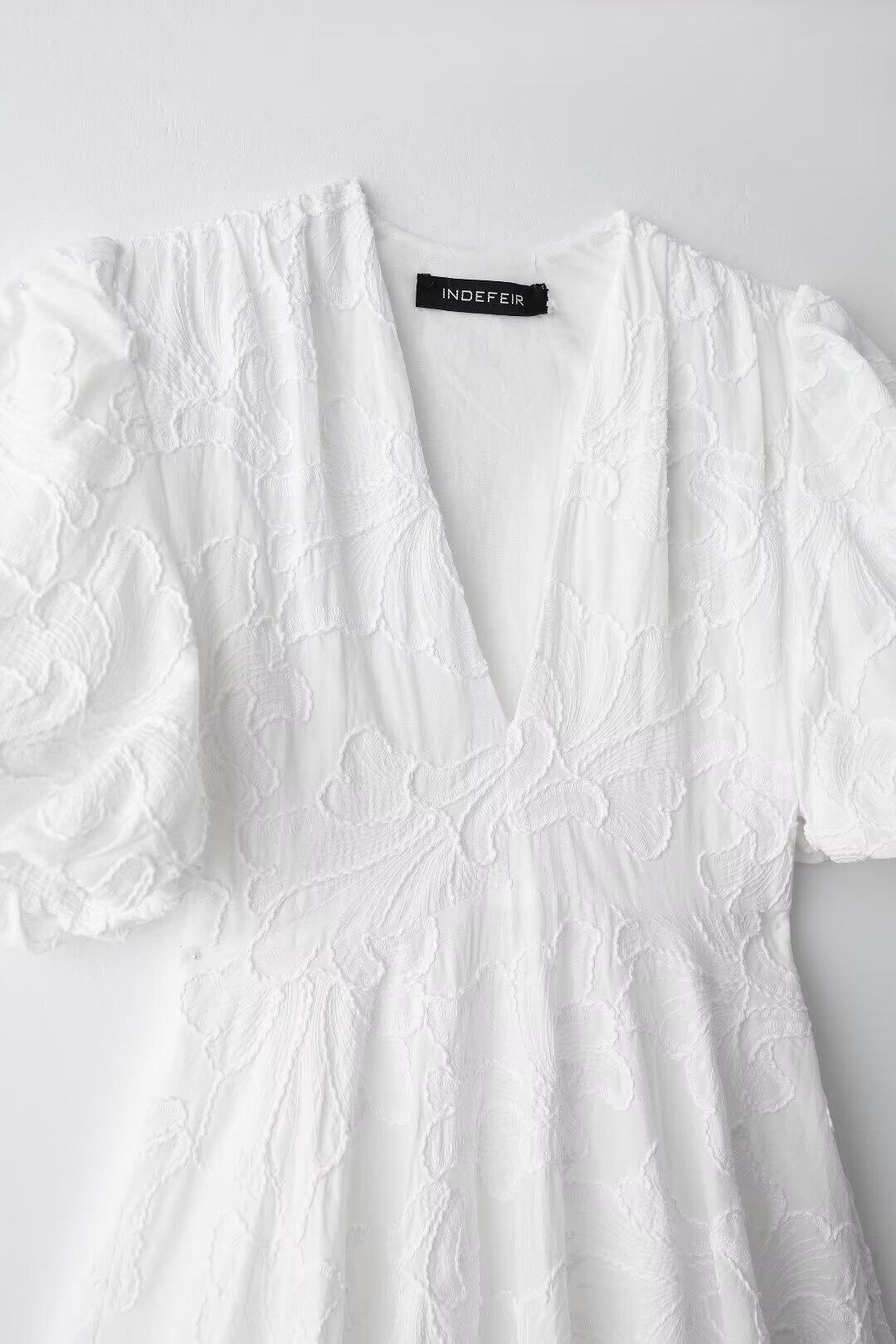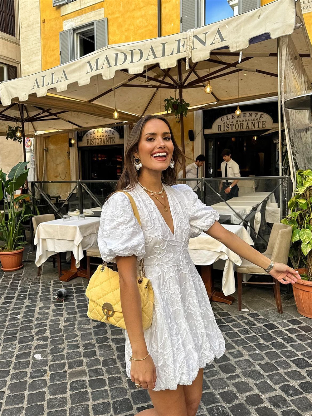 French heavy embroidery puff sleeves v-neck princess tutu white dress little man's first love little white dress