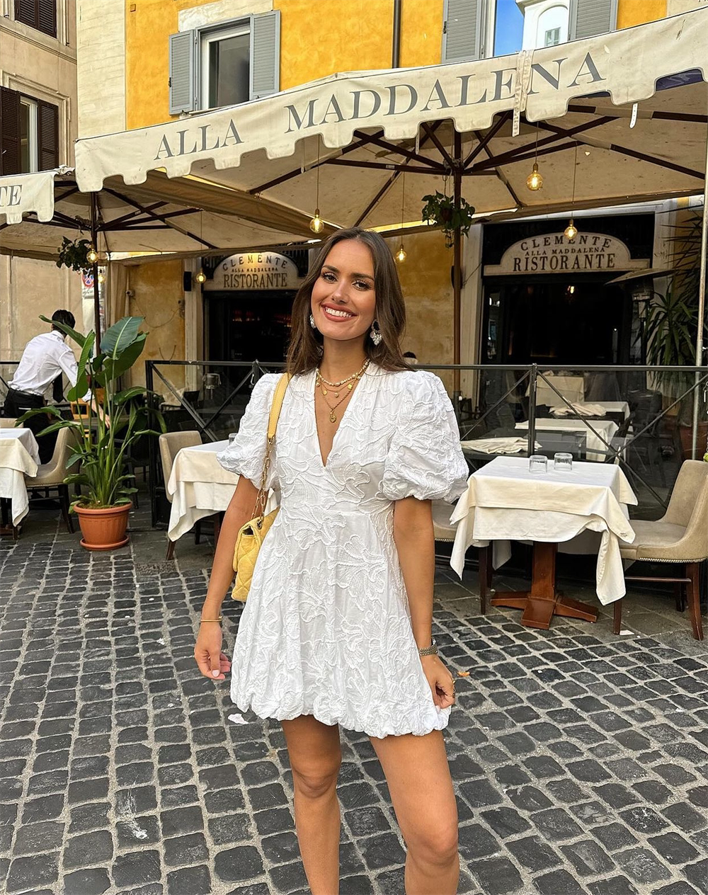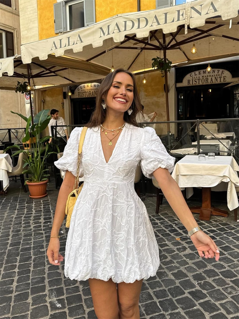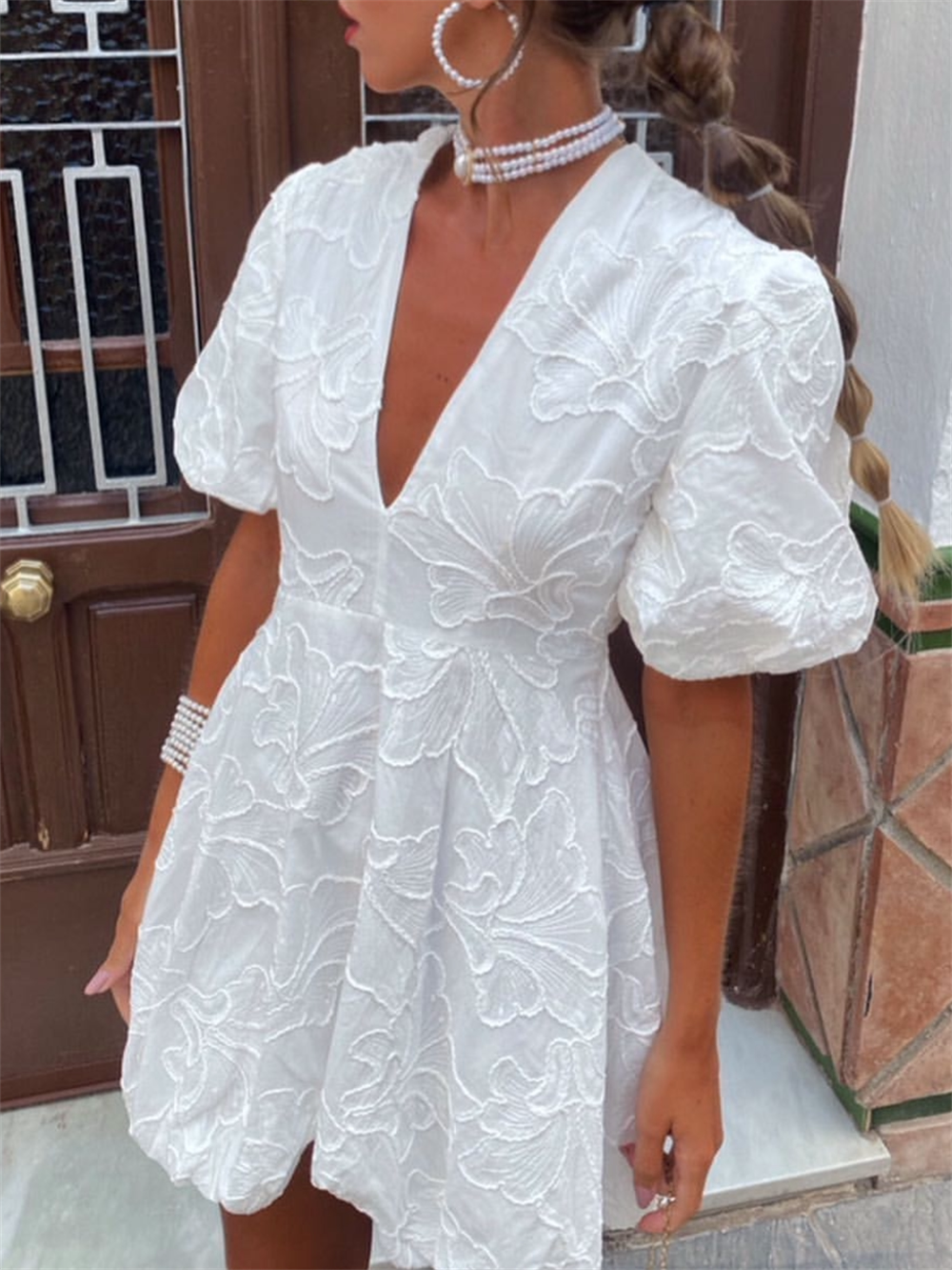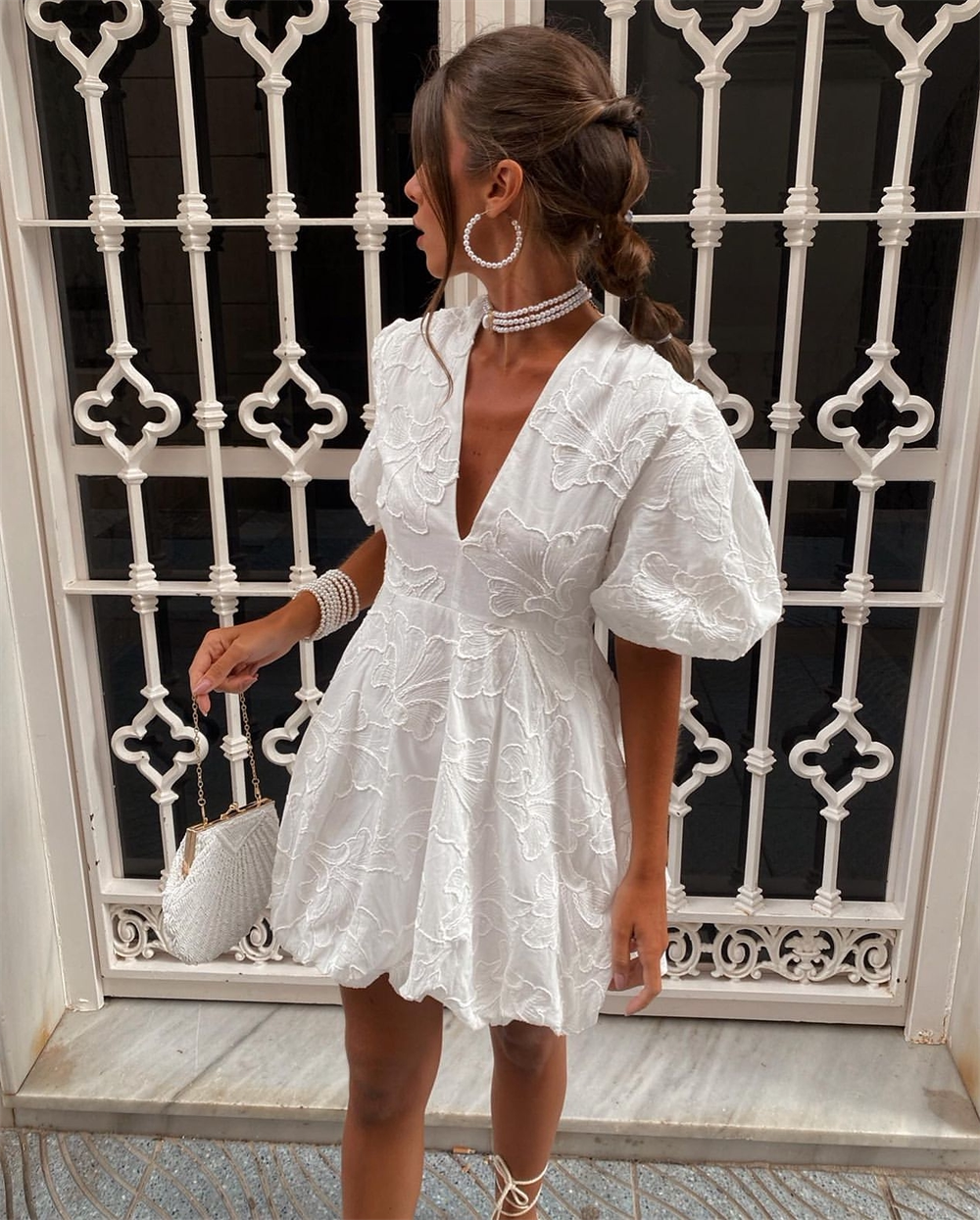 French heavy embroidery puff sleeves v-neck princess tutu white dress little man's first love little white dress