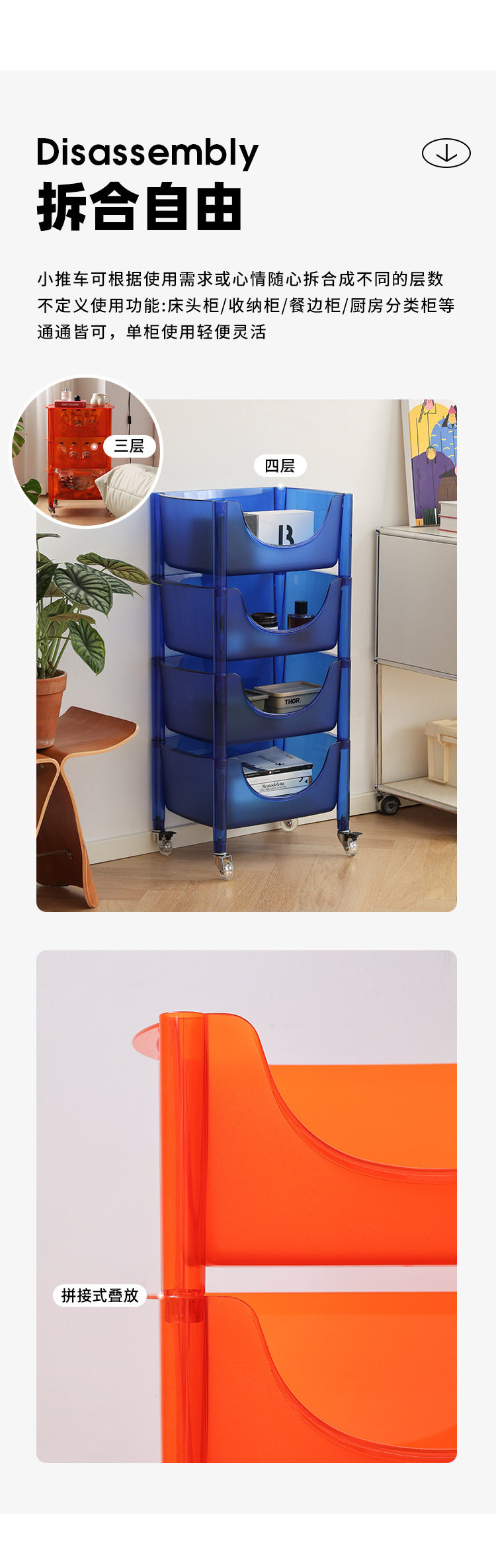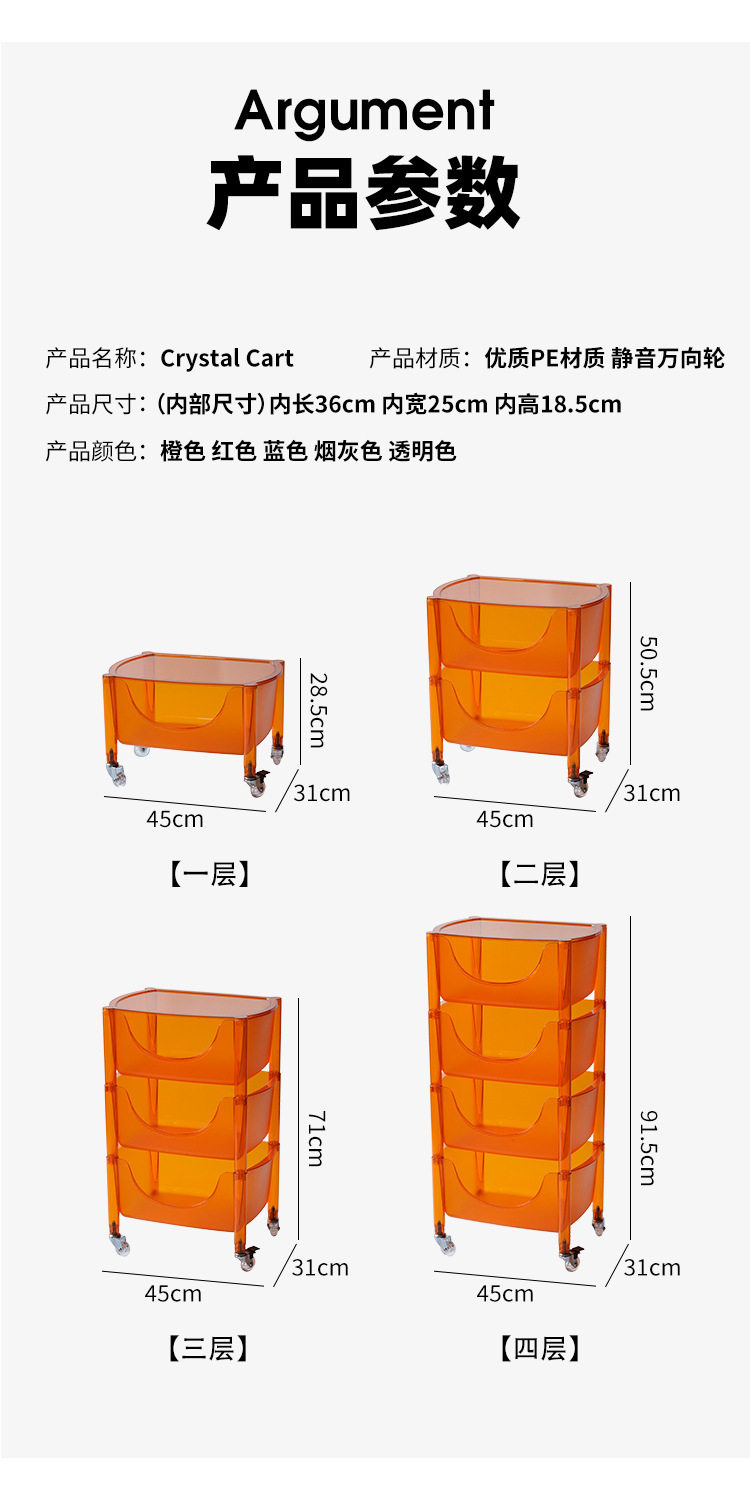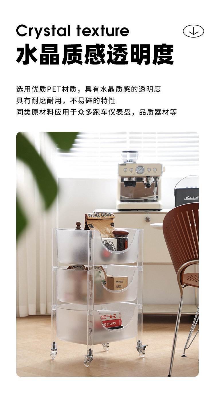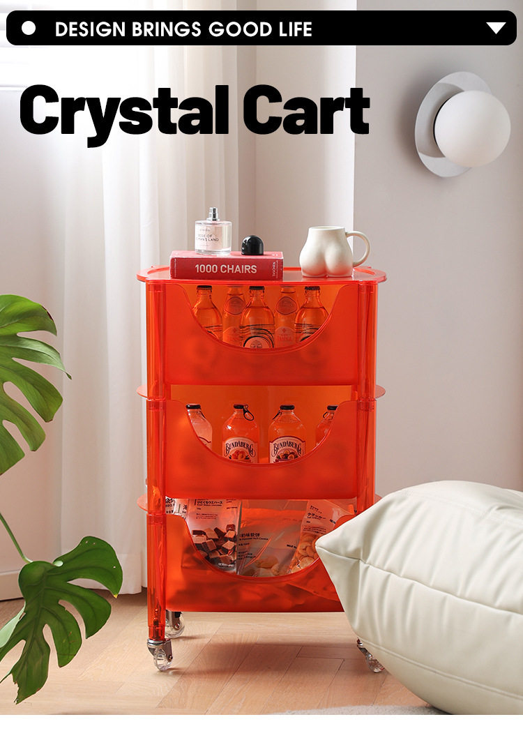 北欧亚克力家用置物架透明多层组合收纳储物柜子透明移动水晶推车