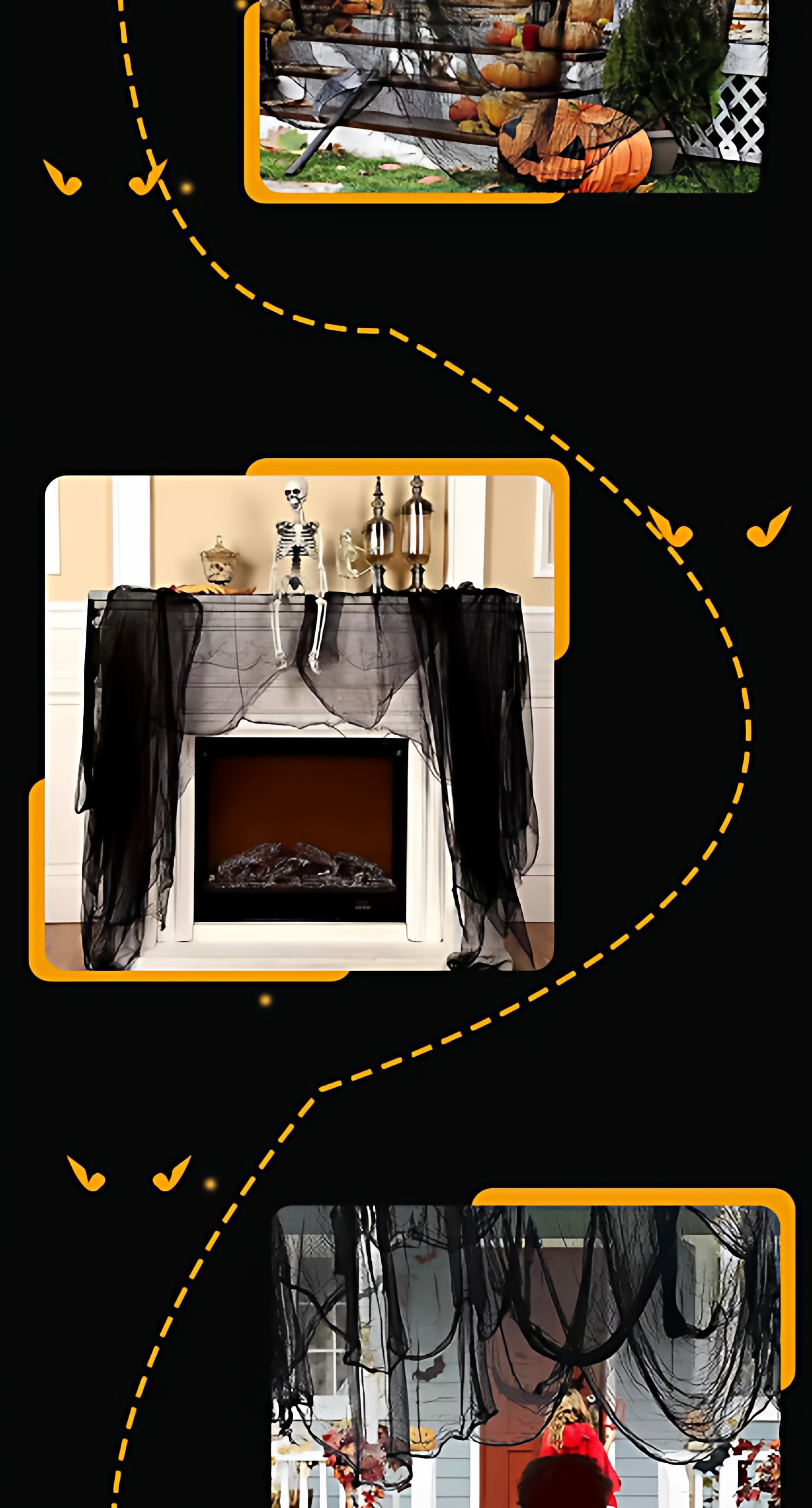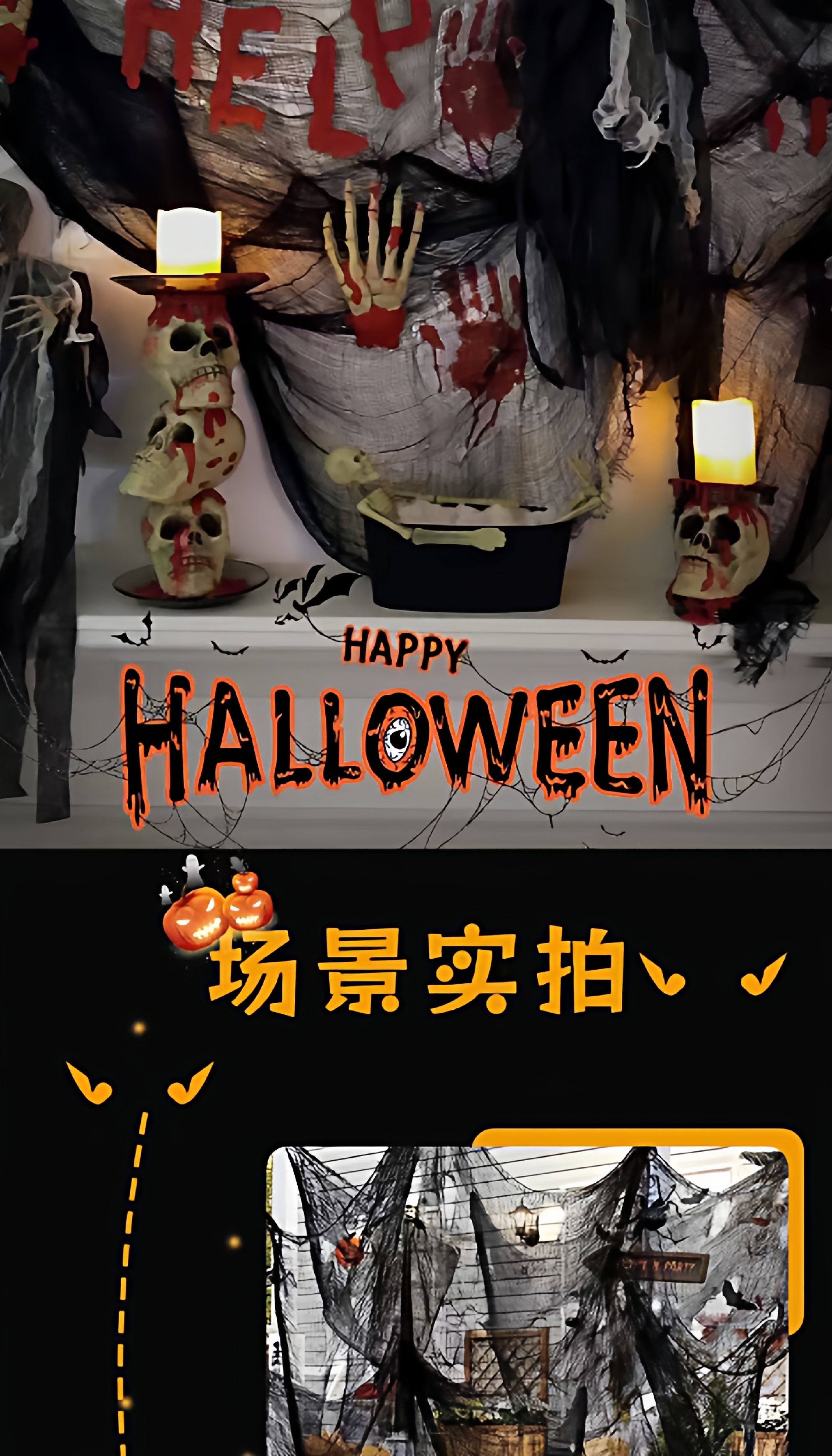 Halloween horror black gauze haunted house scene layout escape room decoration pendant black gauze party wall decoration
