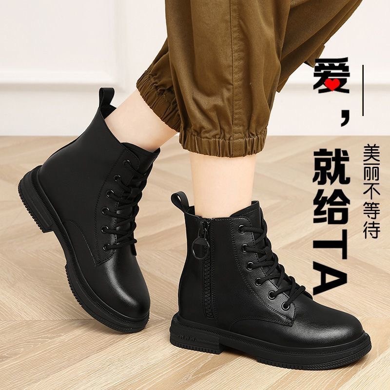 Brand withdrawn from the cabinet and cleared out genuine leather short boots for women 2025 autumn and winter new style single boots flat soft sole plus velvet martin boots