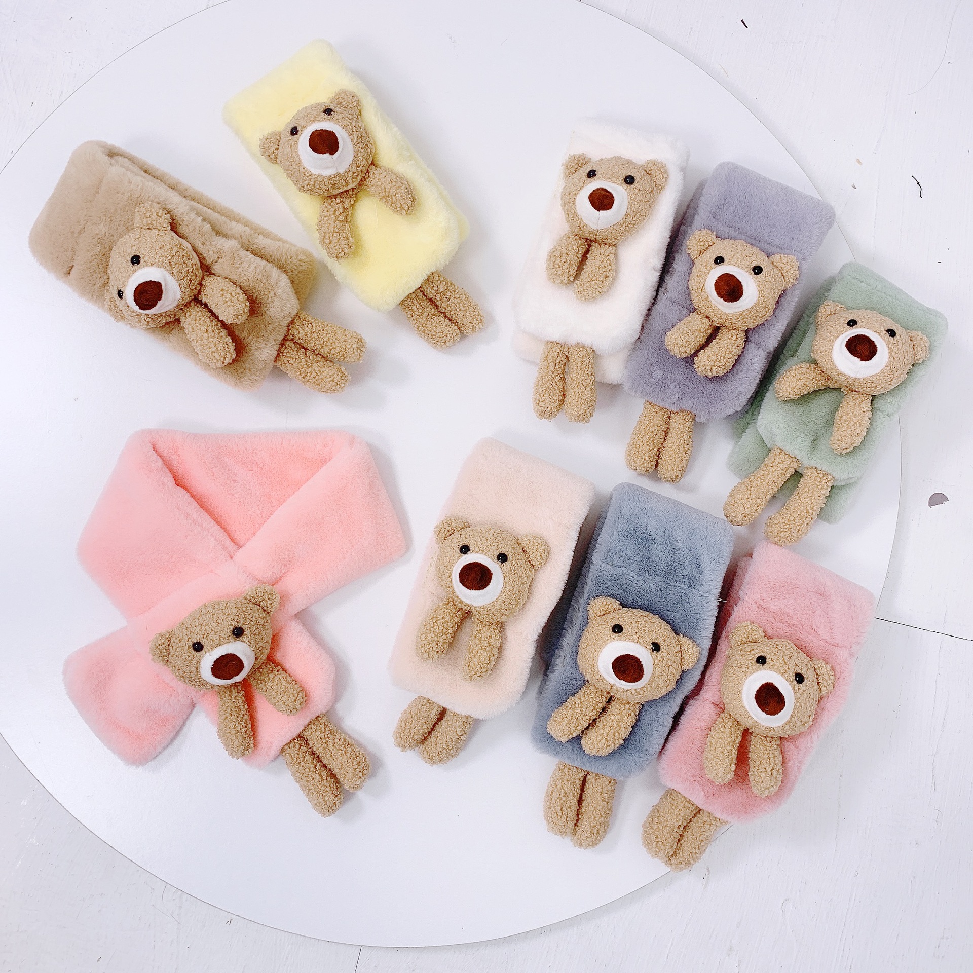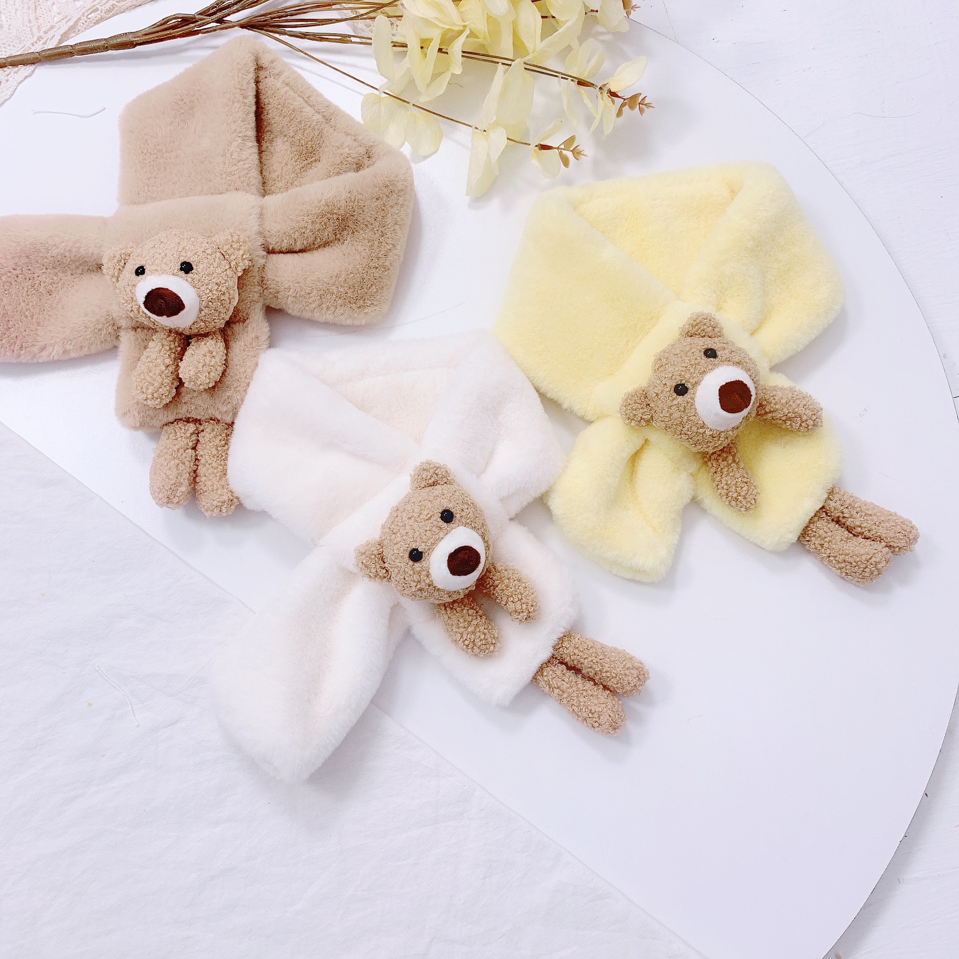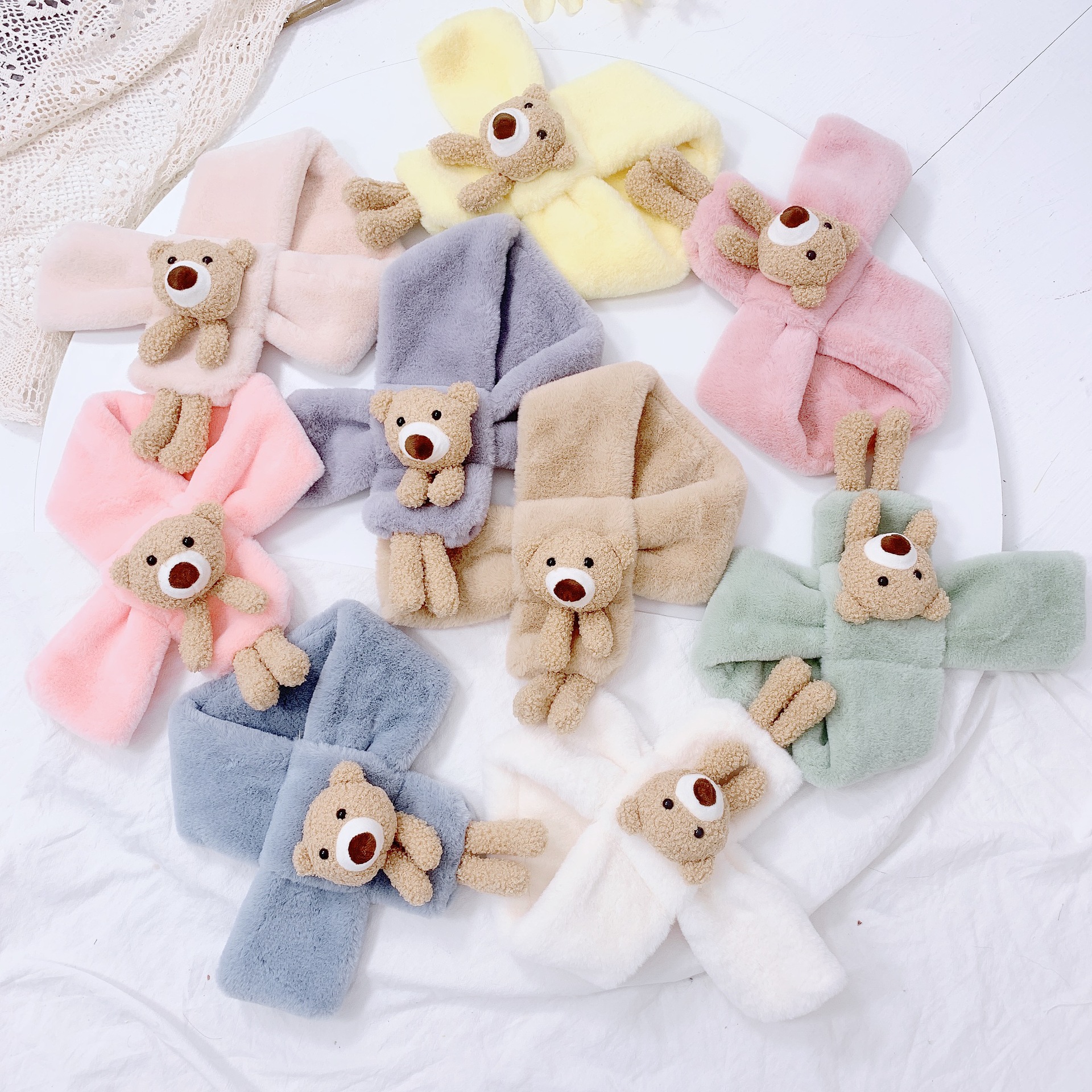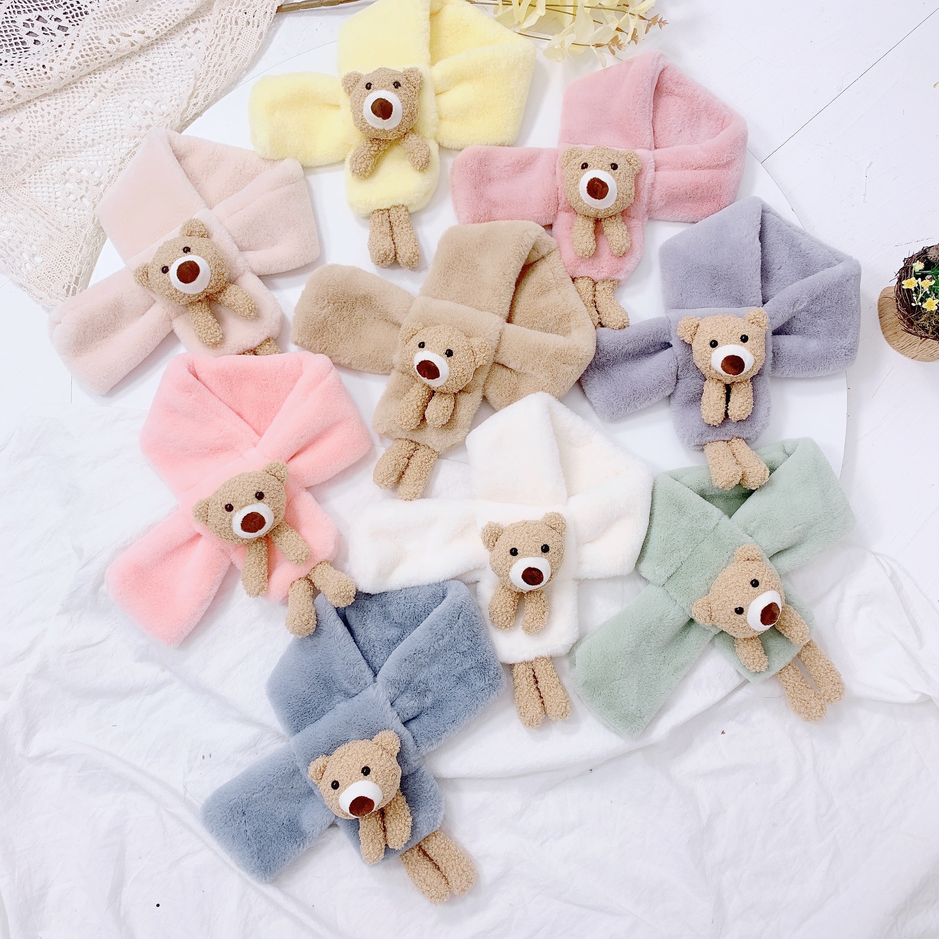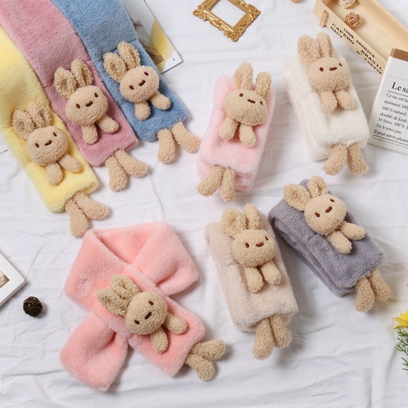 Children's scarf autumn and winter imitation rabbit fur three-dimensional cartoon teddy bear fur baby boy and girl warm cross scarf plush