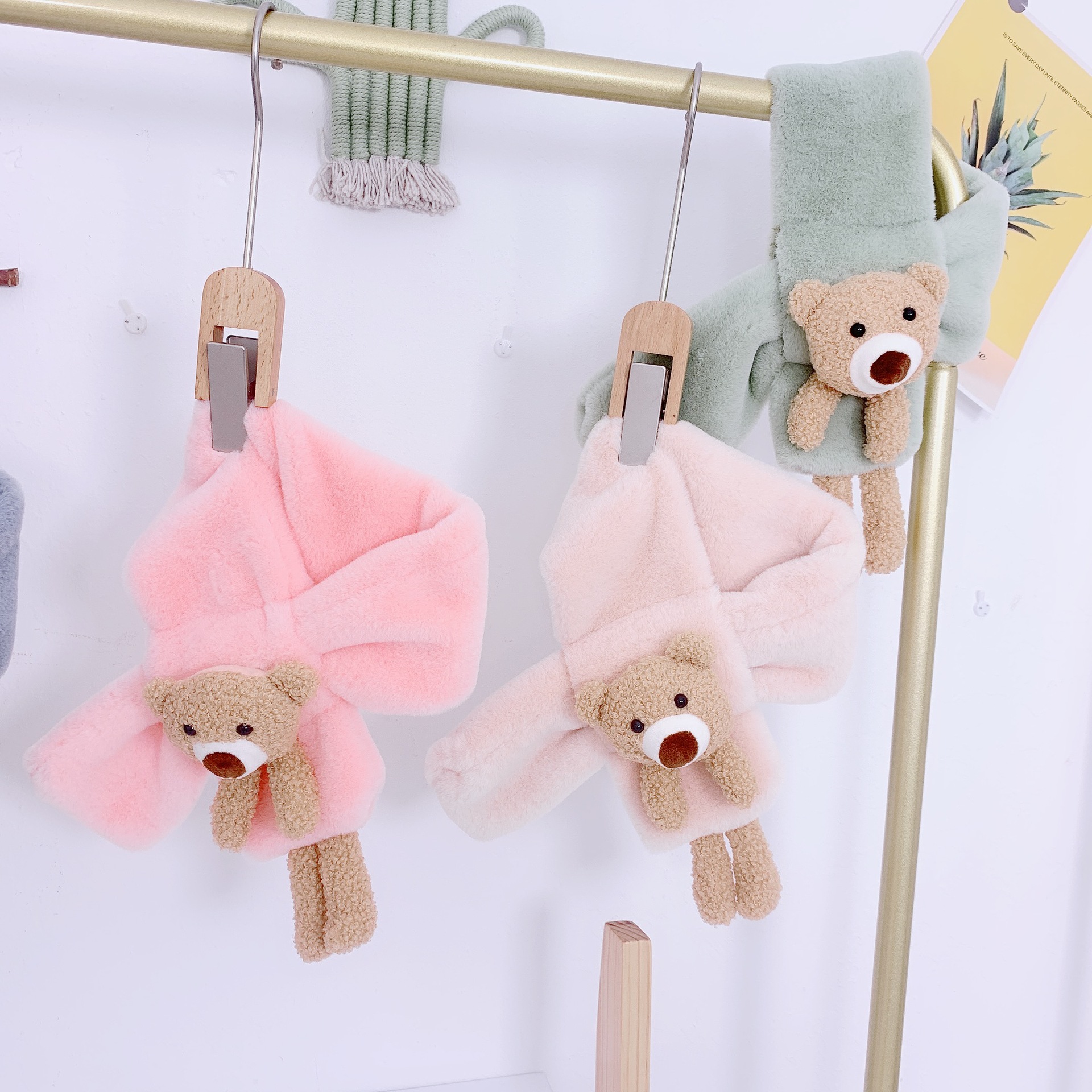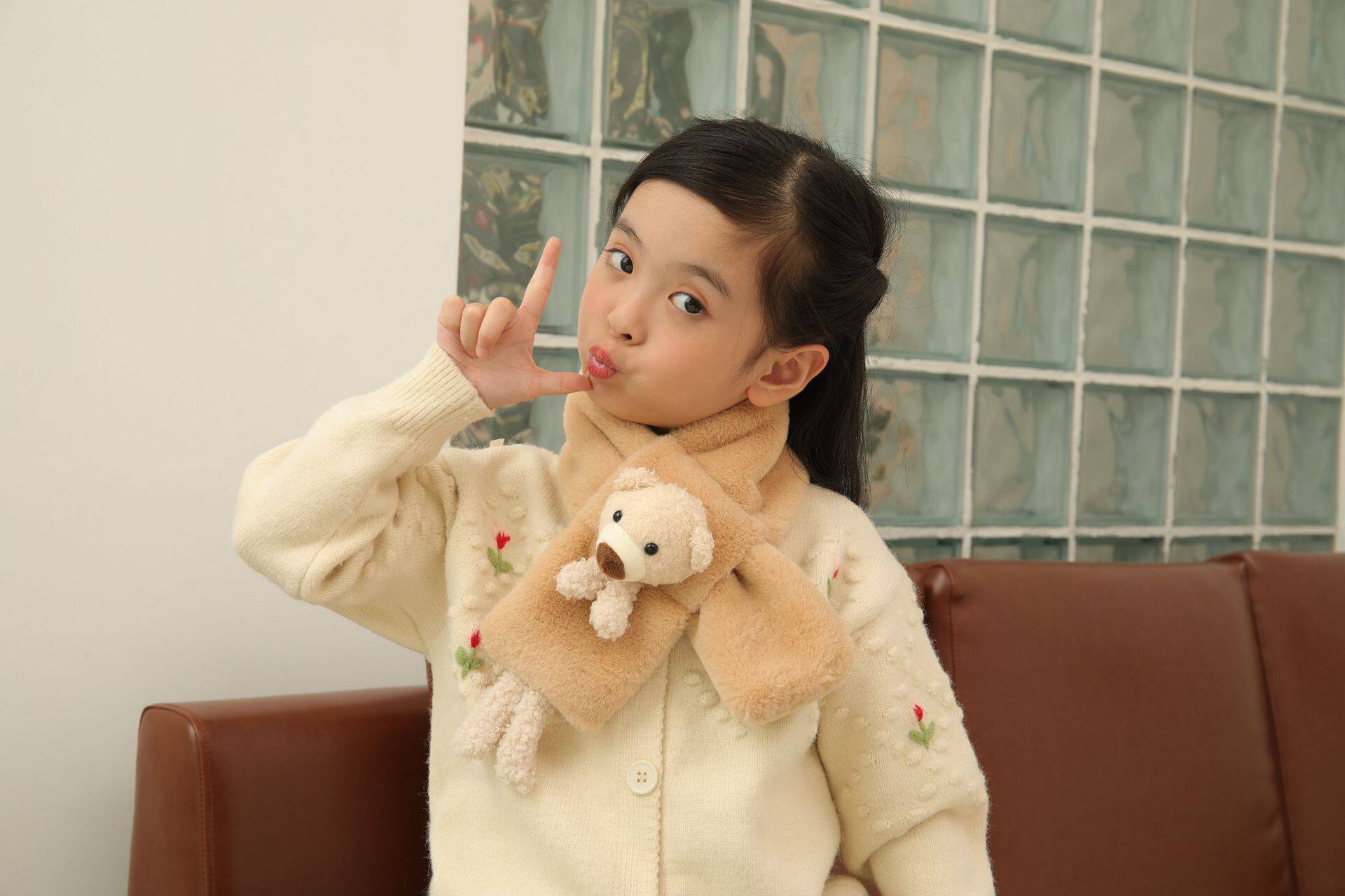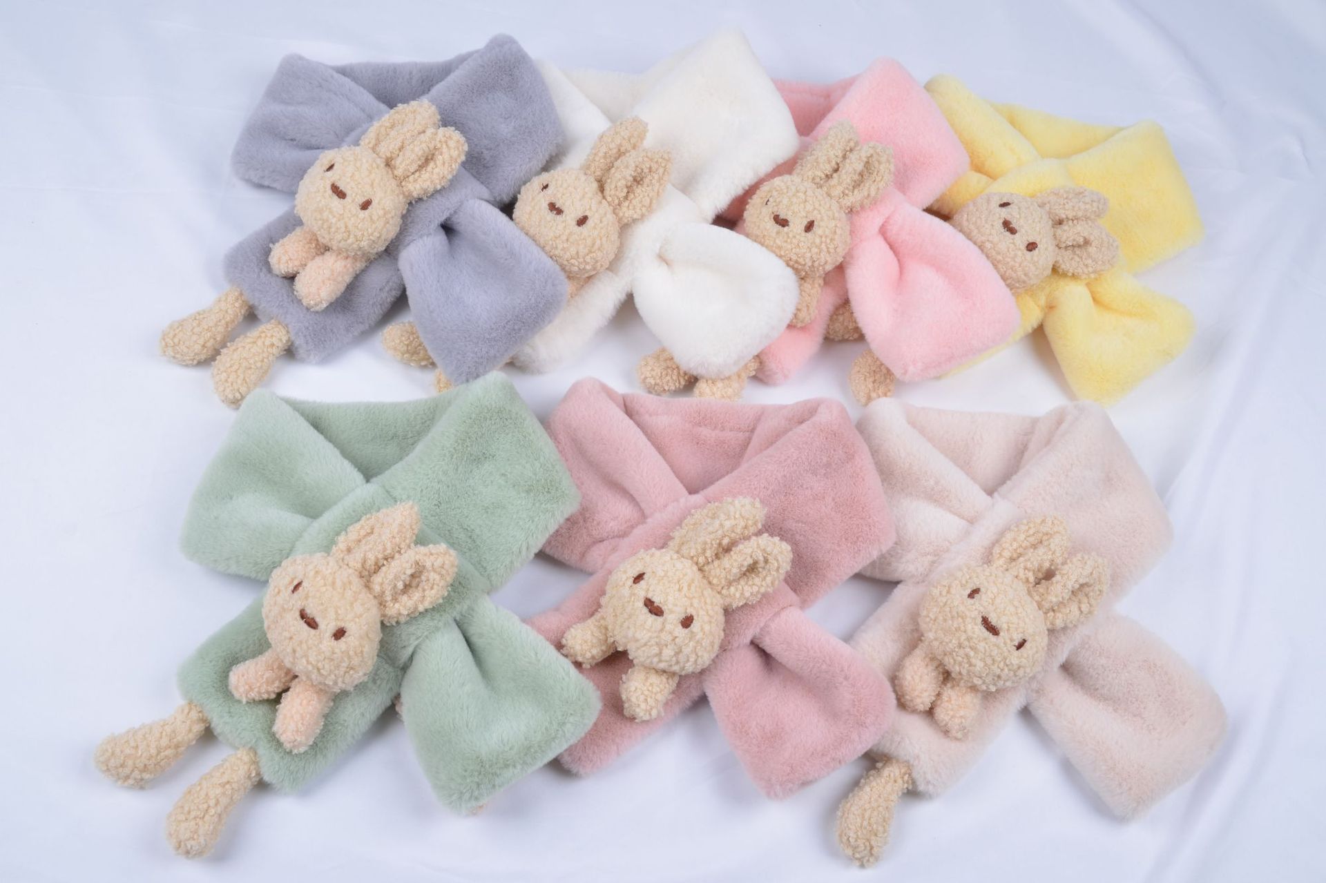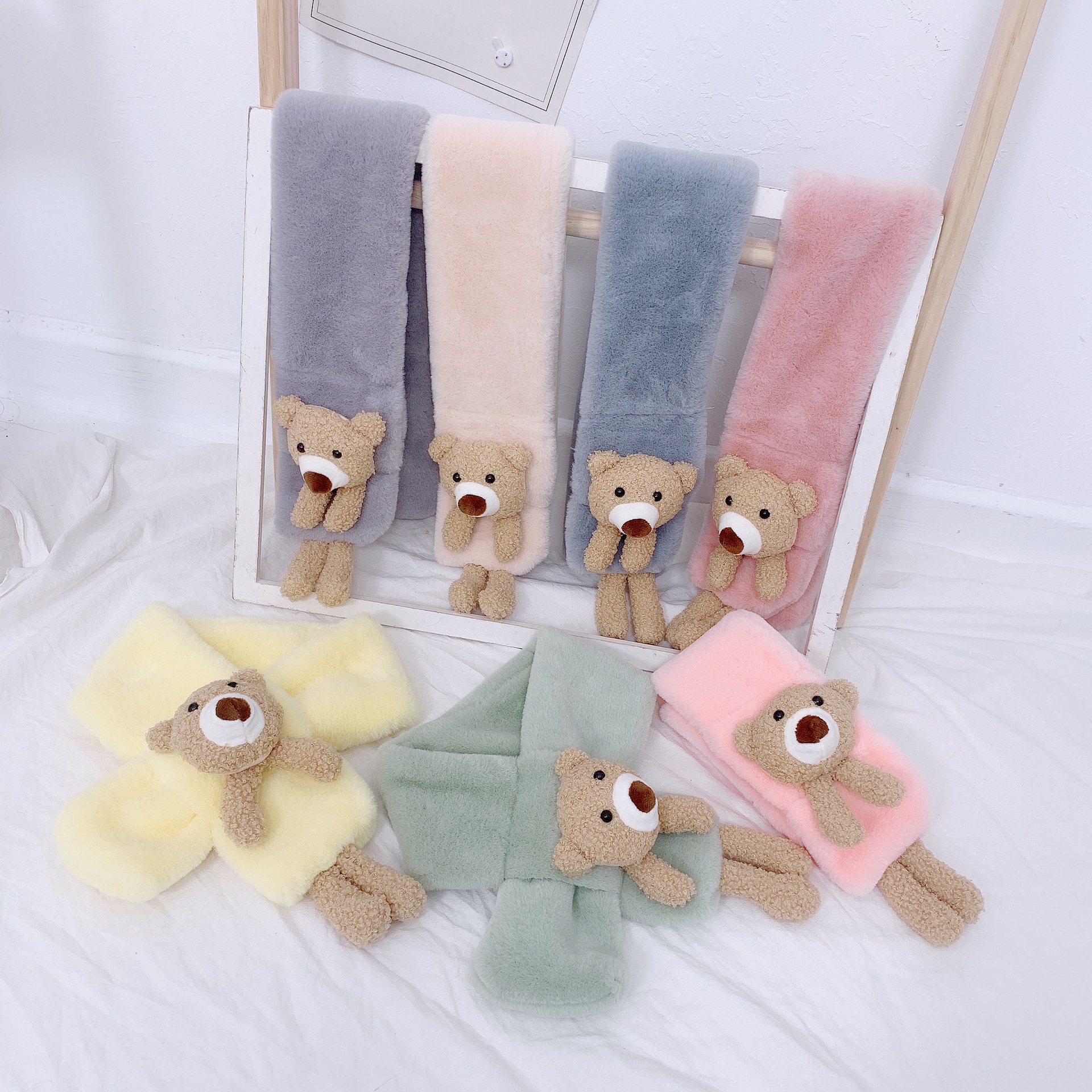 Children's scarf autumn and winter imitation rabbit fur three-dimensional cartoon teddy bear fur baby boy and girl warm cross scarf plush