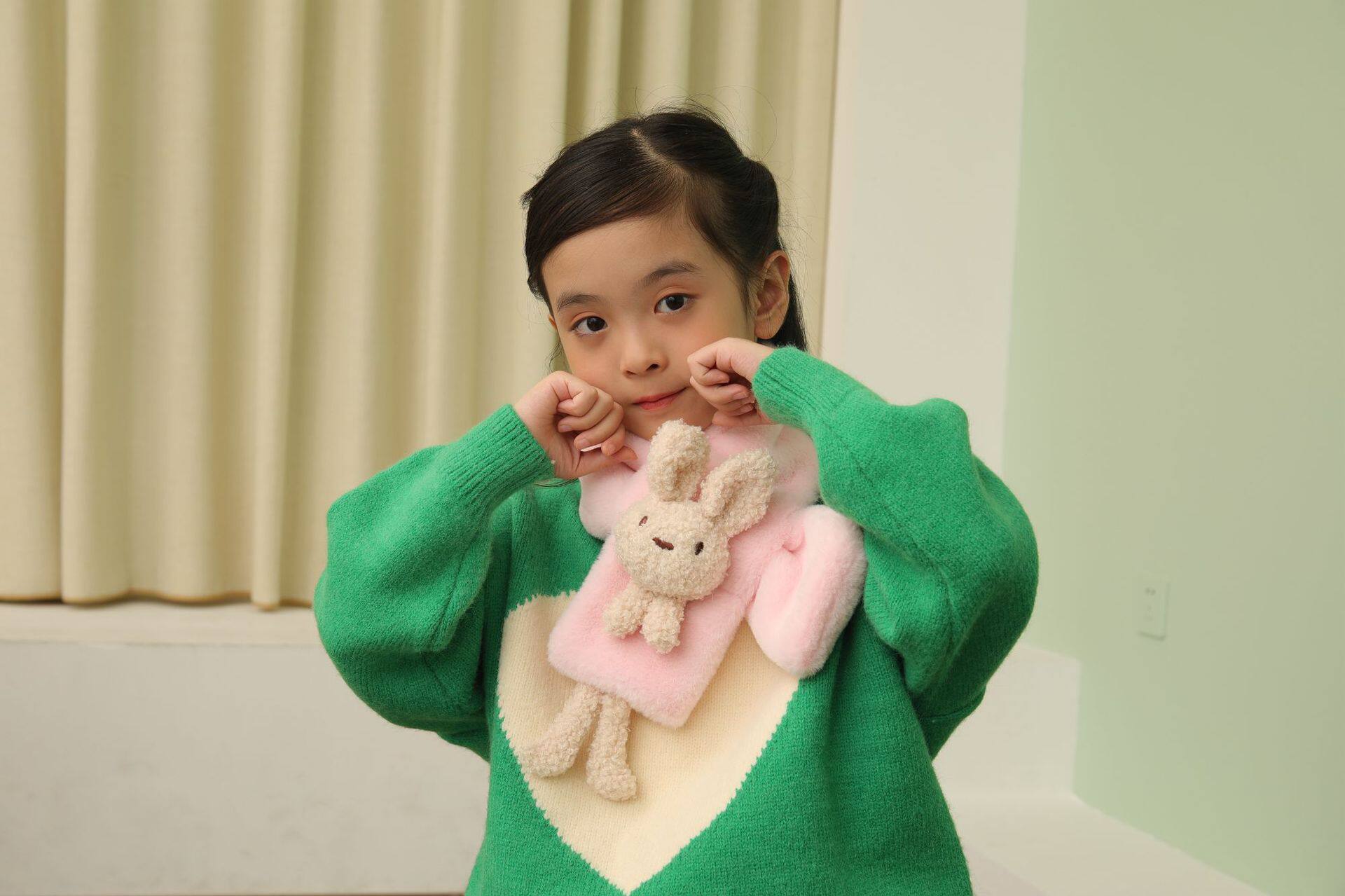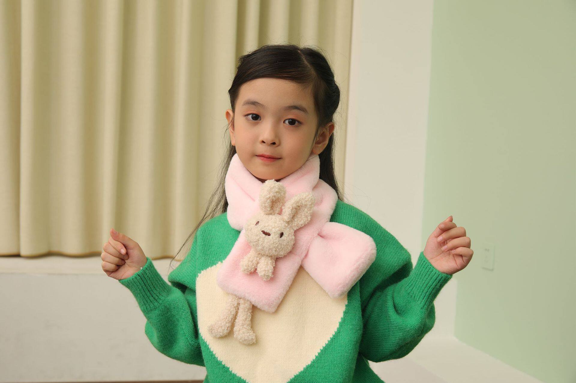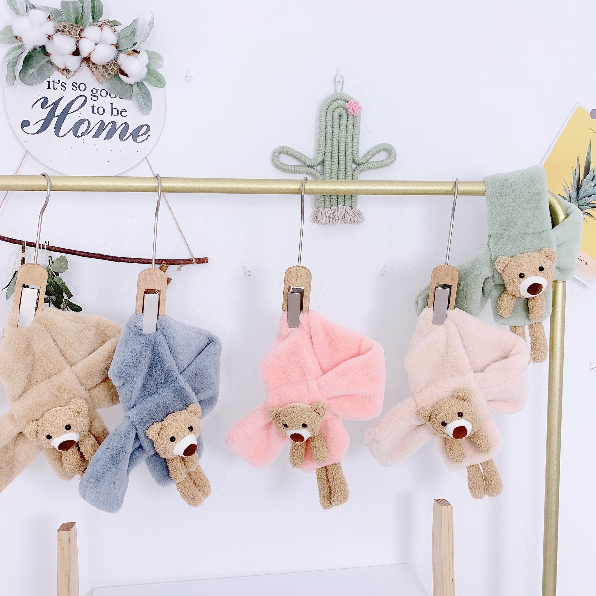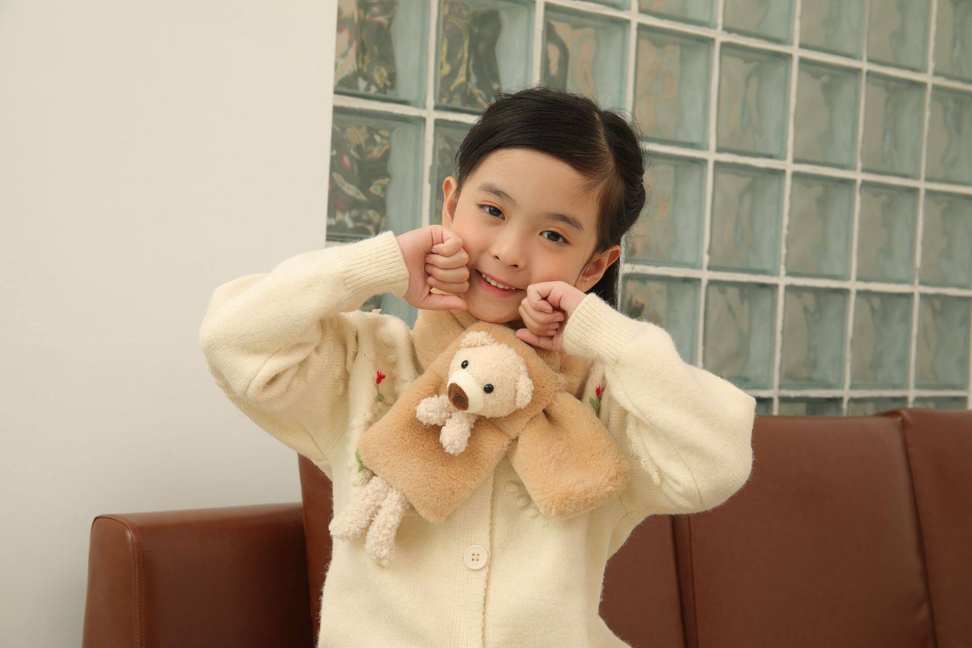 Children's scarf autumn and winter imitation rabbit fur three-dimensional cartoon teddy bear fur baby boy and girl warm cross scarf plush