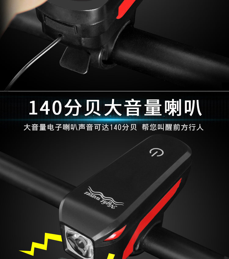 Rechargeable Bicycle Light, Headlight, Strong Light for Night Riding, Mountain Bike Electronic Horn Light, Kidsren's Bicycle Bell