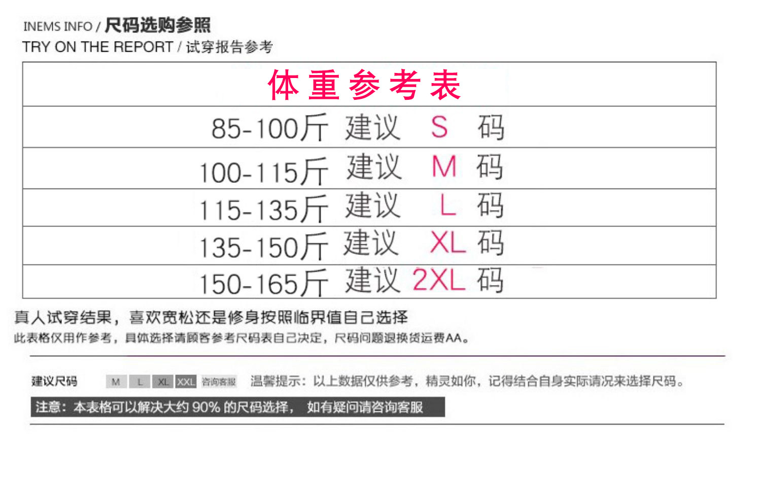 China (cm) 165 / 88-90 170 / 96-98 175 / 108-110 180 / 118-122 185 / 126-130