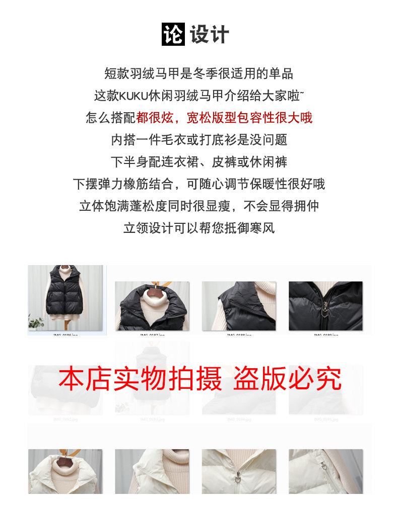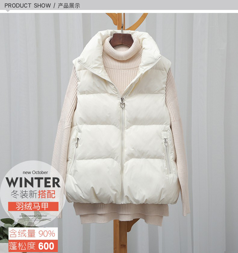 Down vest women's autumn and winter loose Korean style vest waistcoat lightweight down jacket jacket 90 white duck down outer vest