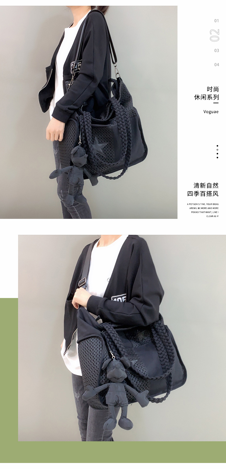 2023 new shoulder bag for women European and American style Oxford large bag simple retro portable crossbody bag mesh bag strap hanging ornament