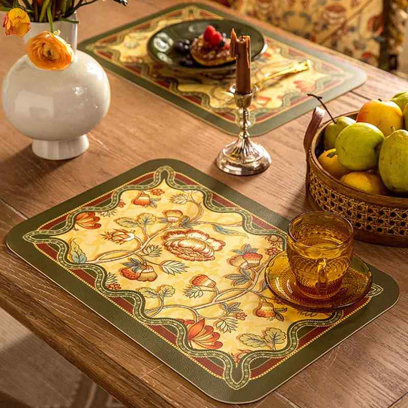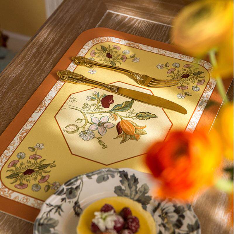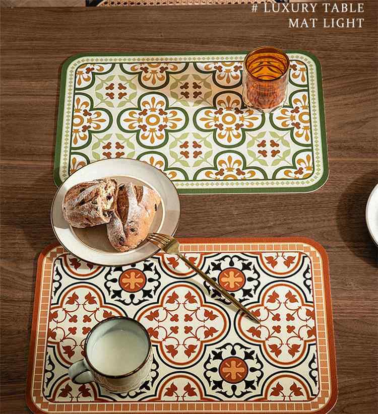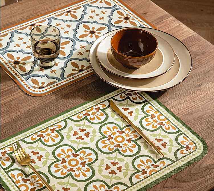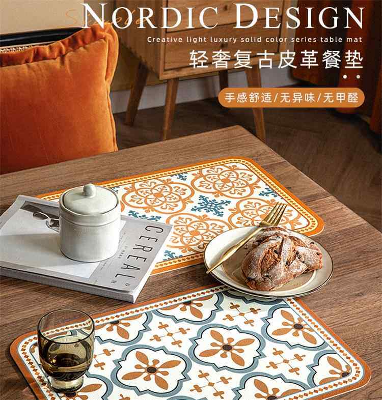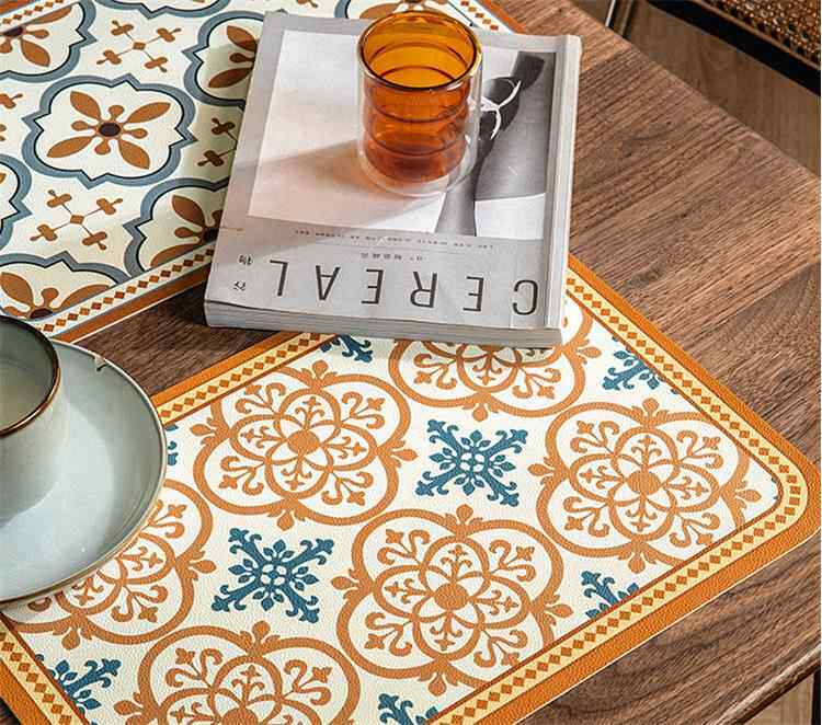 European and american placemats composite printed western placemats bowl mats waterproof pu leather table mats printed pattern coasters
