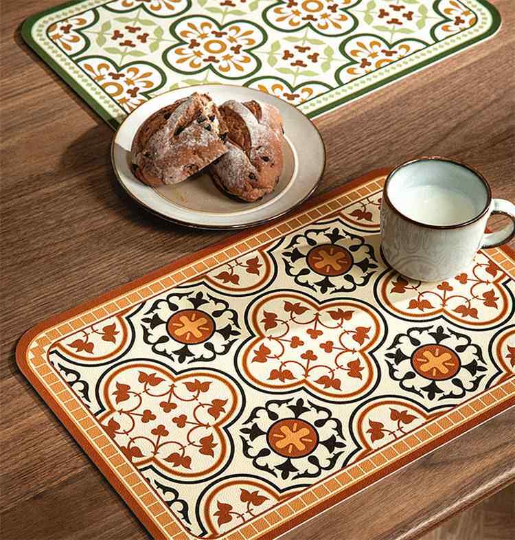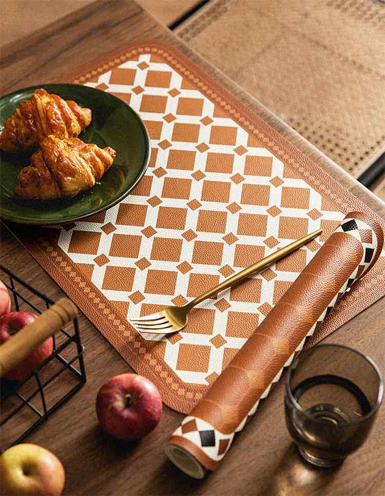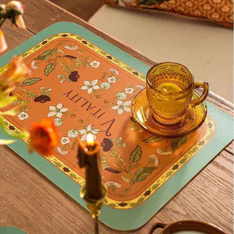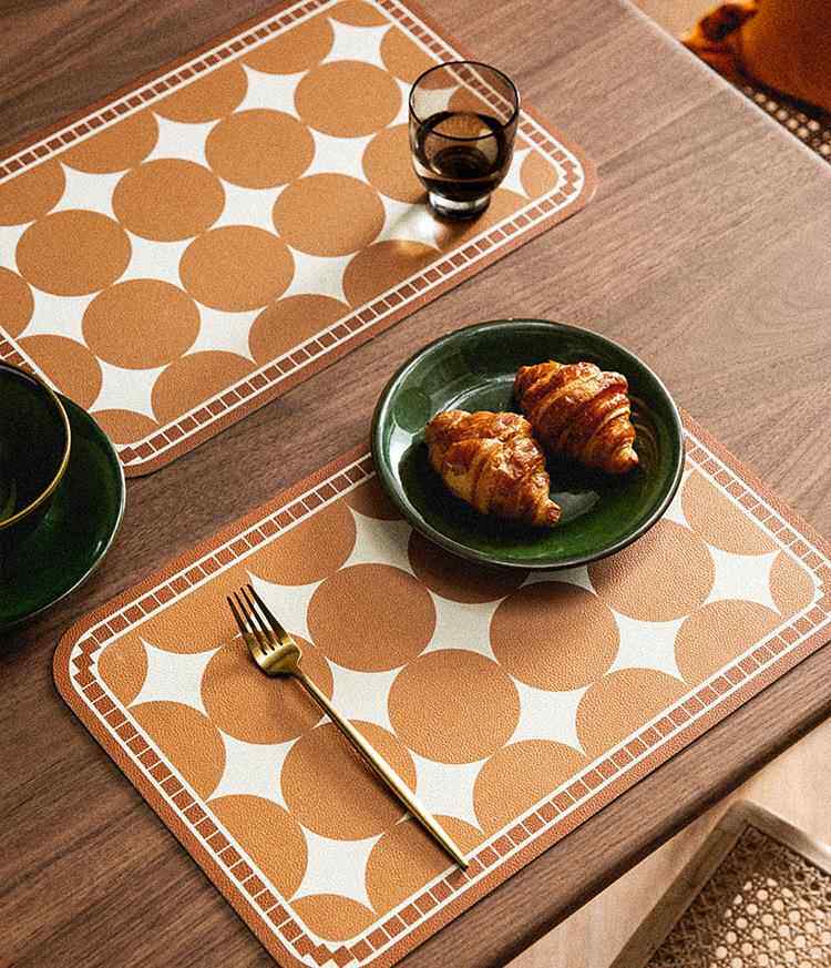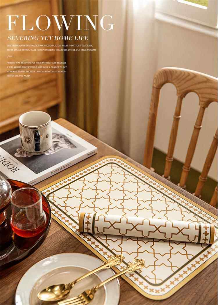 European and american placemats composite printed western placemats bowl mats waterproof pu leather table mats printed pattern coasters