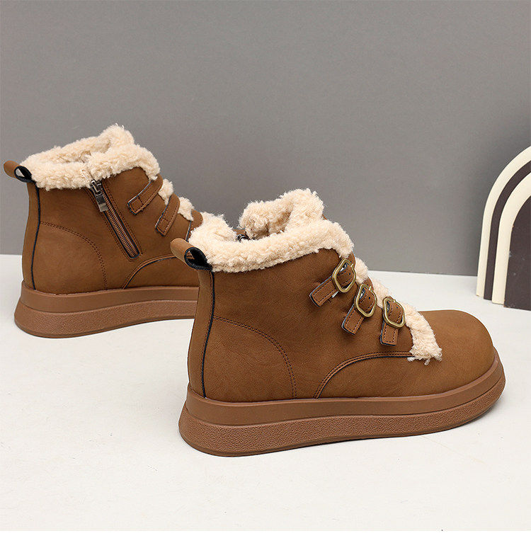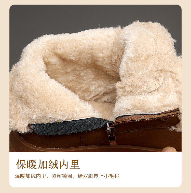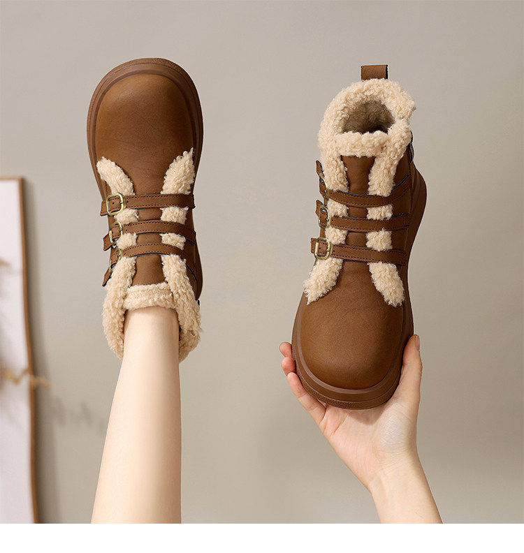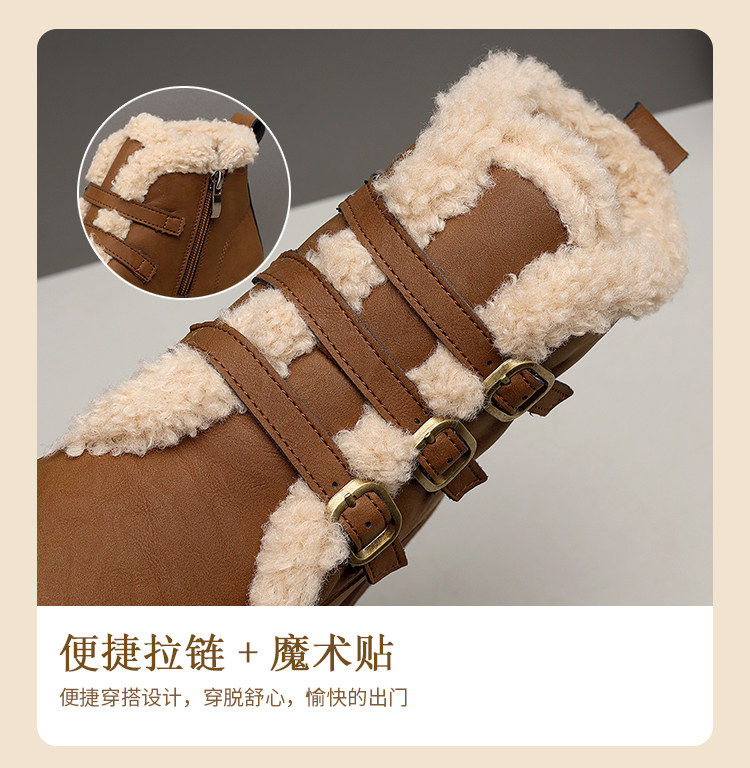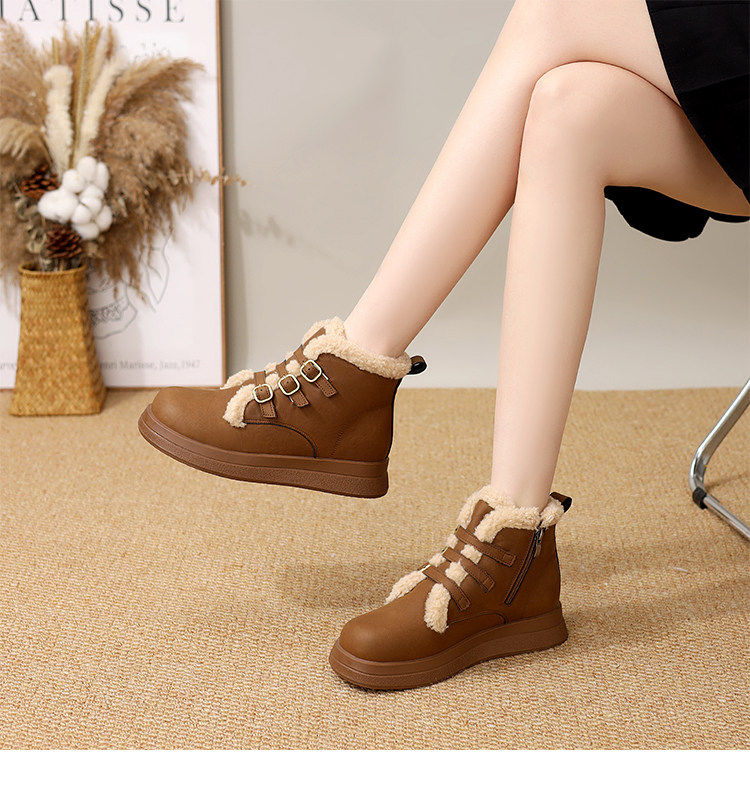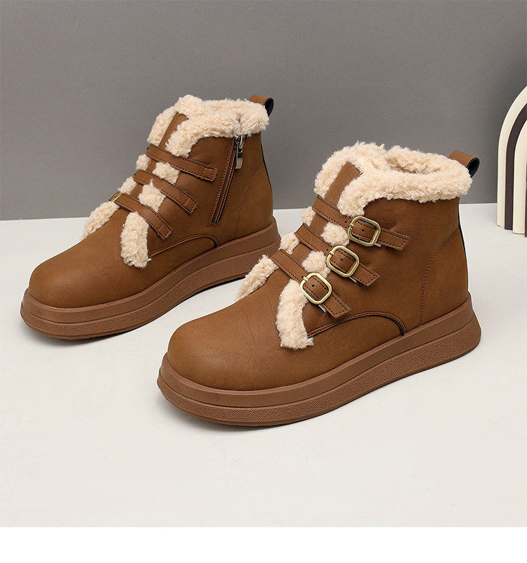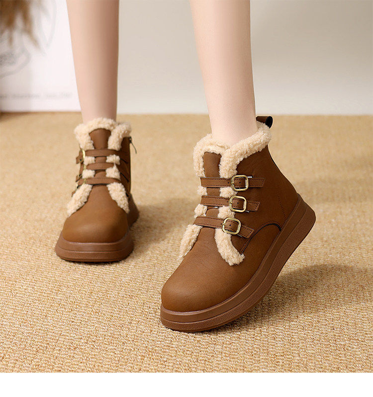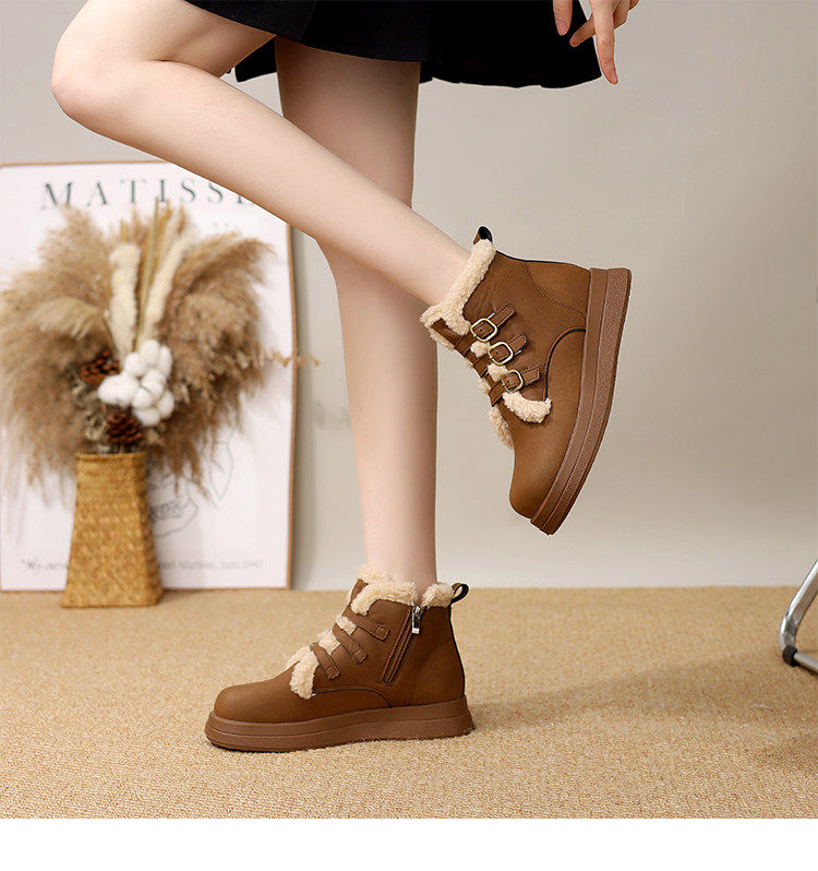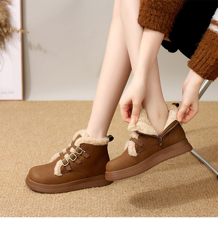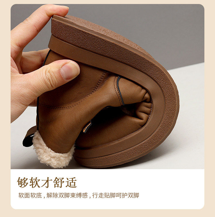 Genuine leather flat snow boots for women 2025 winter new versatile plus velvet waterproof cotton shoes slim and warm short boots