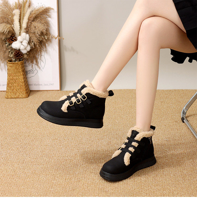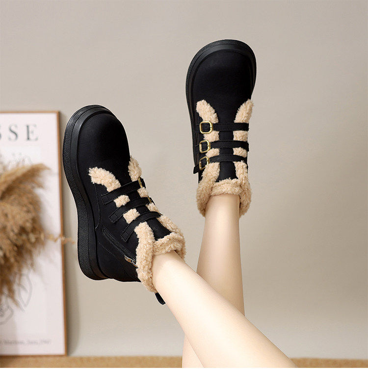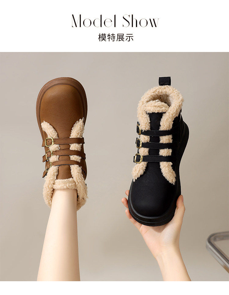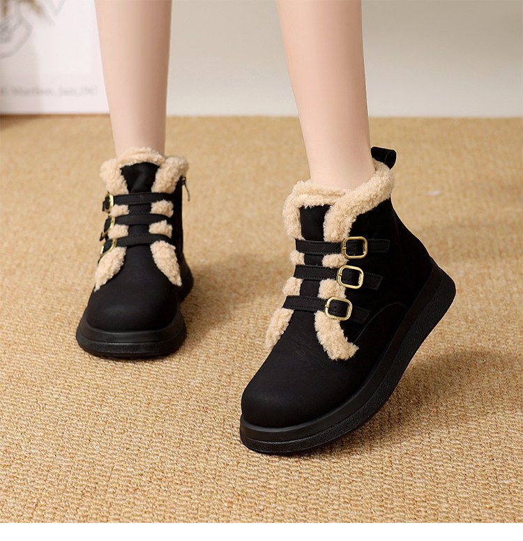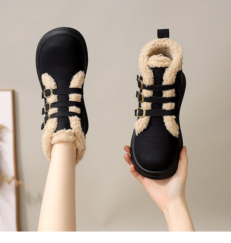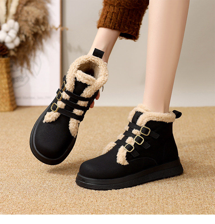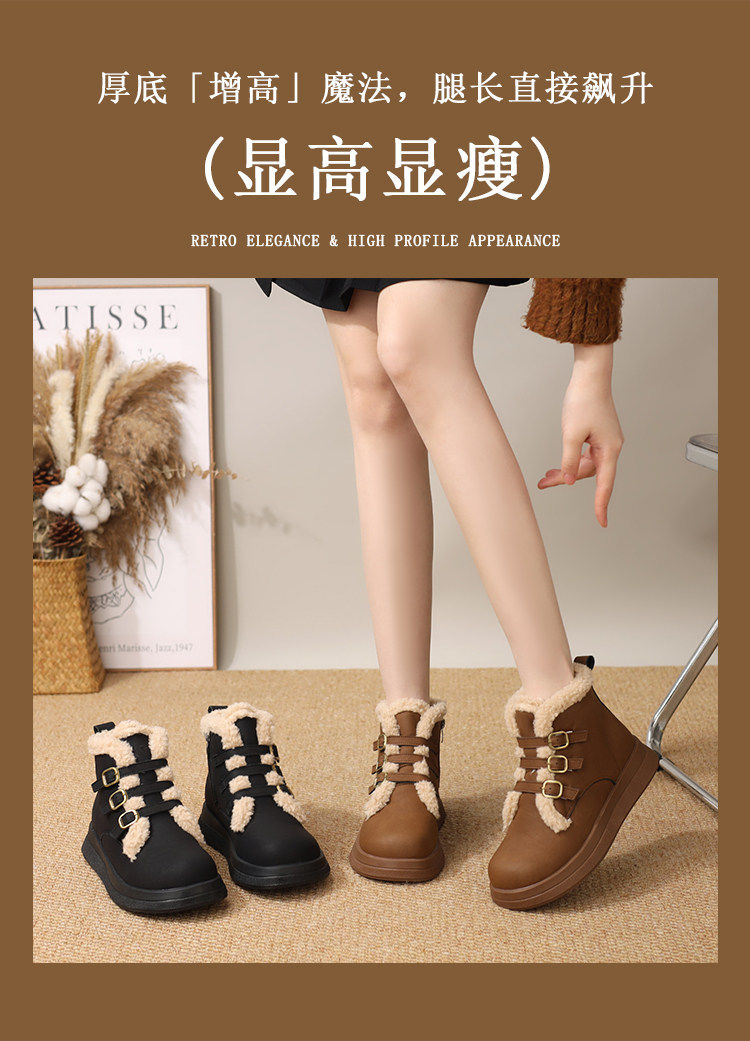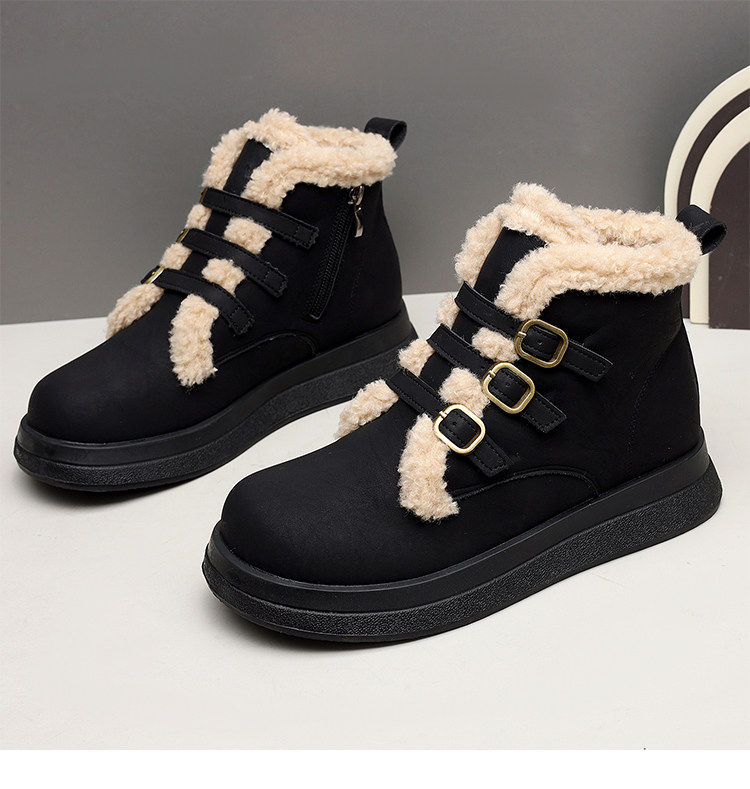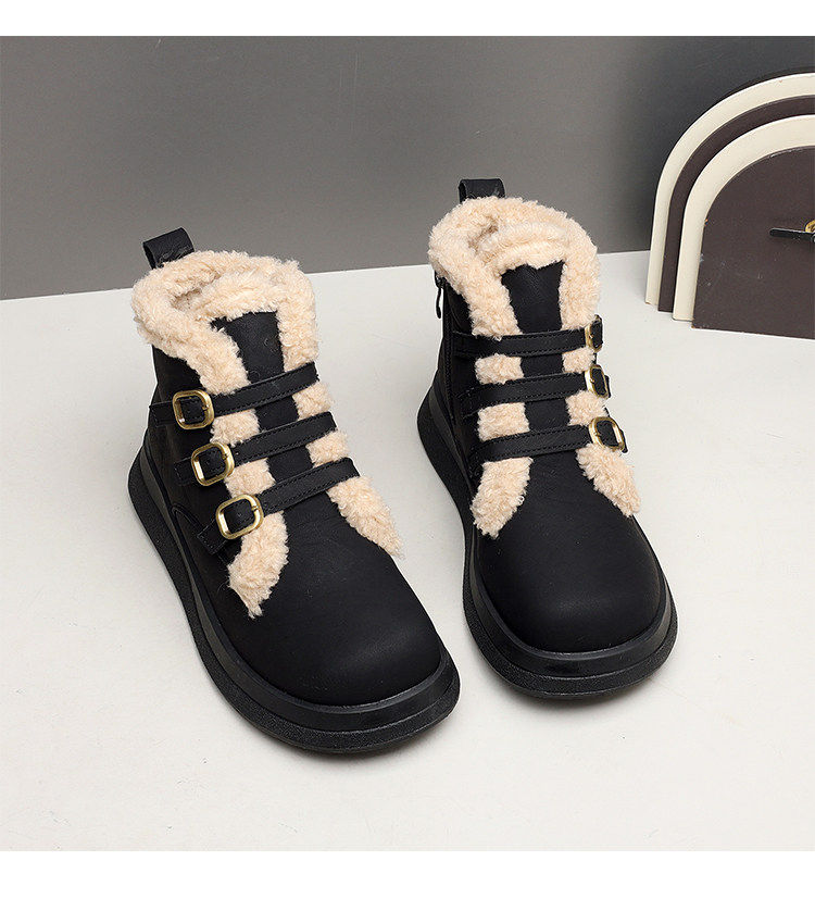 Genuine leather flat snow boots for women 2025 winter new versatile plus velvet waterproof cotton shoes slim and warm short boots