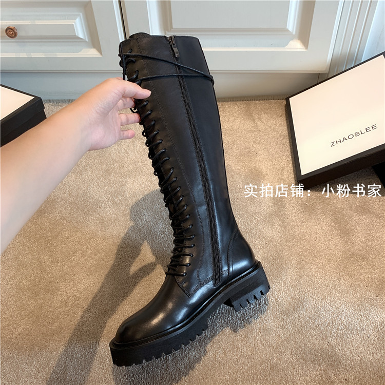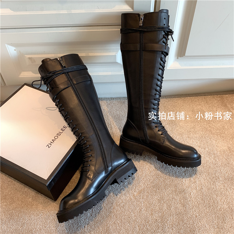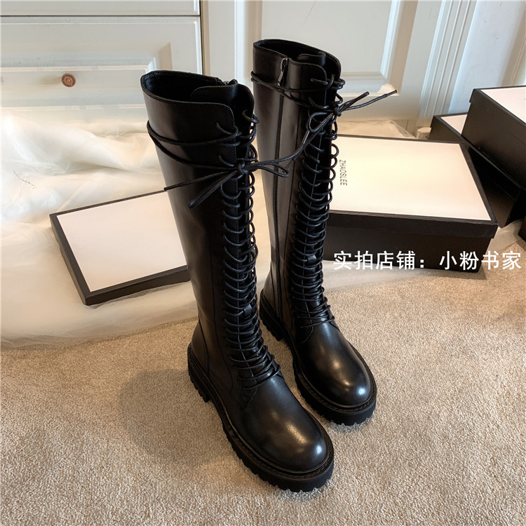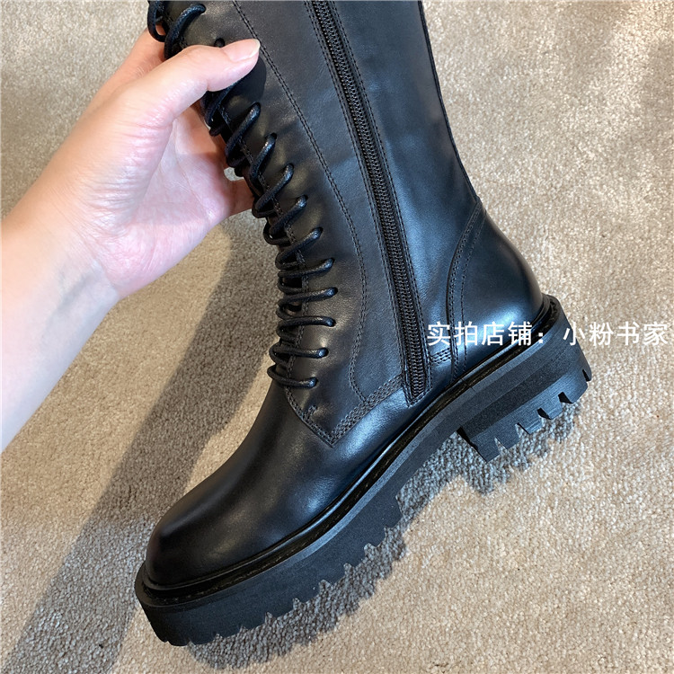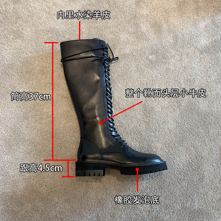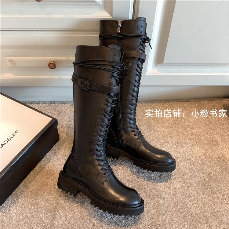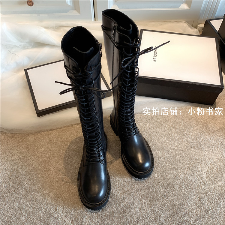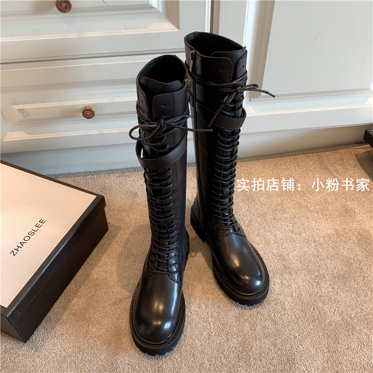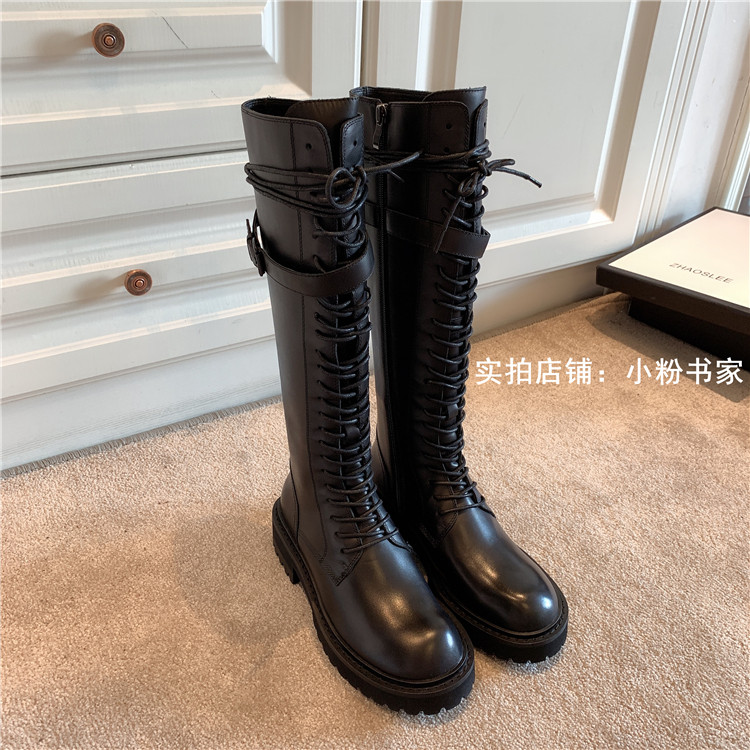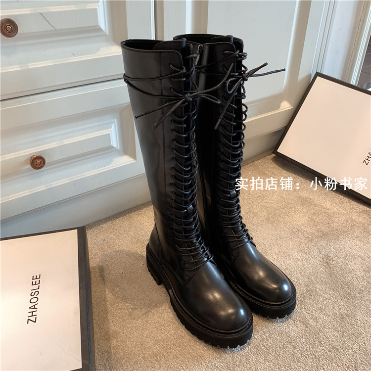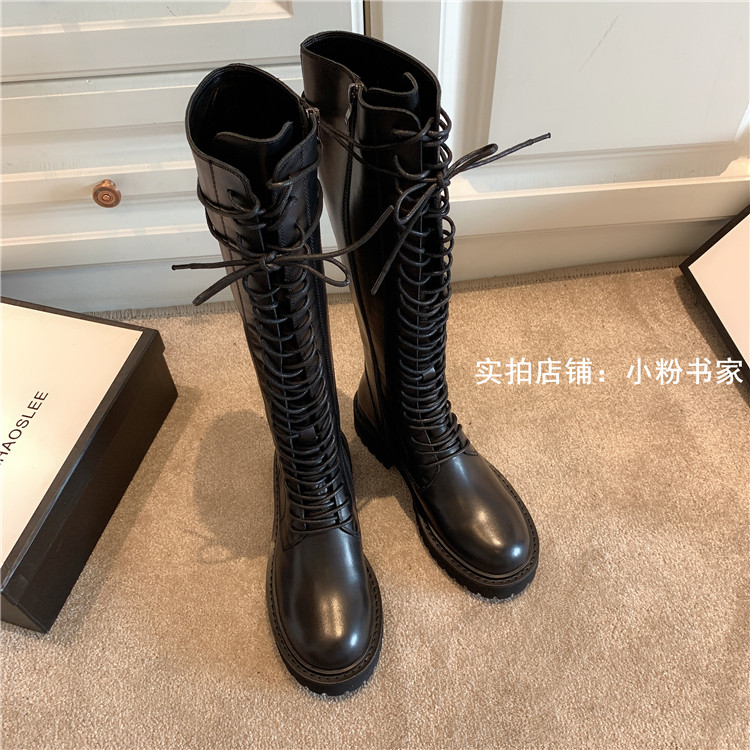Knight boots women's genuine leather lace-up high boots 2025 autumn and winter new style ann long Martin boots over the knee boots