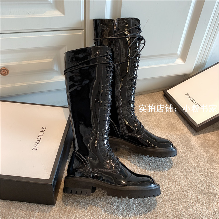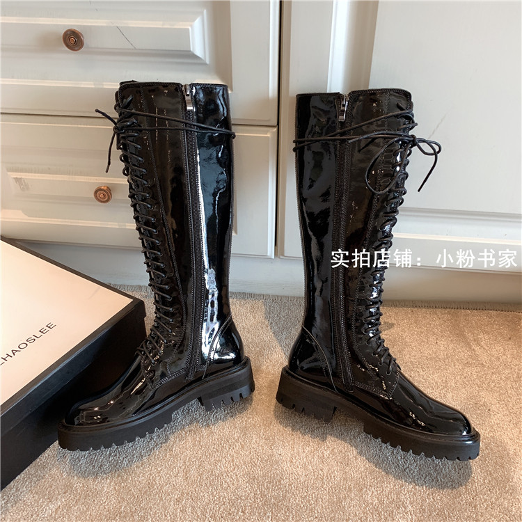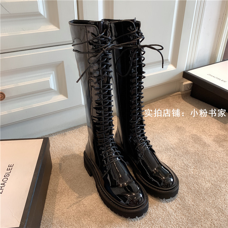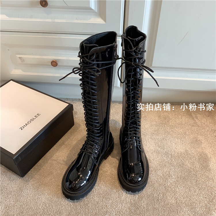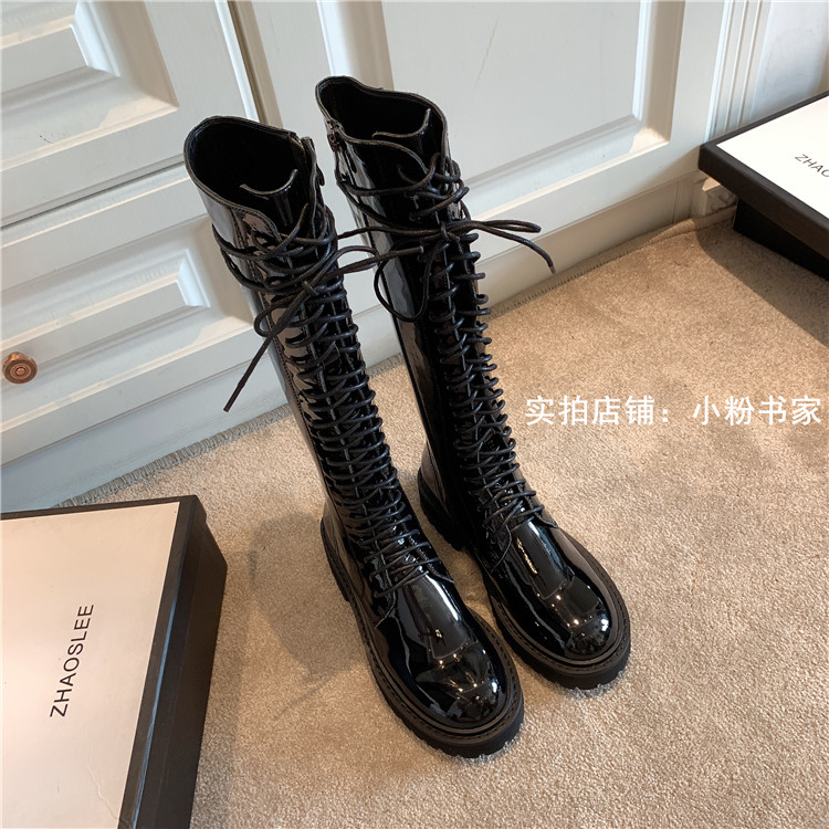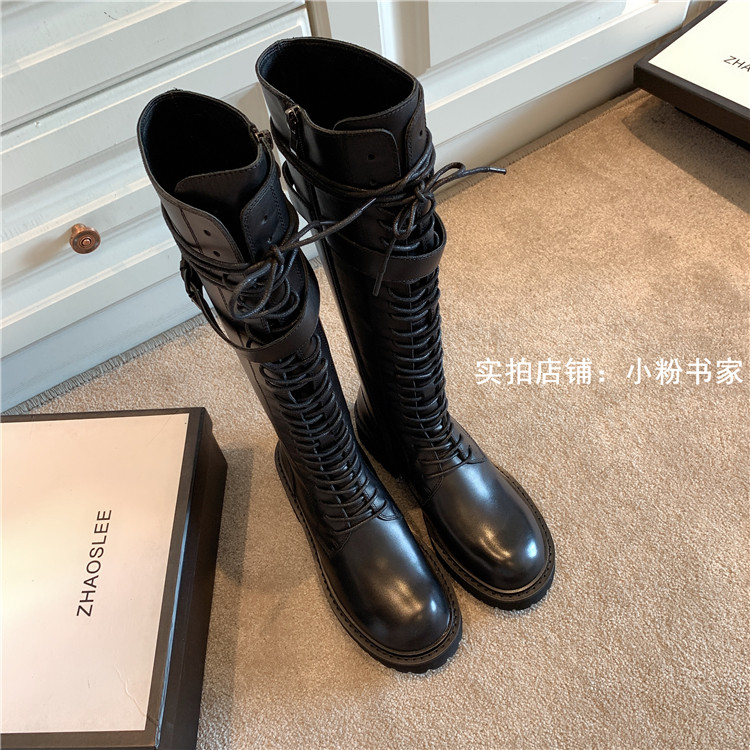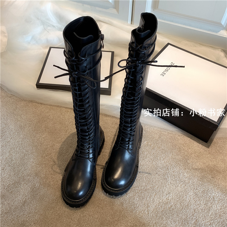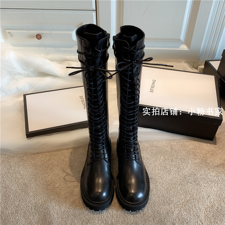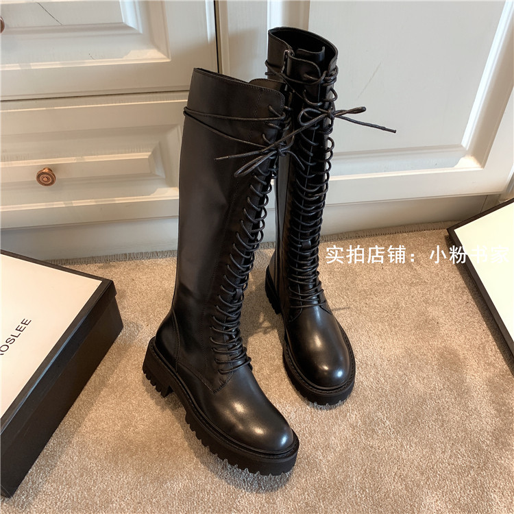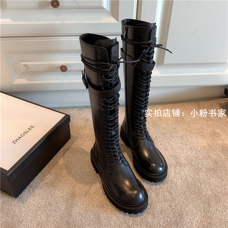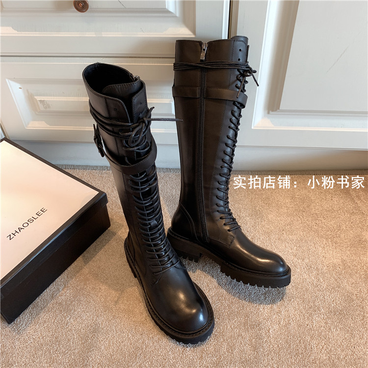 Knight boots women's genuine leather lace-up high boots 2025 autumn and winter new style ann long Martin boots over the knee boots