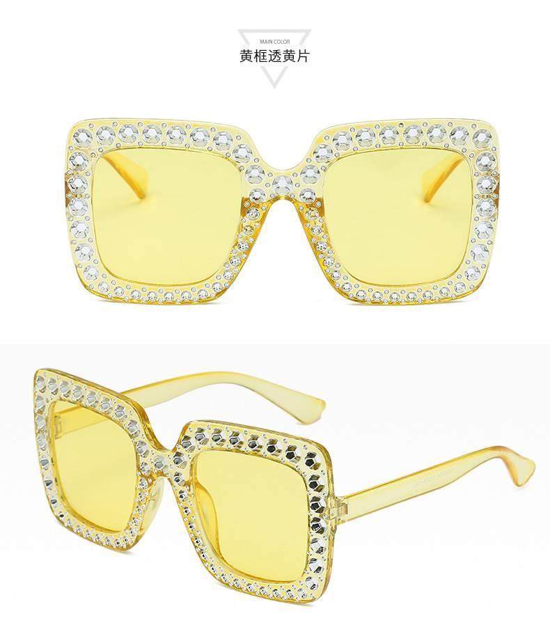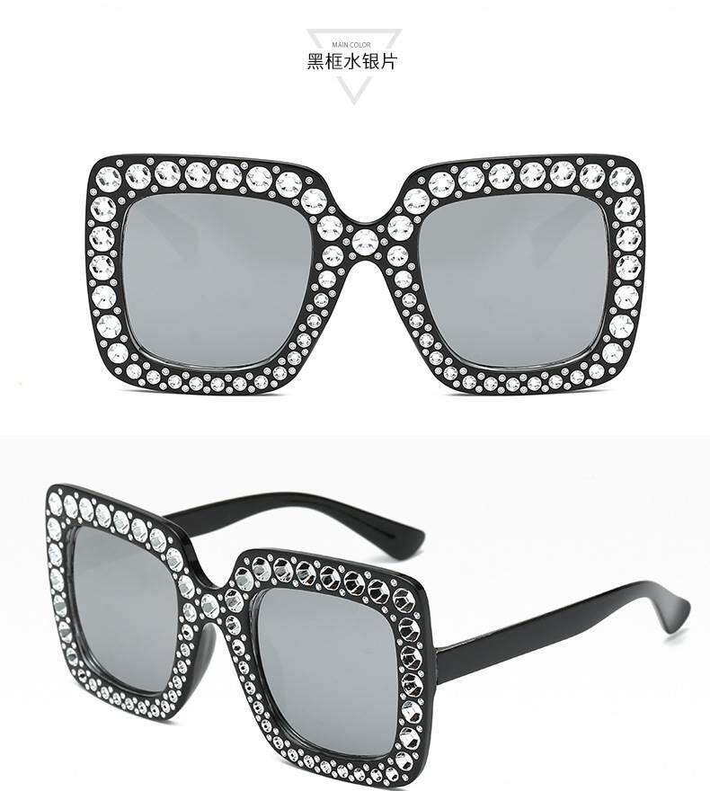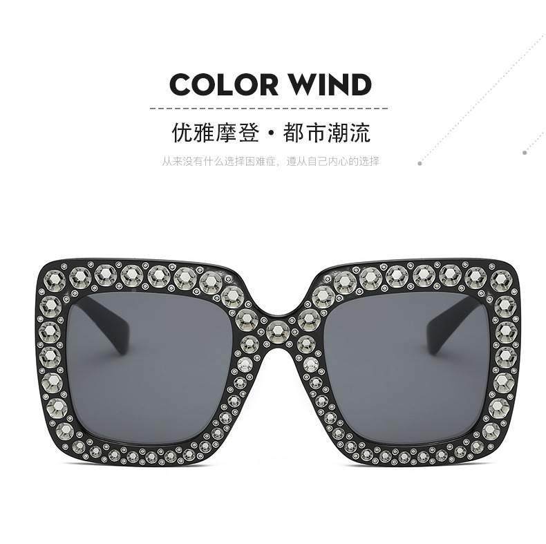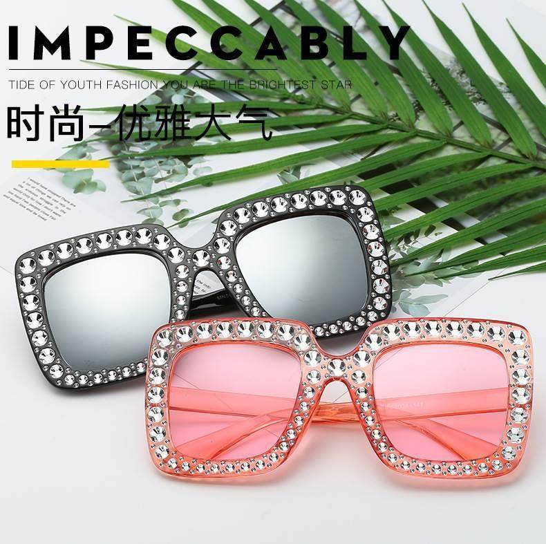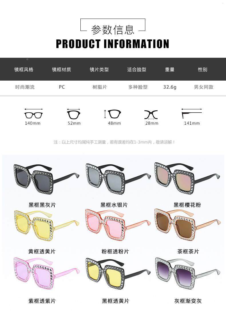 European and american new fashion imitation diamond sunglasses large square frame catwalk cross-border trend sunglasses foreign trade glasses