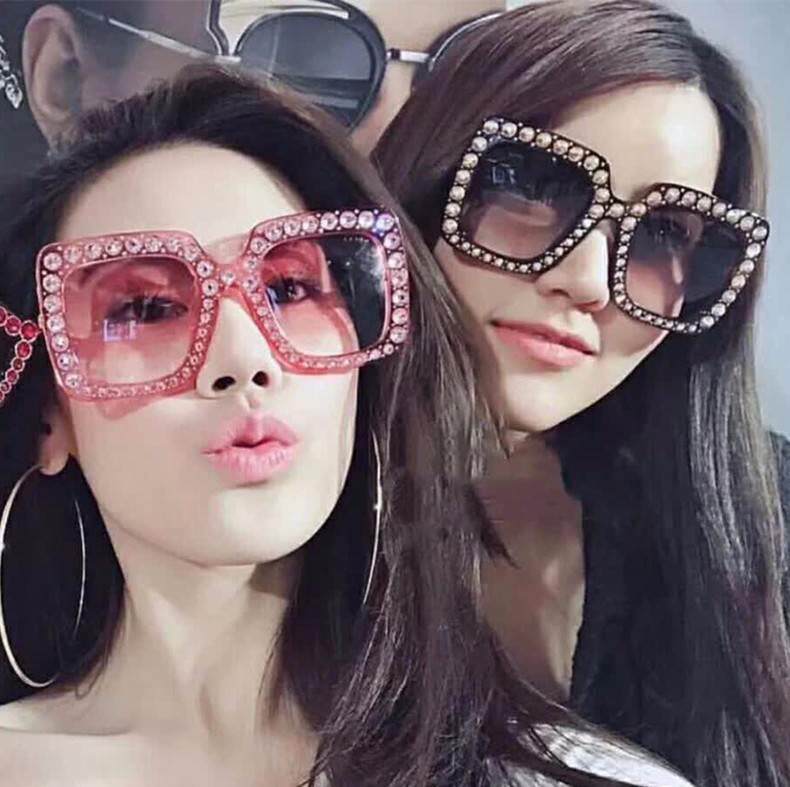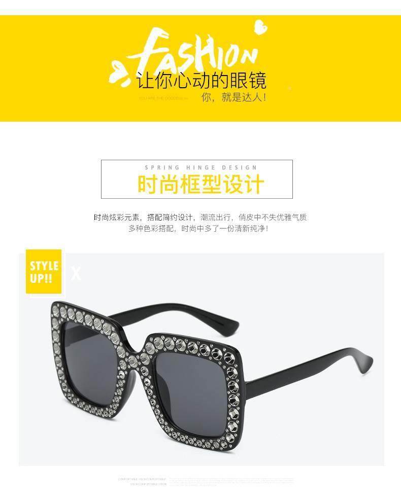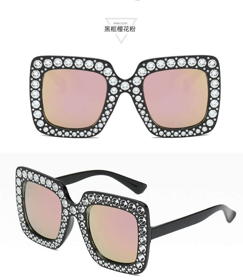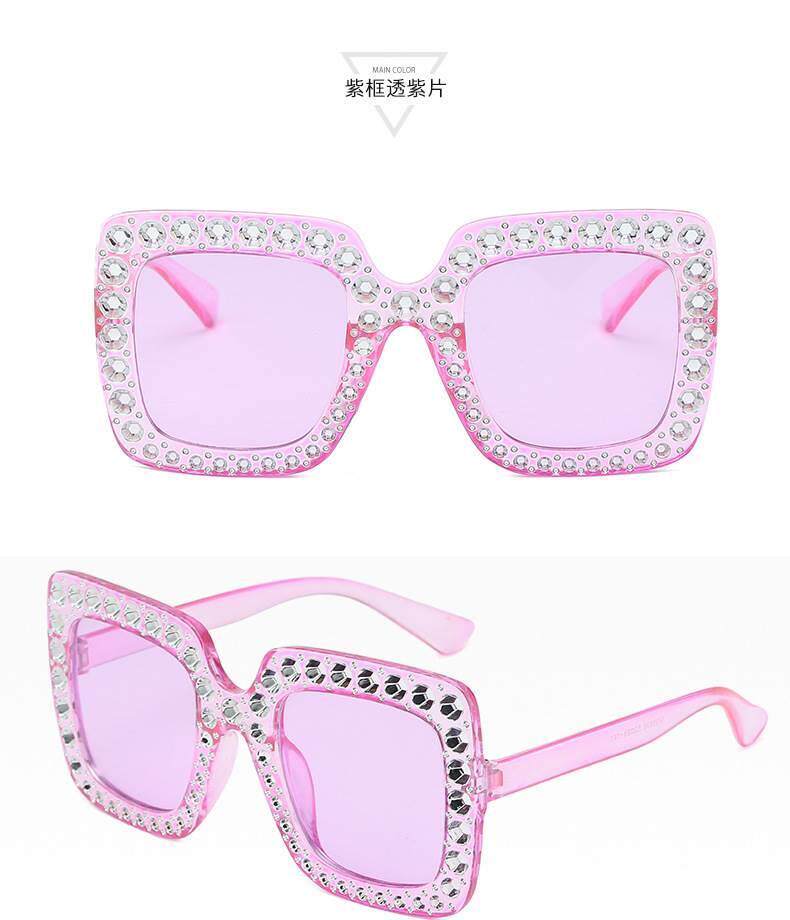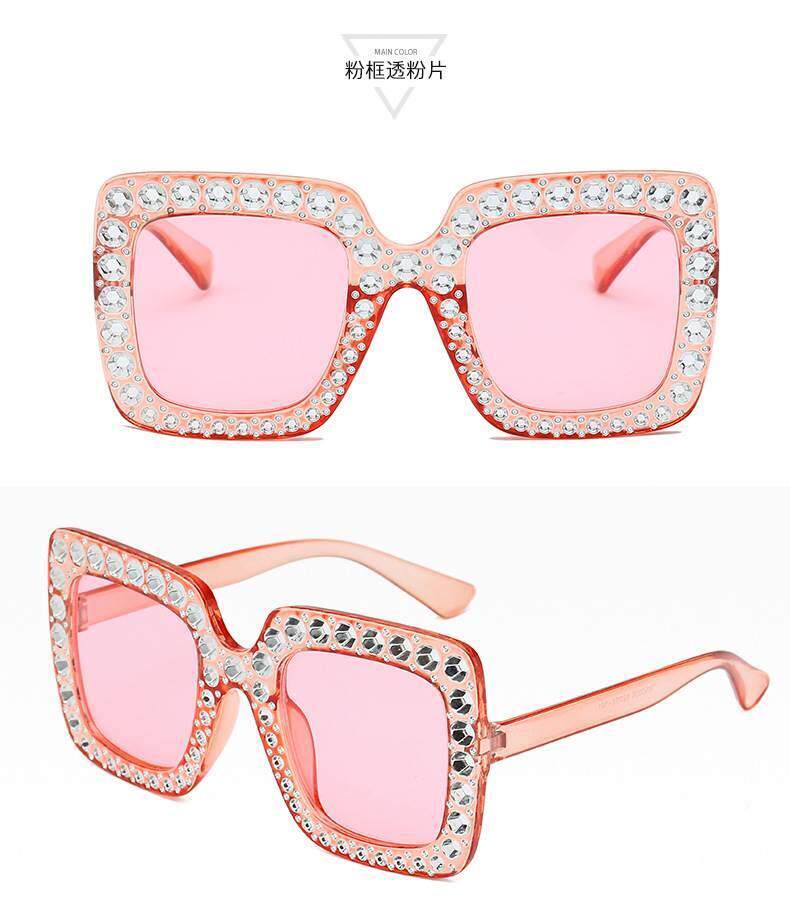 European and american new fashion imitation diamond sunglasses large square frame catwalk cross-border trend sunglasses foreign trade glasses