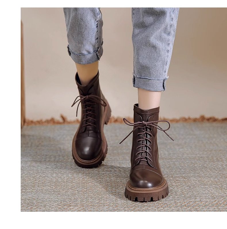 Platform Martin Boots Female 2025 Summer and Autumn New British Style Ankle Boots Ins Tide Best Selling Motorcycle Brown Thin Boots