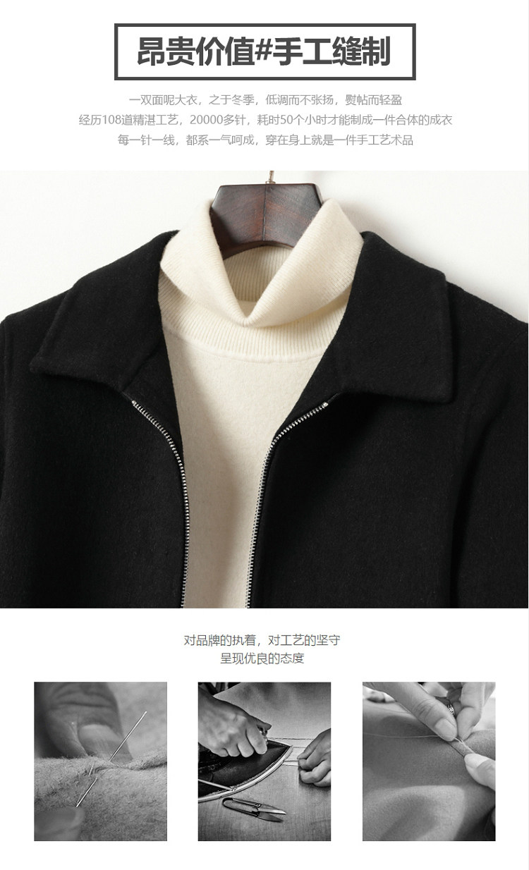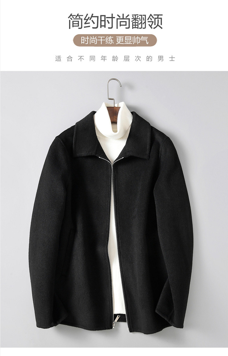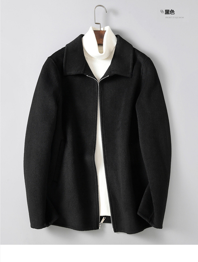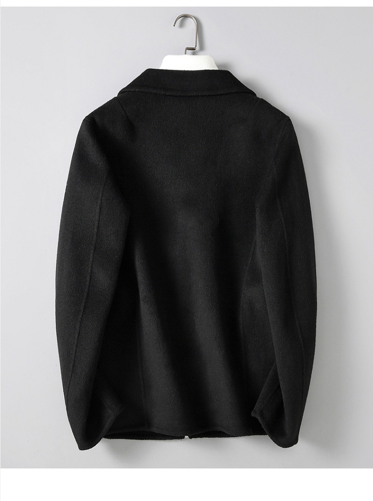 Dekase 纯黑色毛呢大衣男修身春季双面呢夹克短款商务羊毛外套男