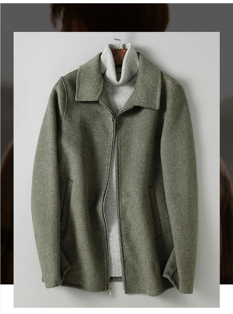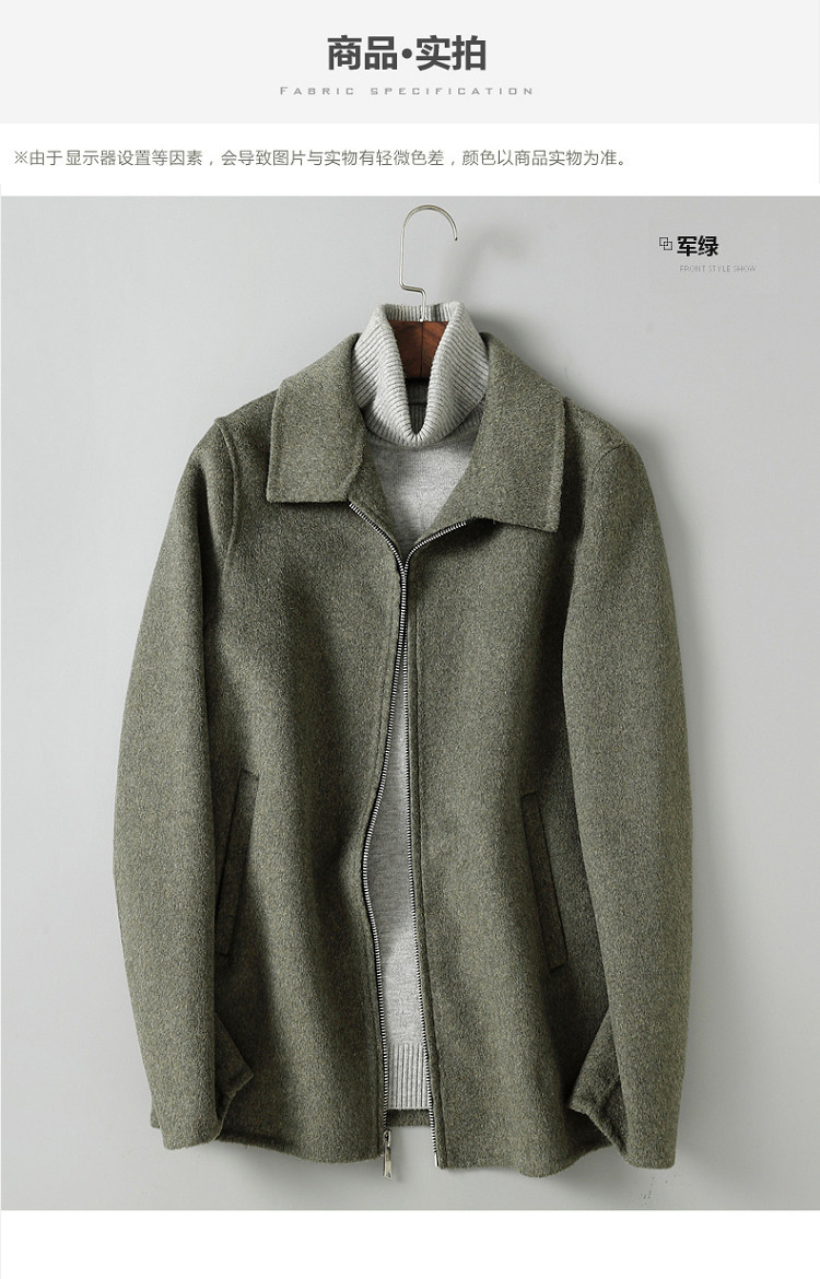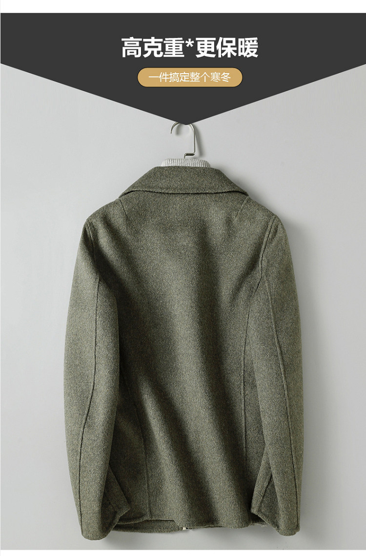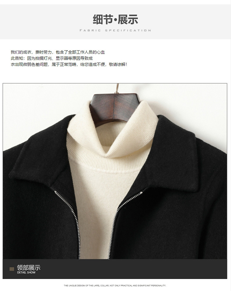 Dekase 纯黑色毛呢大衣男修身春季双面呢夹克短款商务羊毛外套男