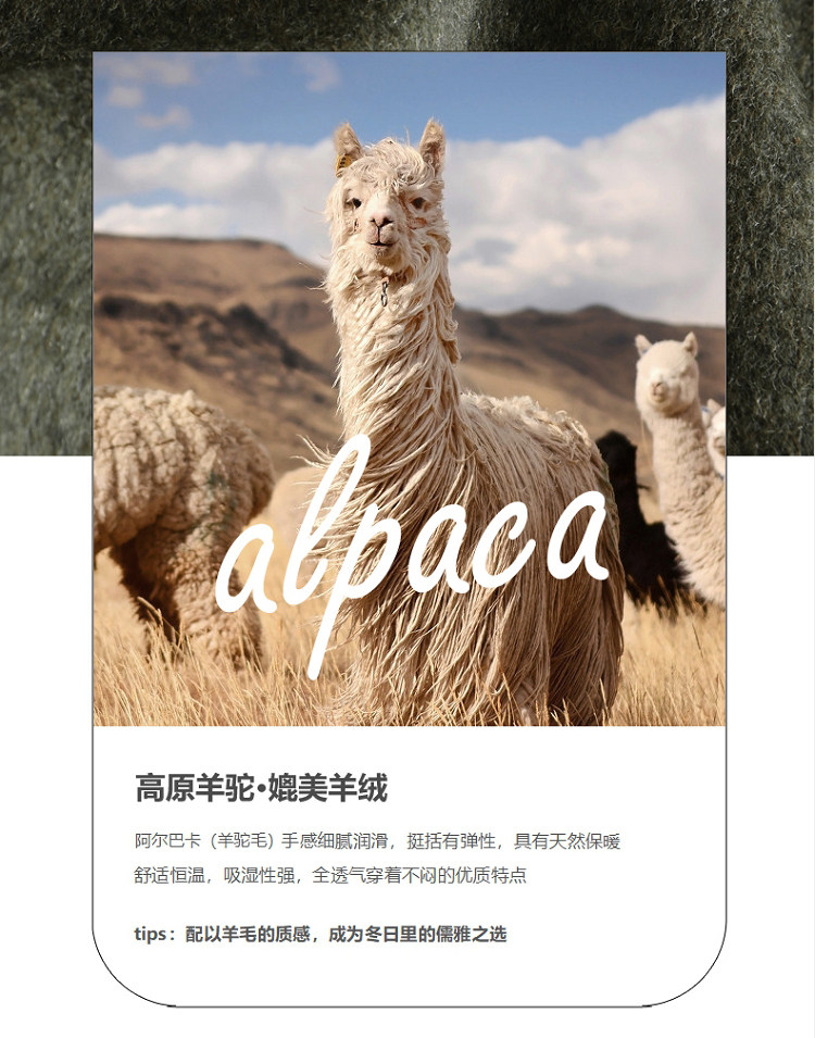 材质成分 羊毛60.8% 羊驼毛4.9% 其他34.3%