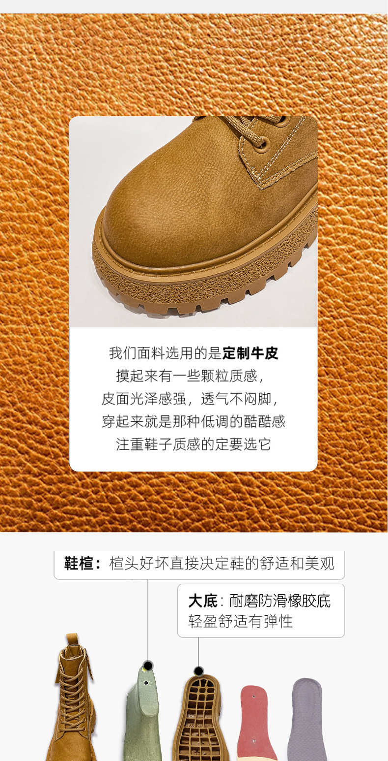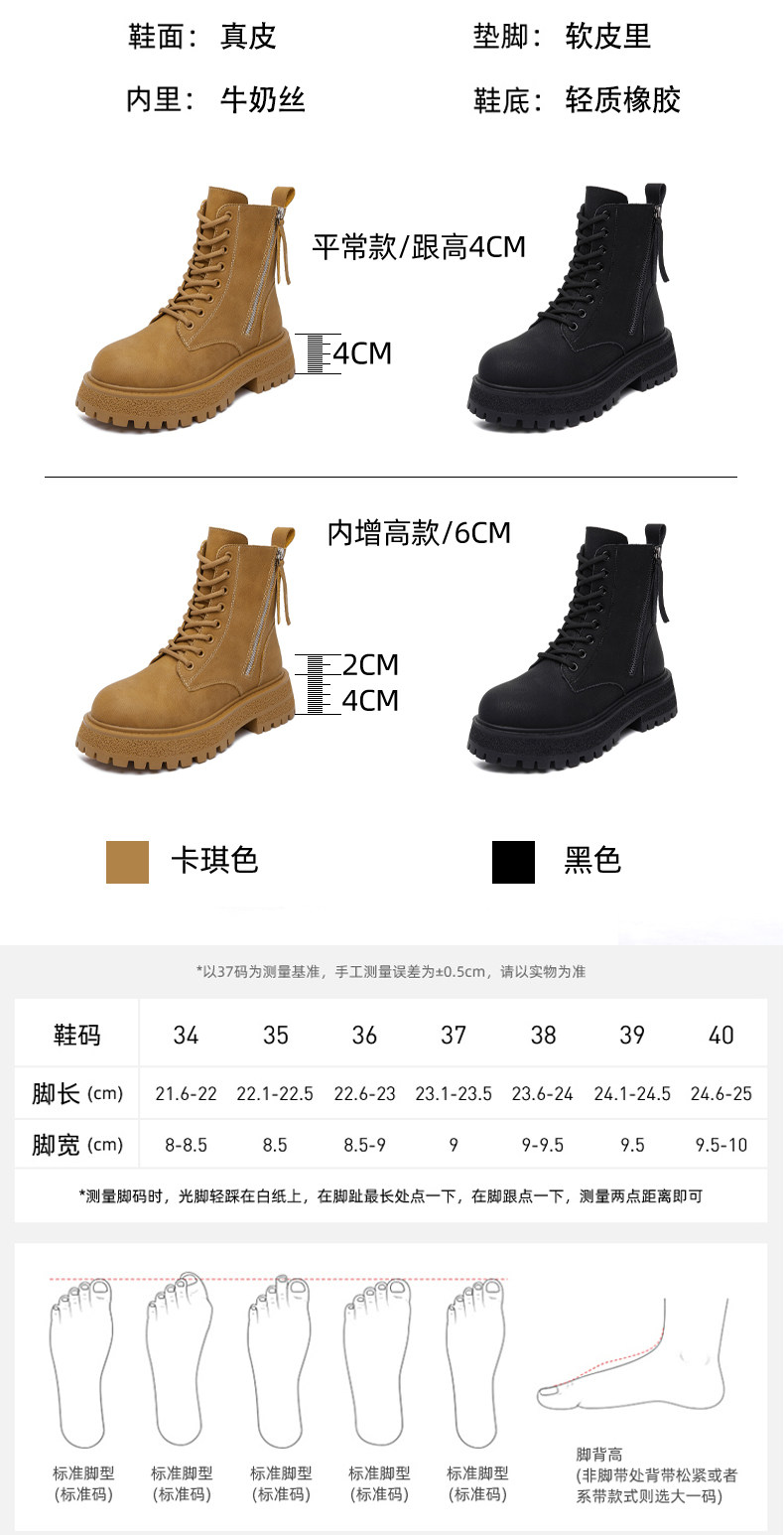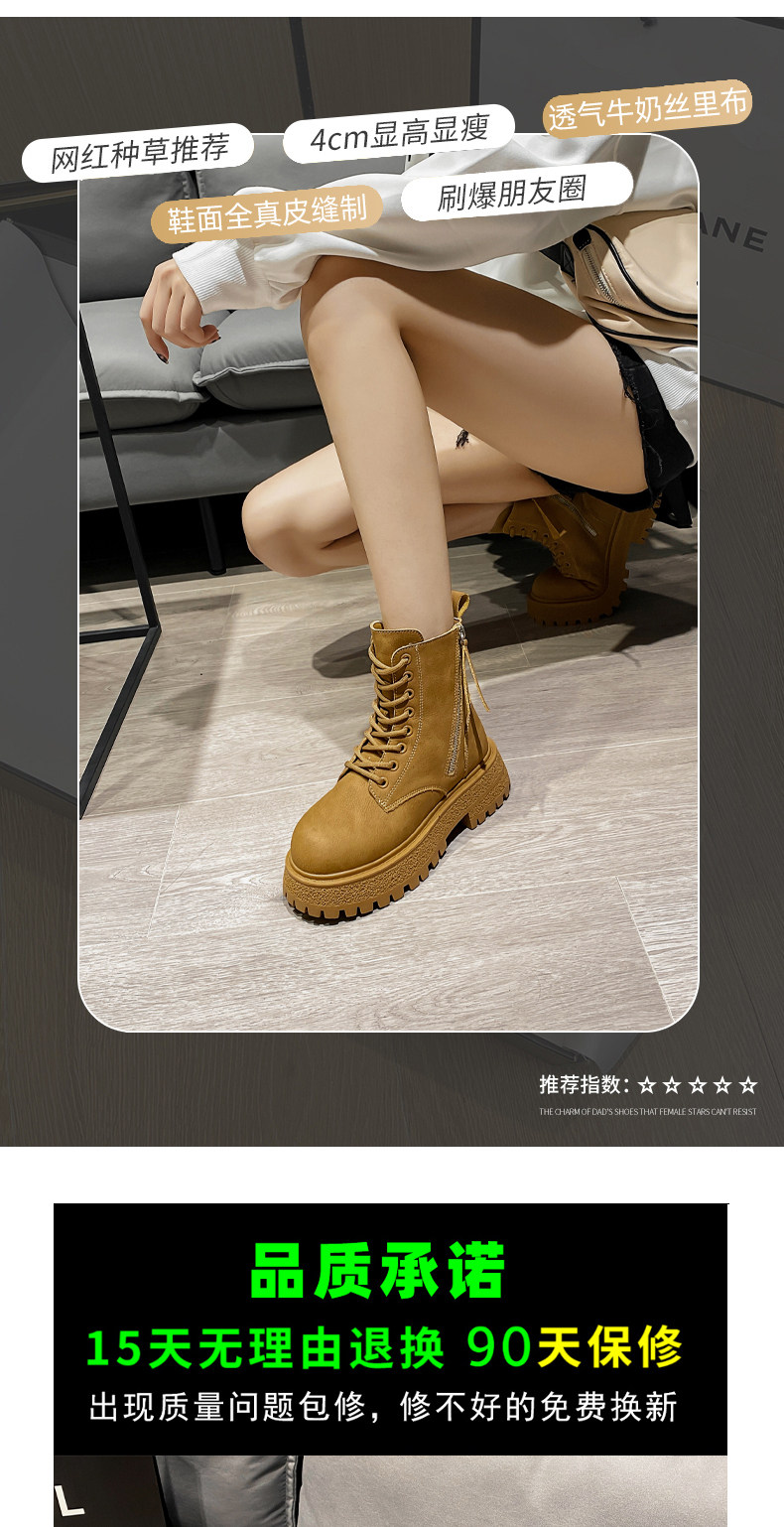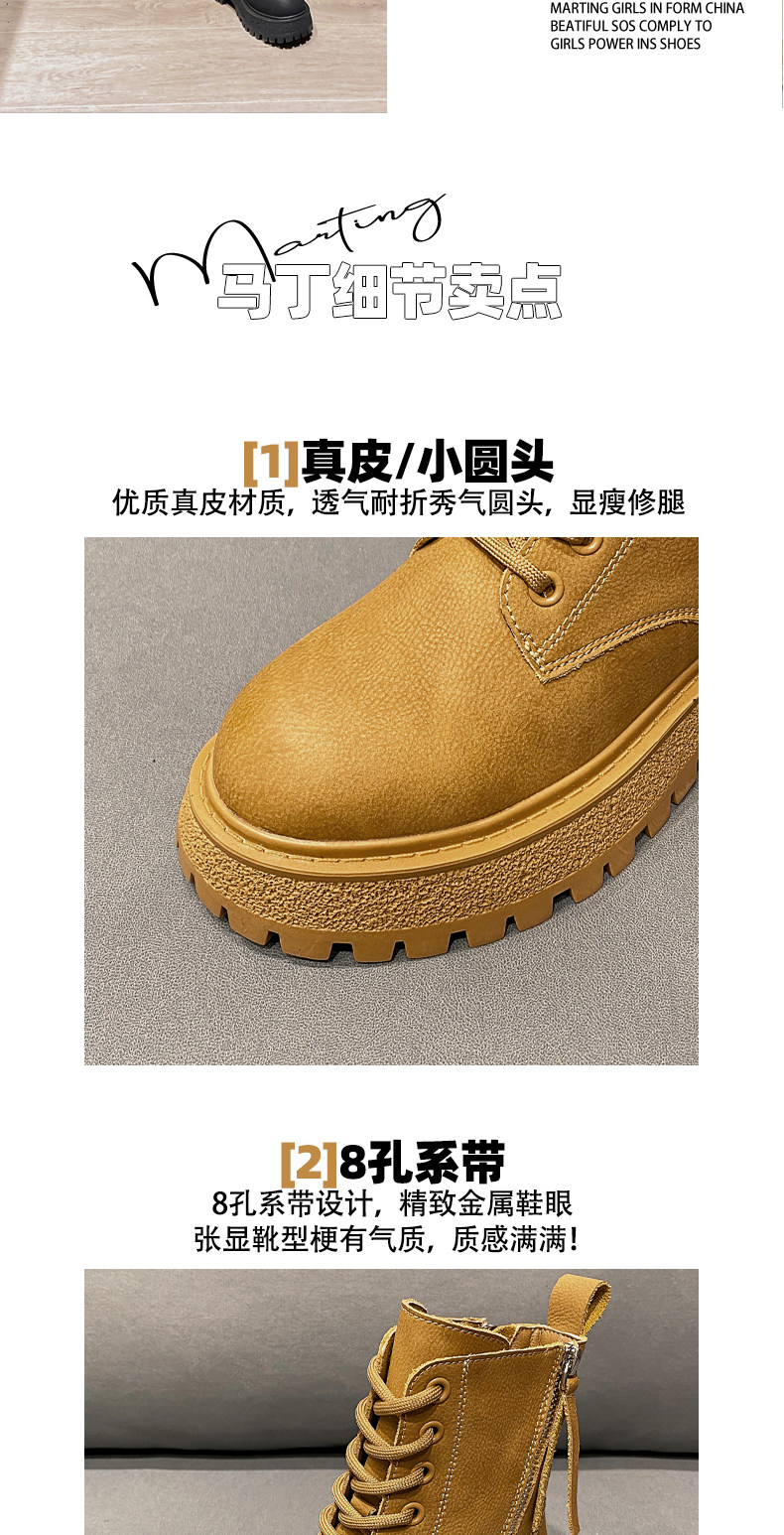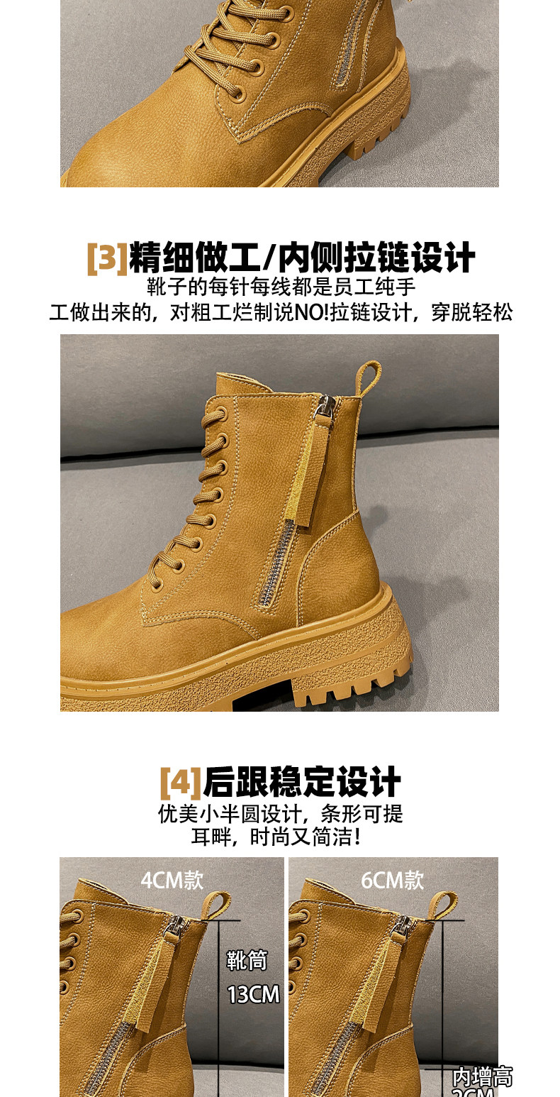 Women's Martin boots 2024 winter new inner heightening autumn and winter genuine leather thick sole plus velvet warm and stylish short boots