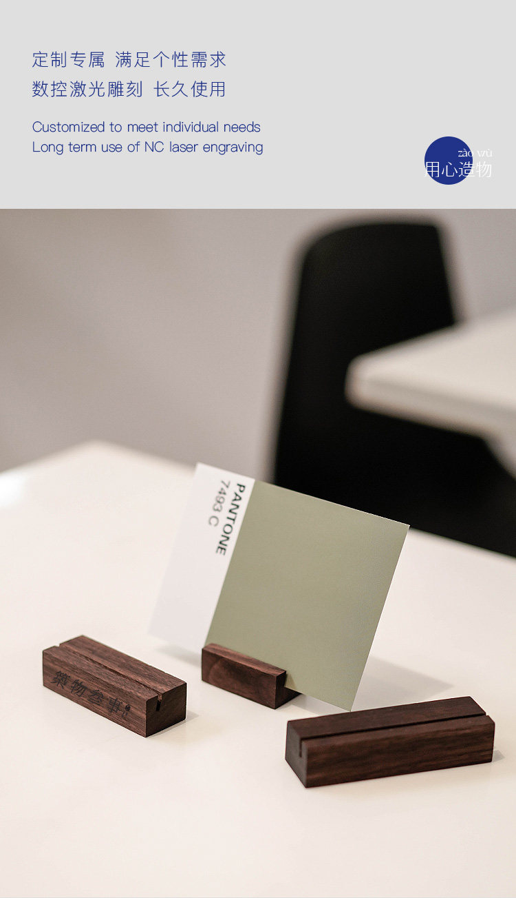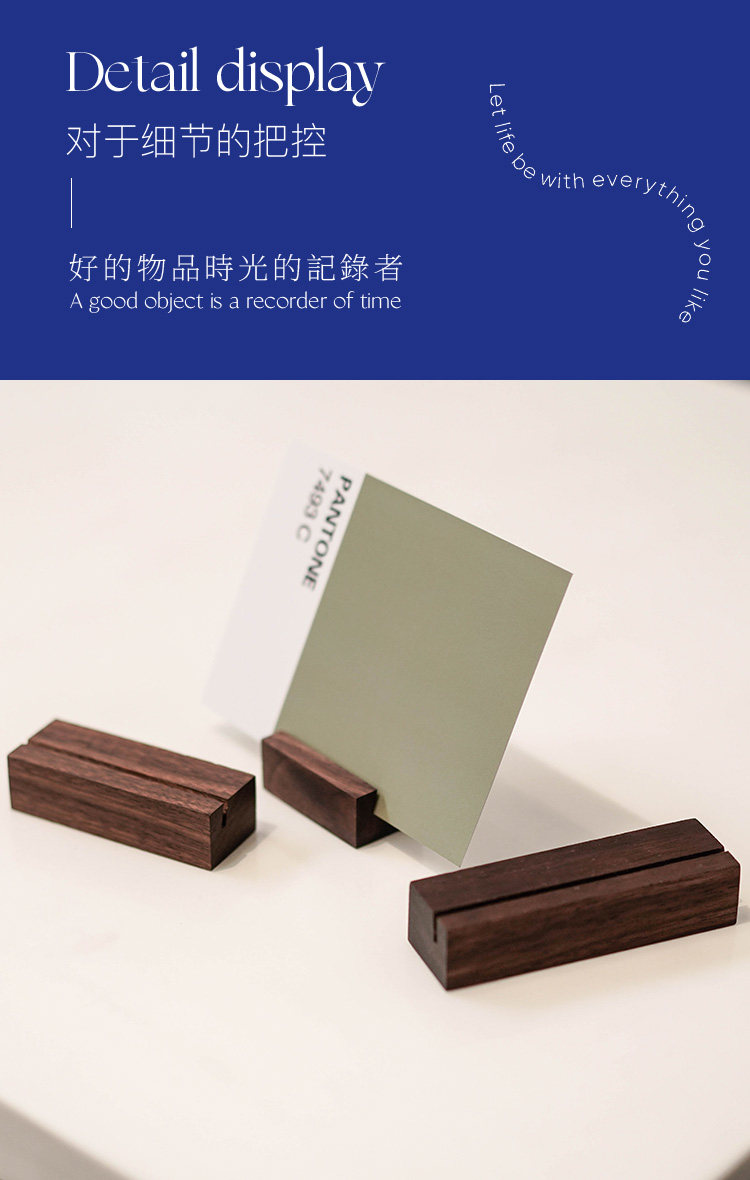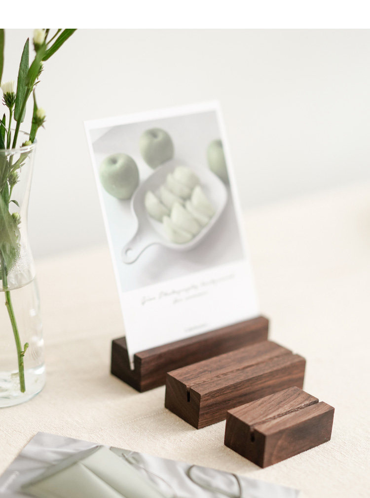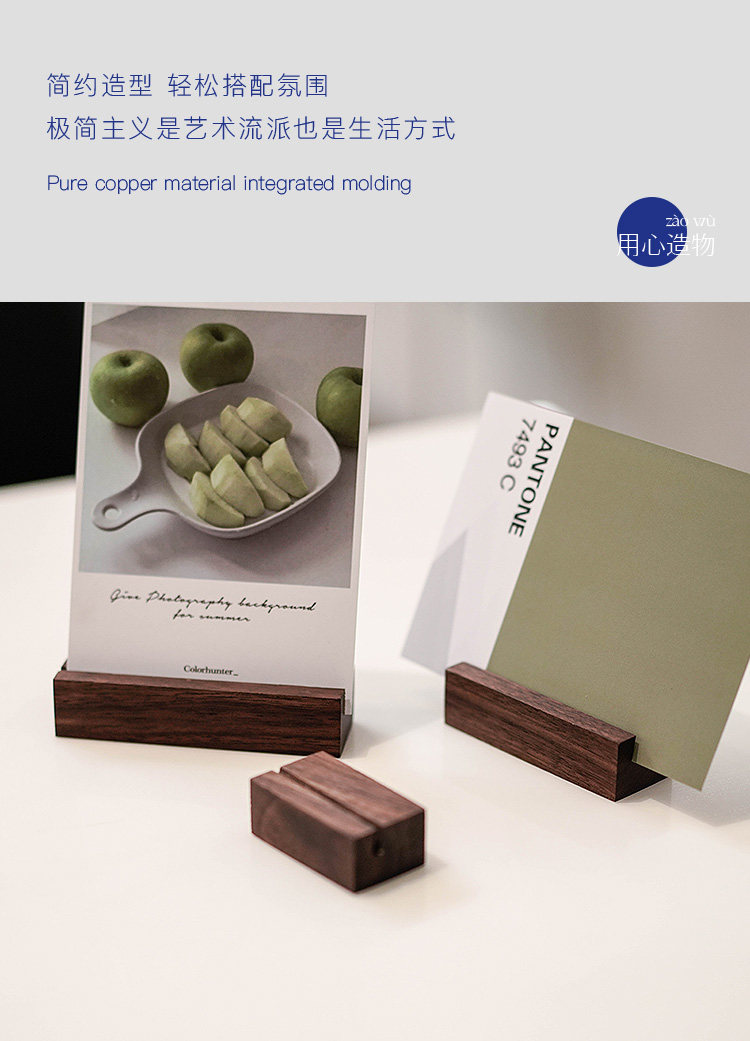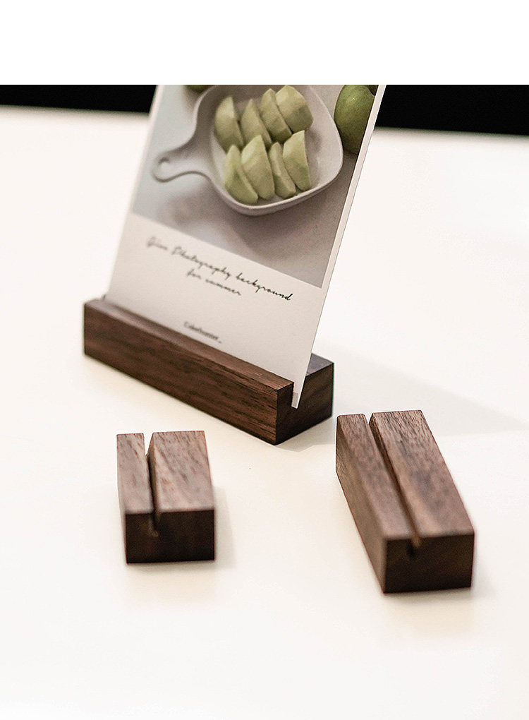 胡桃木卡座 复古留言立夹桌面装饰摆件 实木办公室台面明信片照片相片标签名片便签夹立式小夹子支架摆件