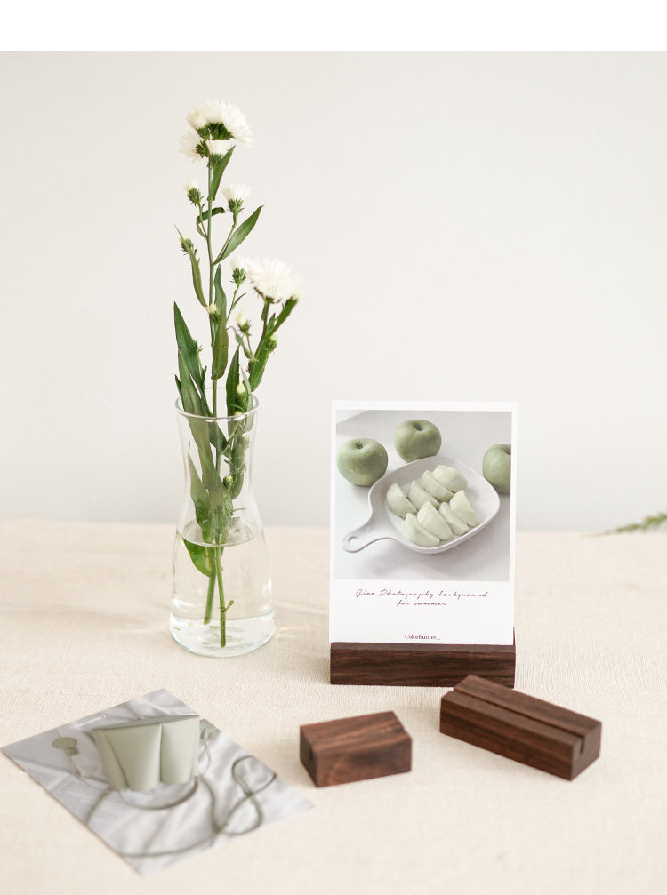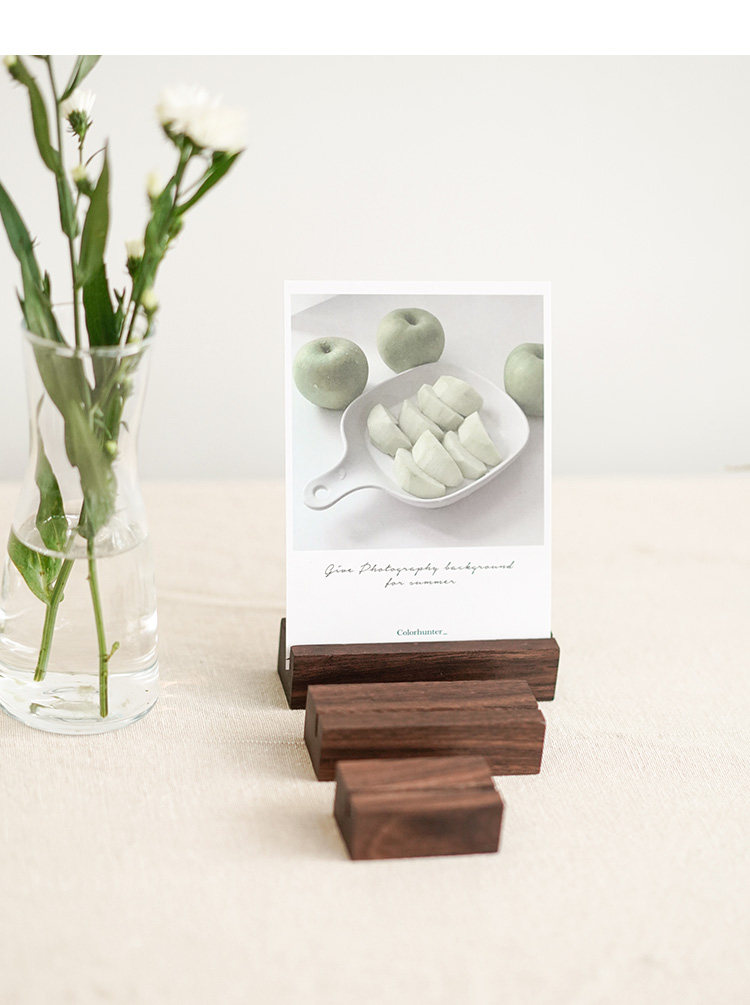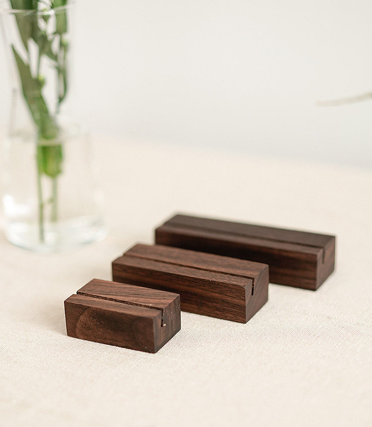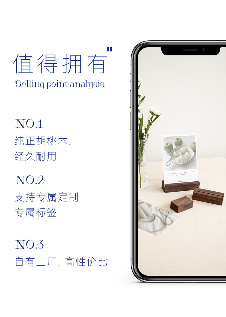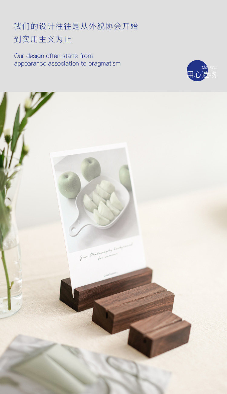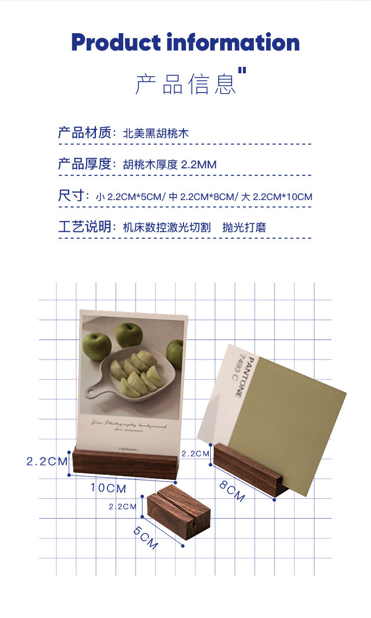 胡桃木卡座 复古留言立夹桌面装饰摆件 实木办公室台面明信片照片相片标签名片便签夹立式小夹子支架摆件