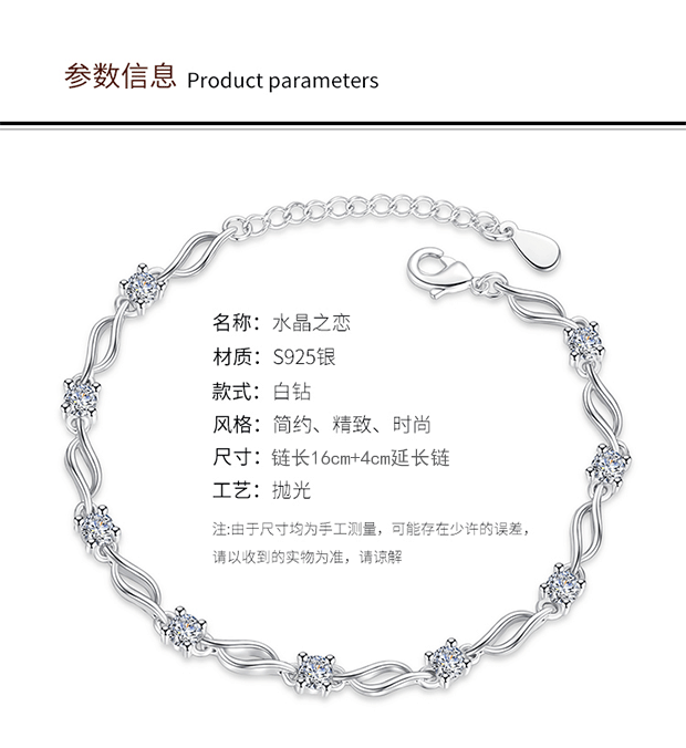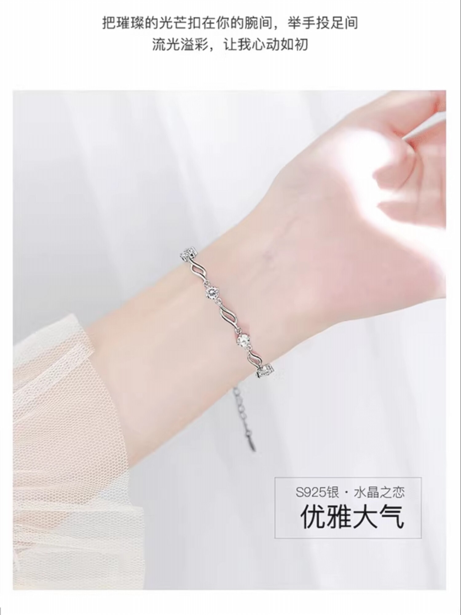 Fan qi is suitable for crystal love sterling silver bracelet for women 2025 new style girl bestie bracelet light luxury niche exquisite