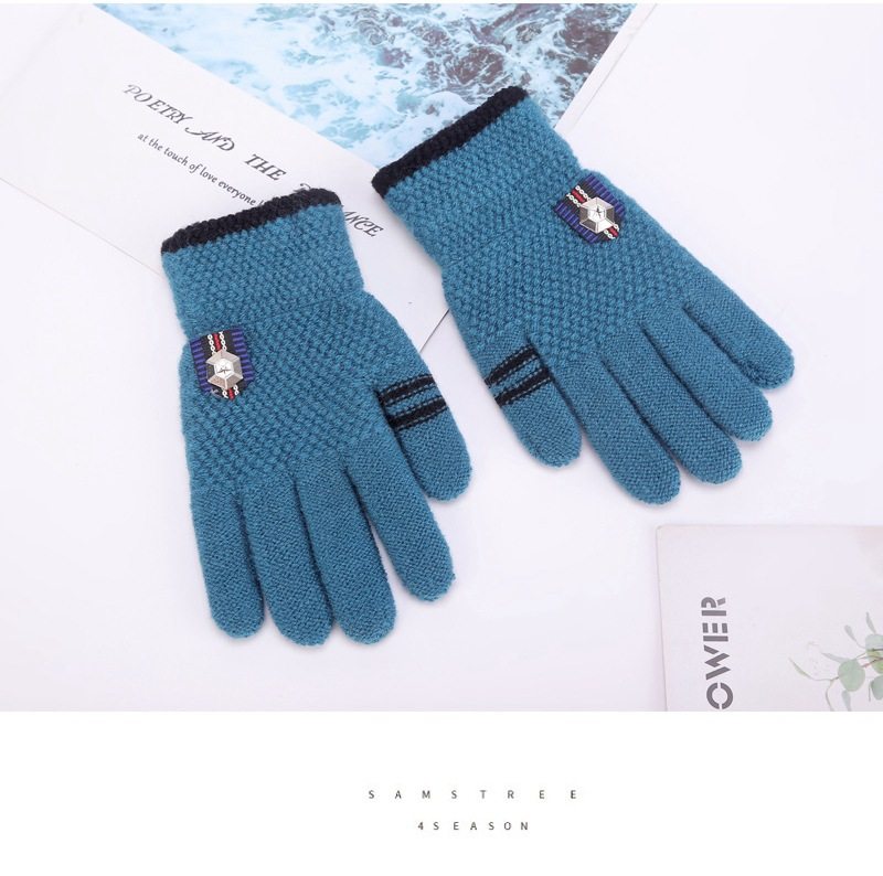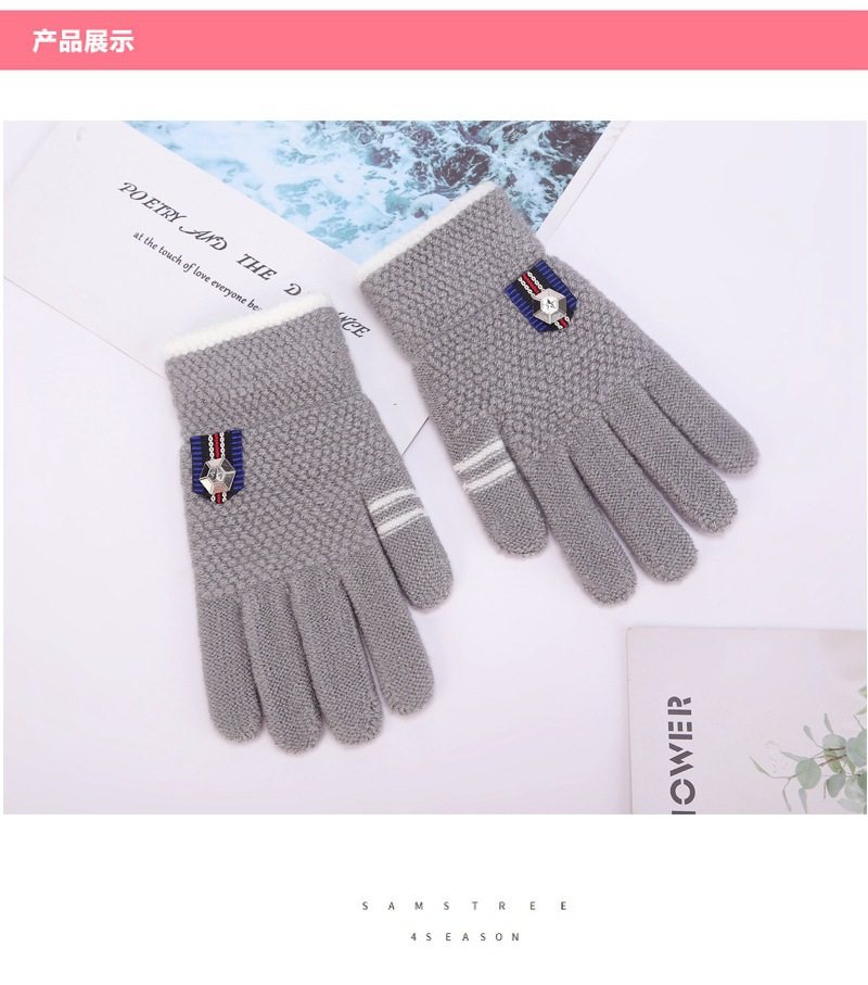 Children's gloves winter for boys 6-12 years old, middle and older children's five-finger woolen boys' warm primary school students' thickened fingers