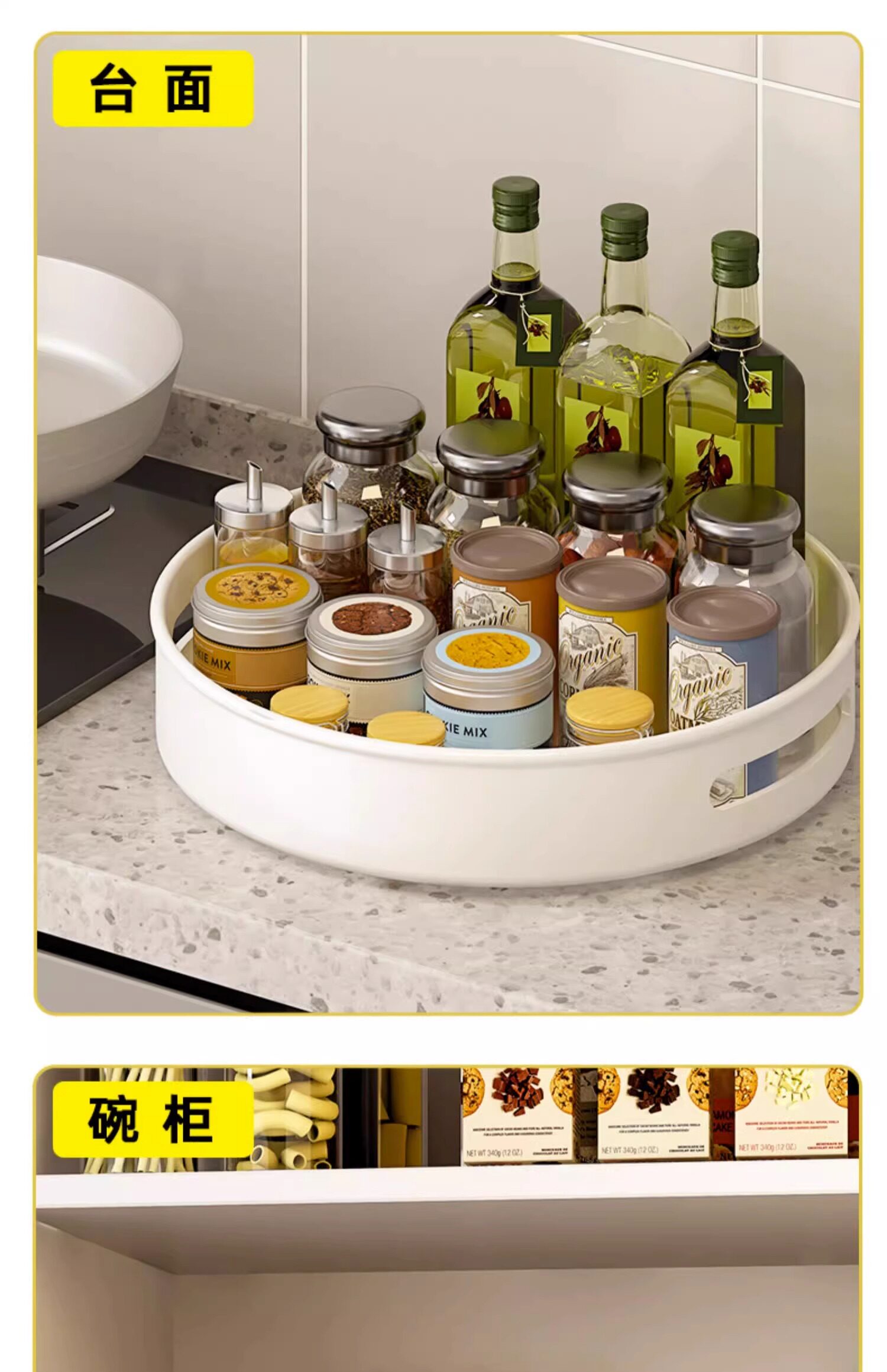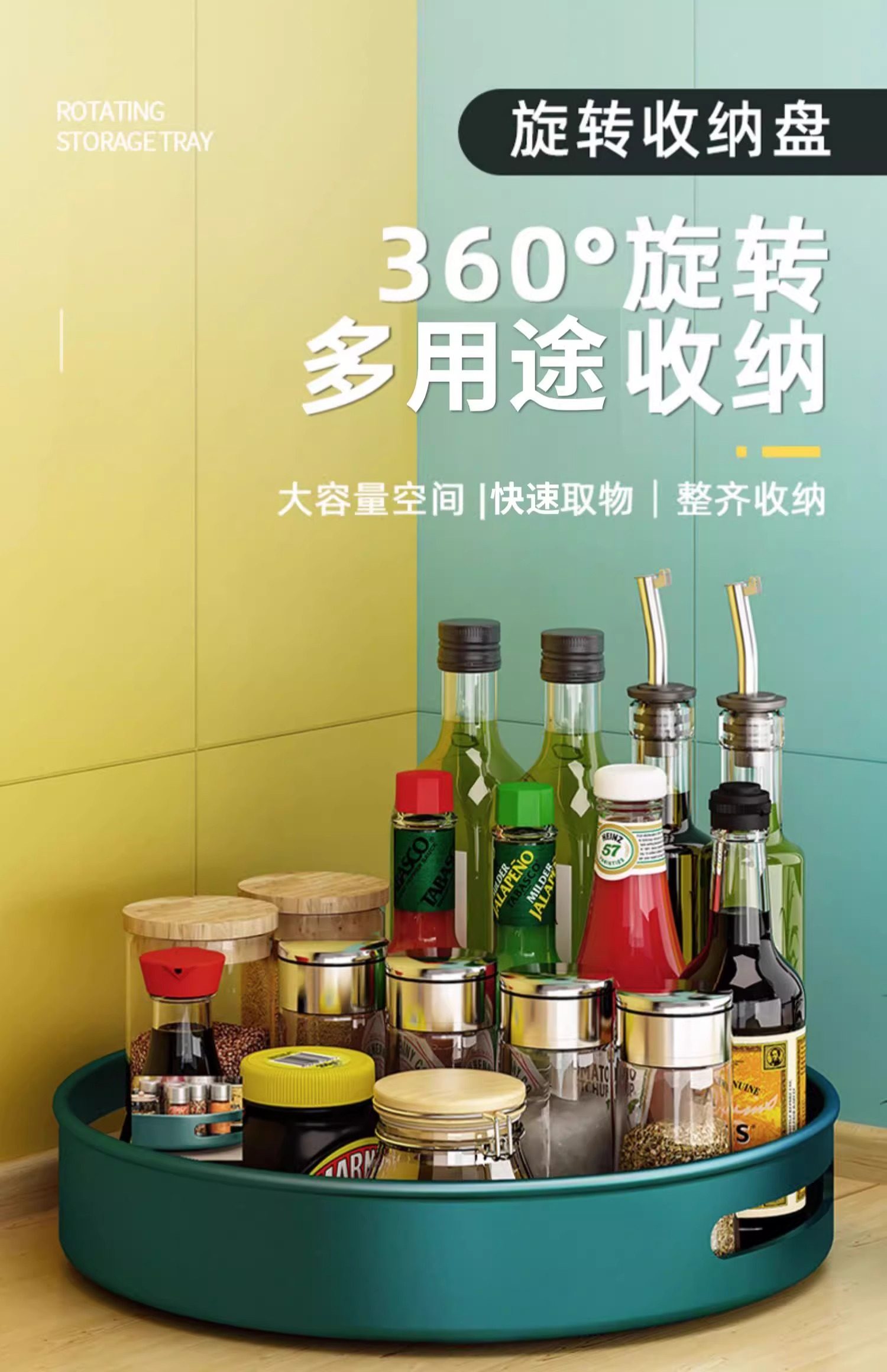 Rotating seasoning storage rack kitchen household 360 degree round seasoning rack countertop oil, salt, sauce, vinegar storage turntable