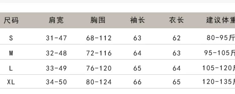 China (cm) 165 / 88-90 170 / 96-98 175 / 108-110 180 / 118-122 185 / 126-130