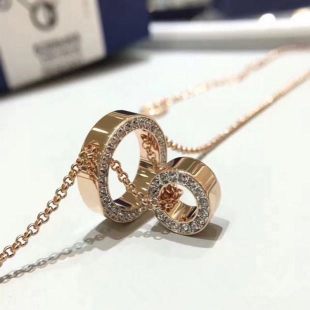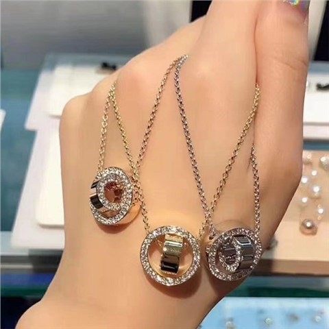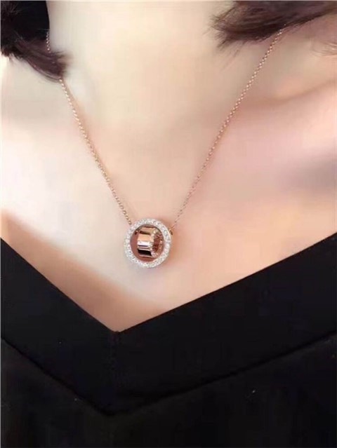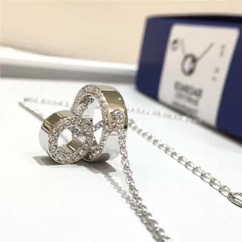 Austrian crystal double ring fortune-turning necklace modern women's clavicle chain jewelry temperament valentine's day birthday gift