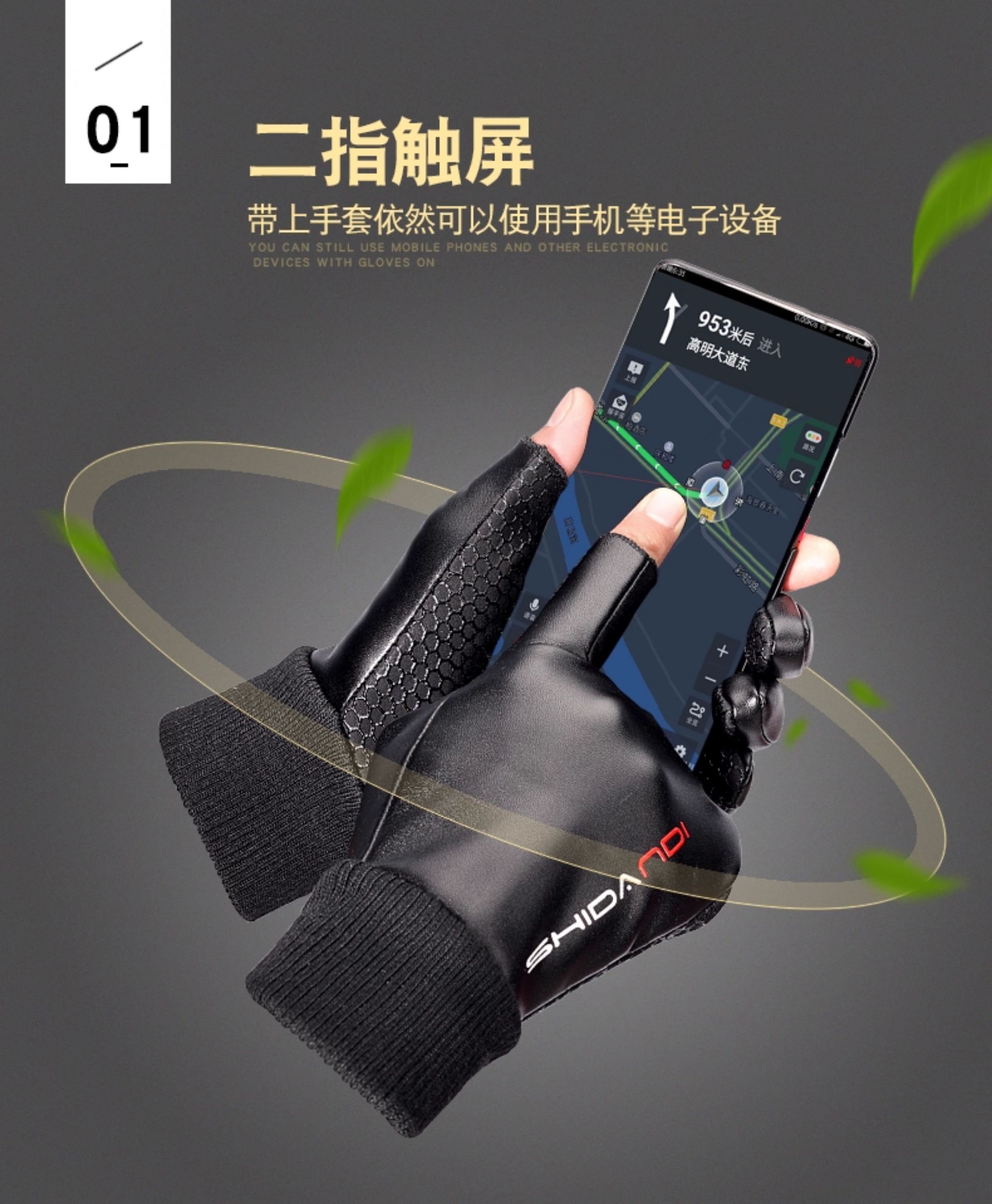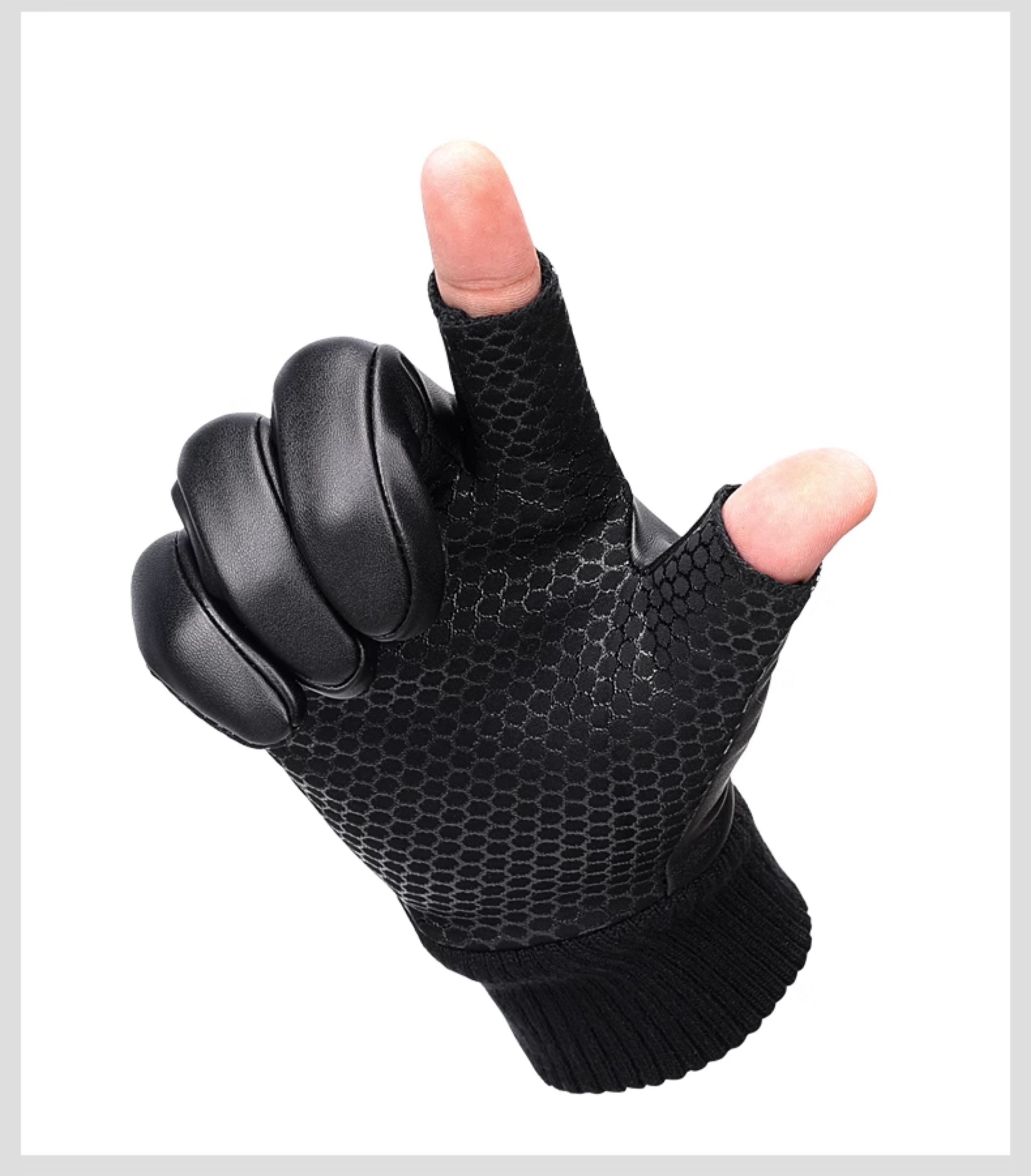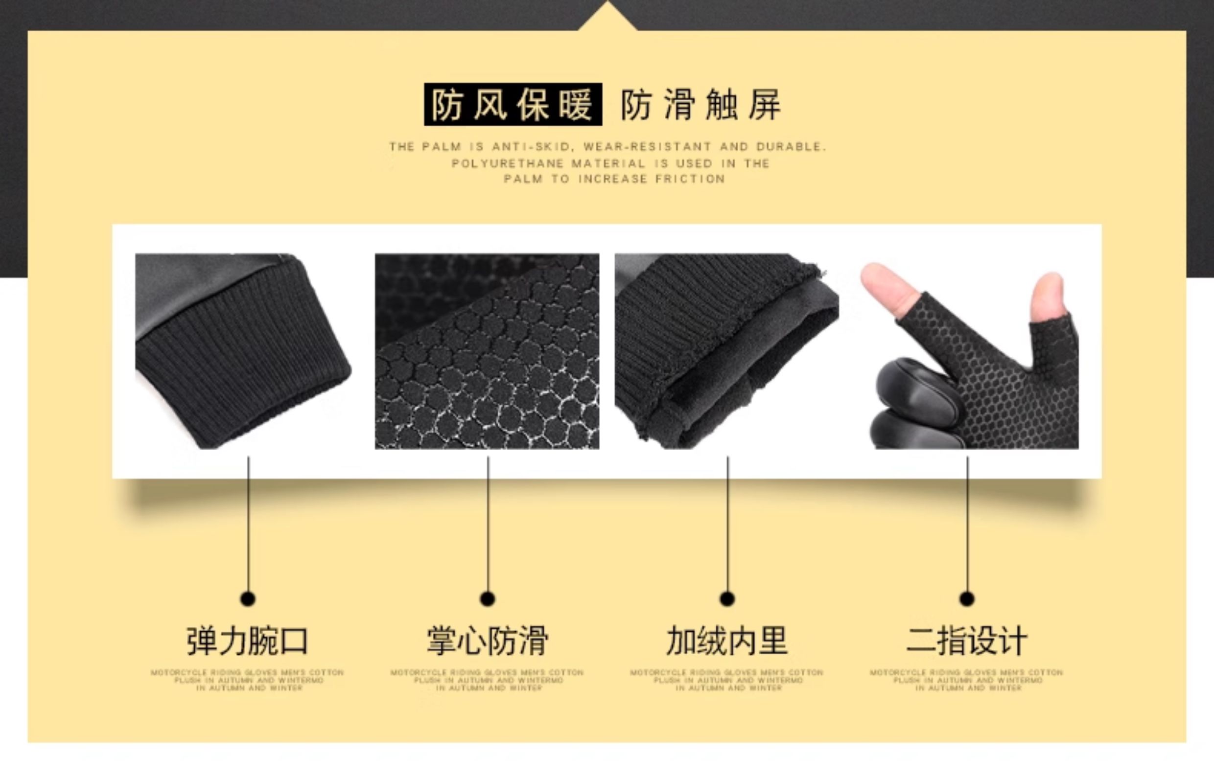 Men's Autumn and Winter Outdoor Fleece-Lined Warm Gloves for Driving, Cycling, and Delivery, Non-Slip, Windproof, Waterproof, Two-Finger Dual-Use