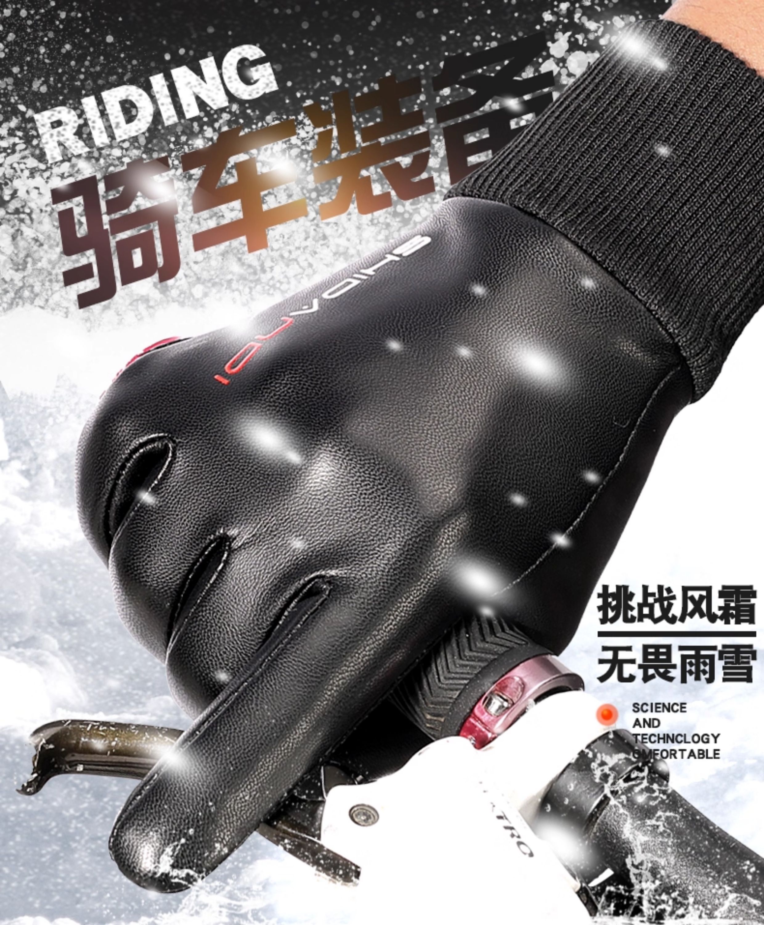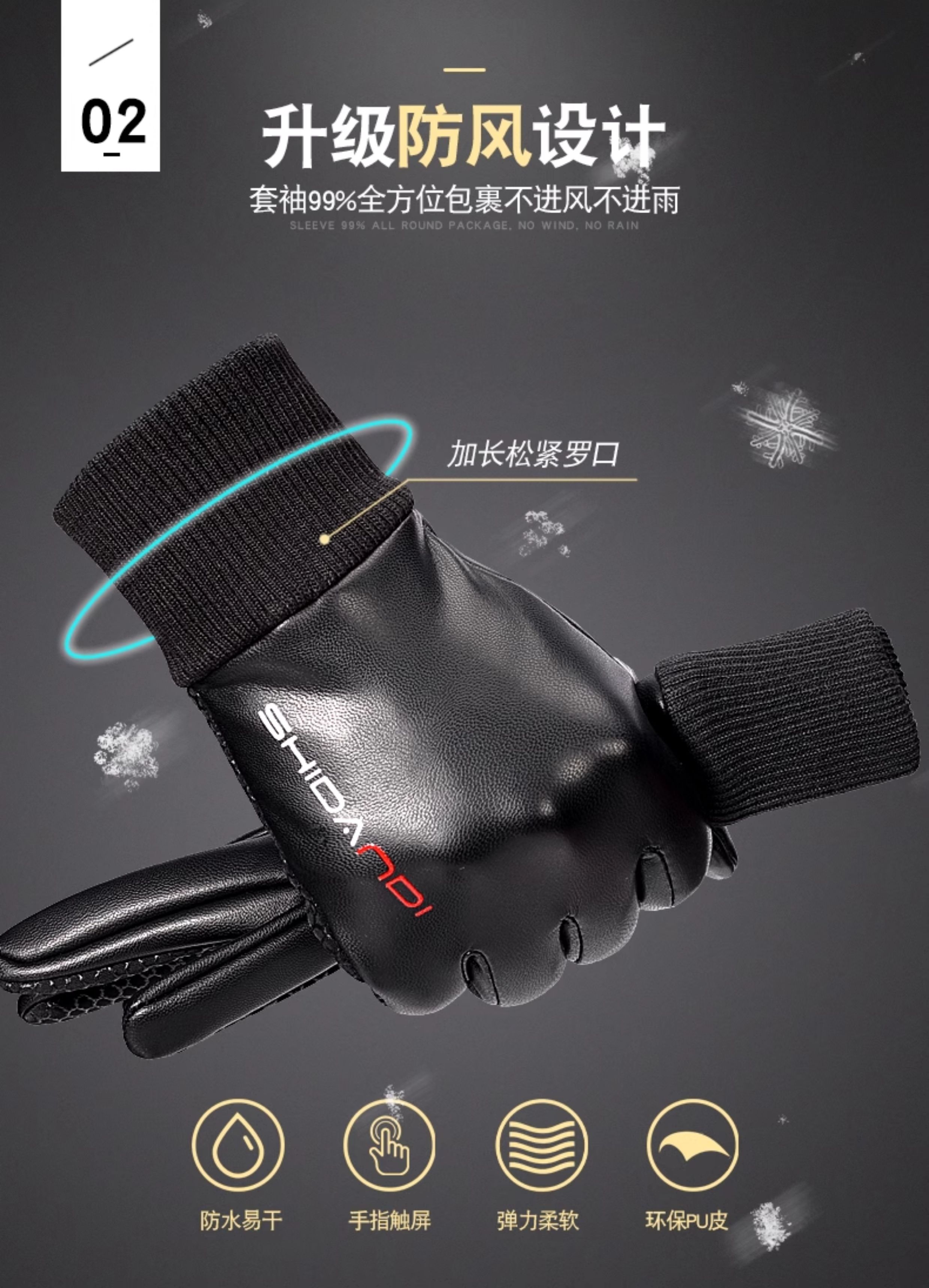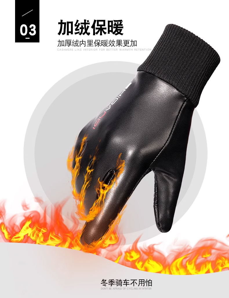 Men's Autumn and Winter Outdoor Fleece-Lined Warm Gloves for Driving, Cycling, and Delivery, Non-Slip, Windproof, Waterproof, Two-Finger Dual-Use