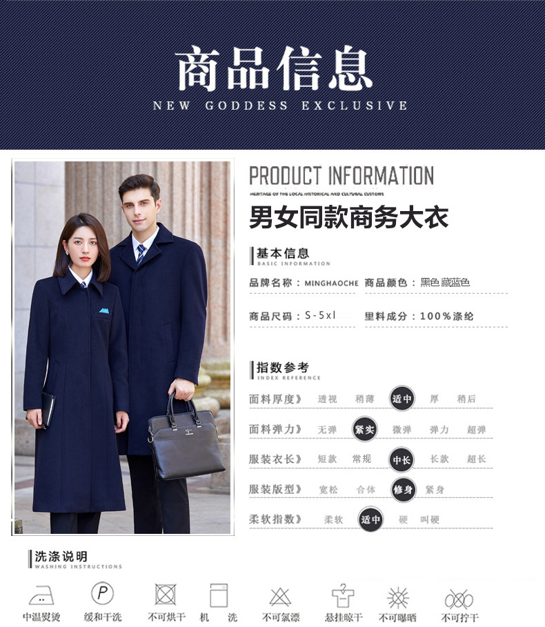 High-End Professional Woolen Coat Workwear for Men and Women in Autumn and Winter, Hotel Administrative Front Desk Reception Cashmere Woolen Coat Work Uniform