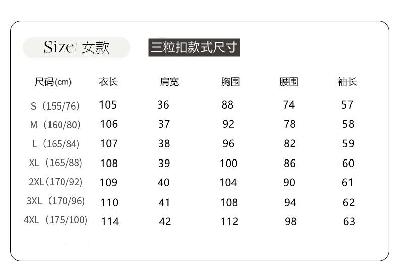China (cm) 160-165/84-86 165-170 / 88-90 167-172 / 92-96 168-173 / 98-102 170-176 / 106-110