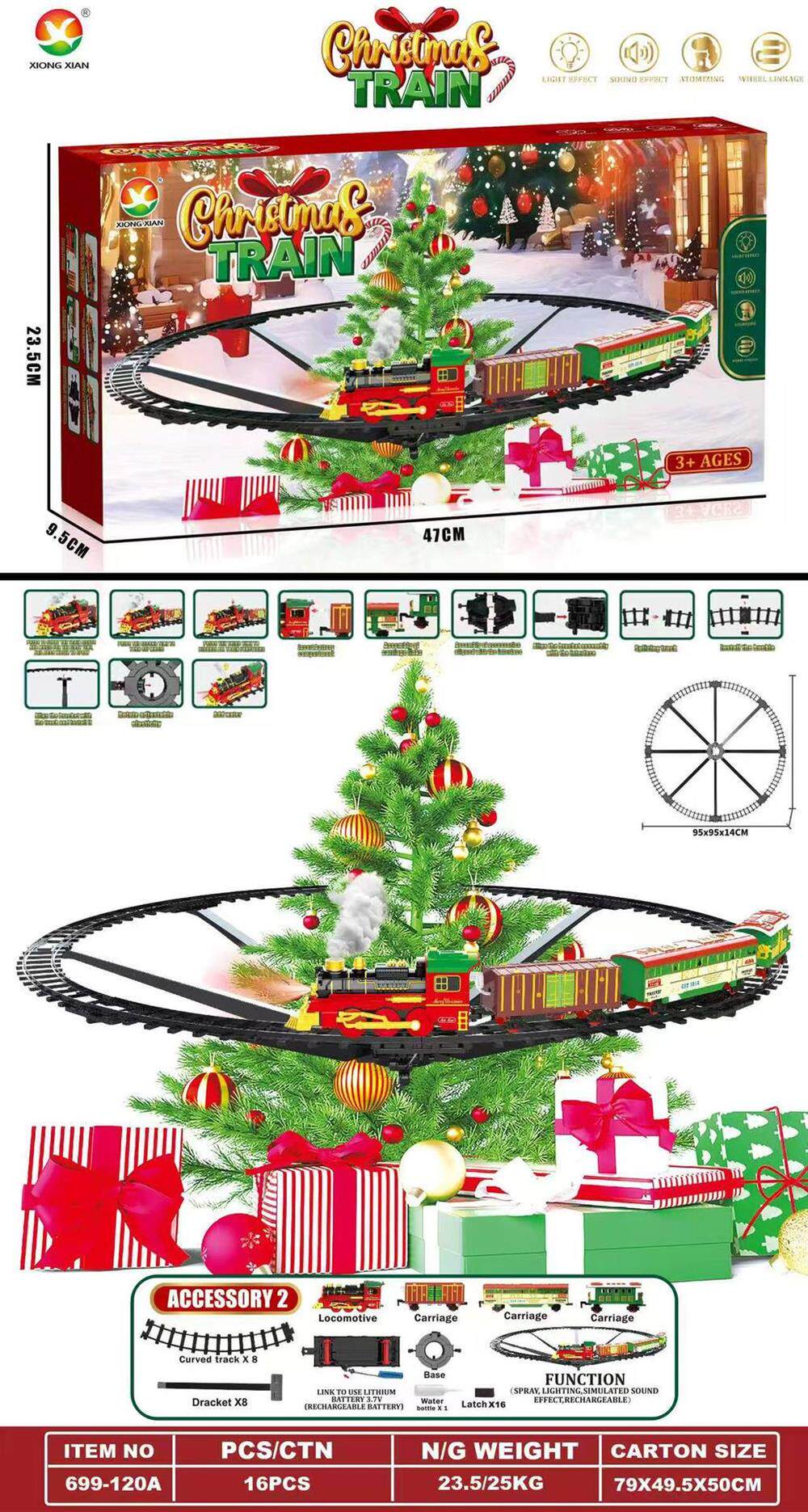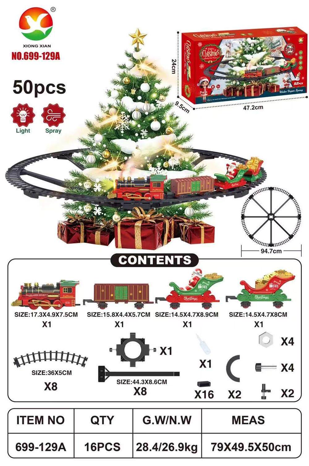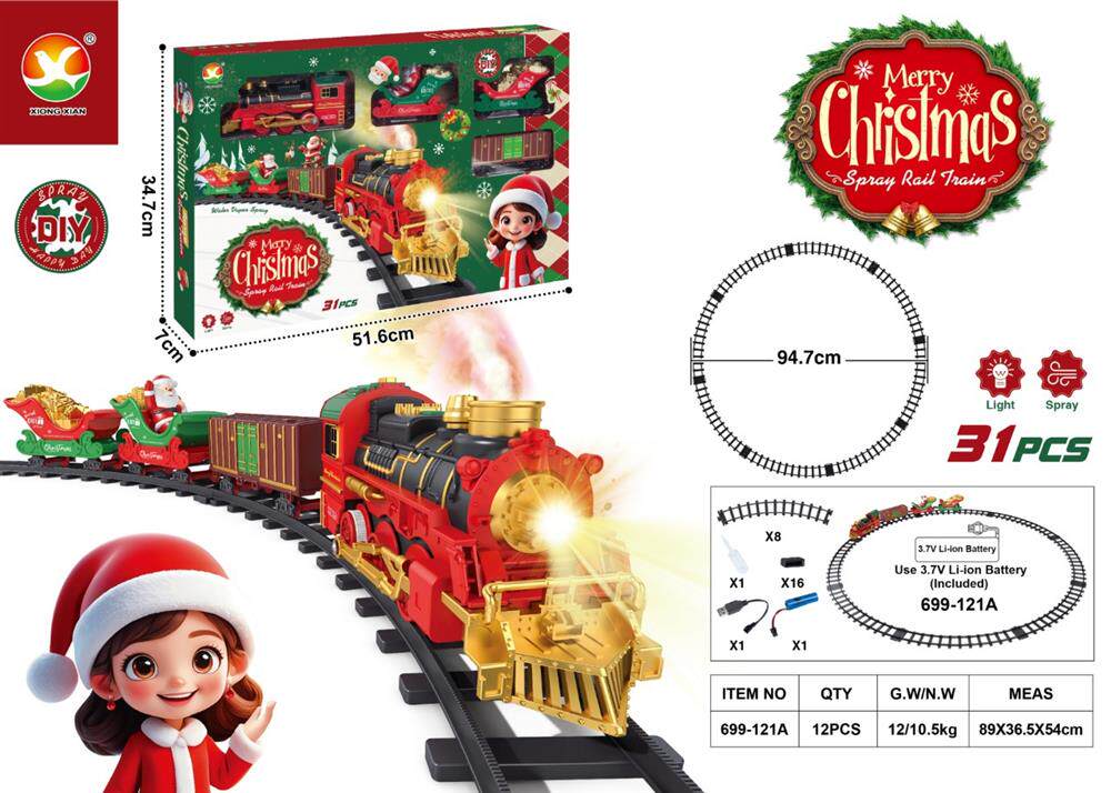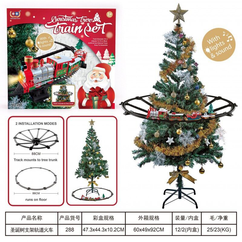 Cross-border christmas rail car hanging spray version electric small train light music rail train christmas gift