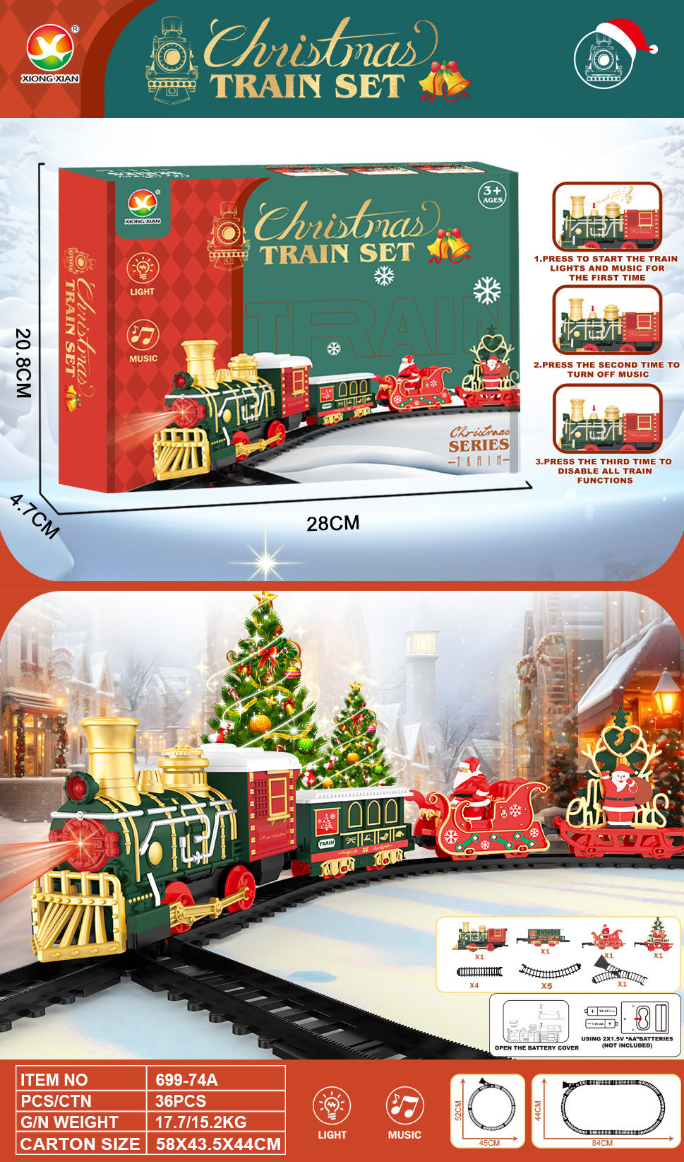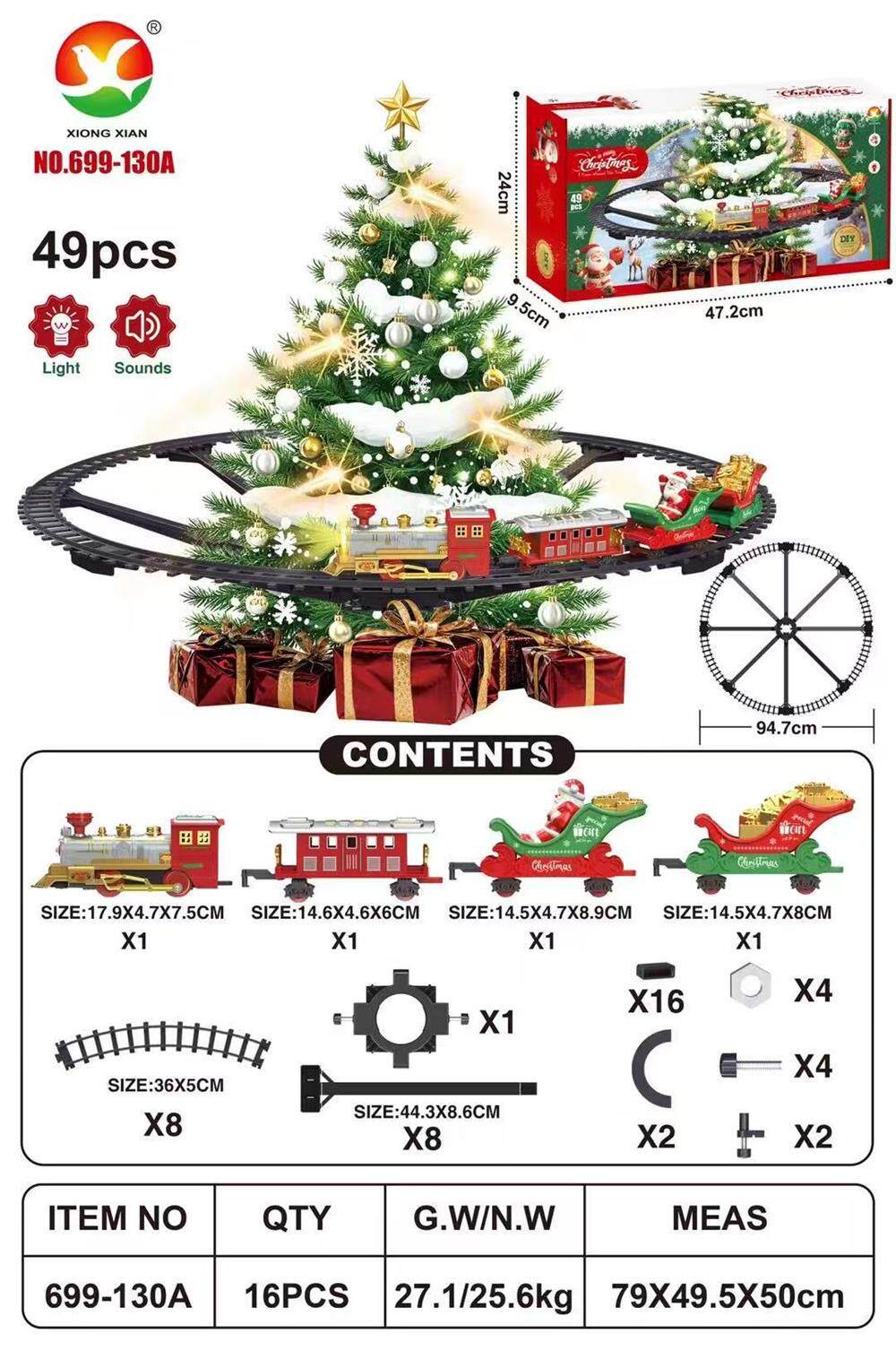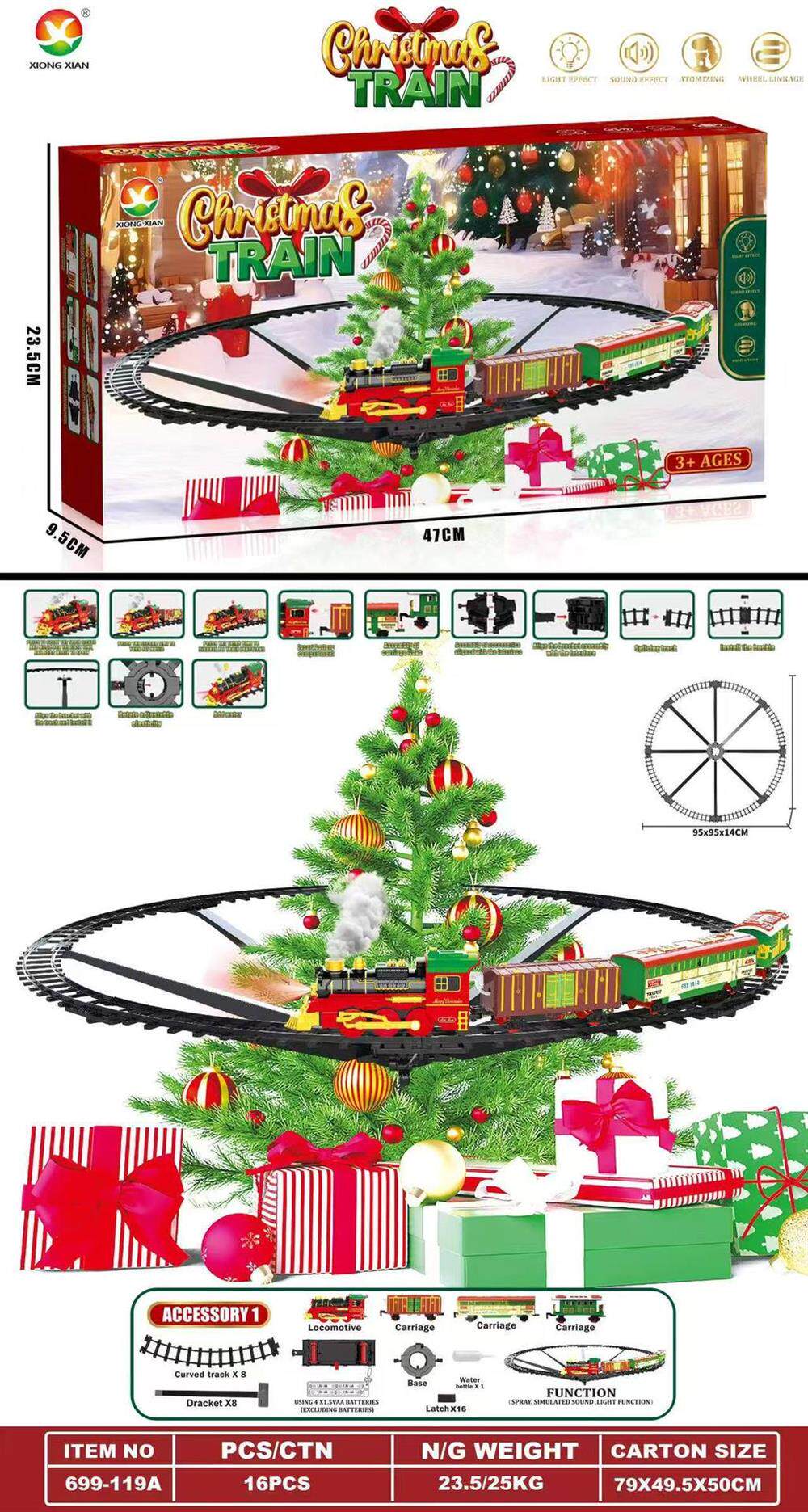 Cross-border christmas rail car hanging spray version electric small train light music rail train christmas gift