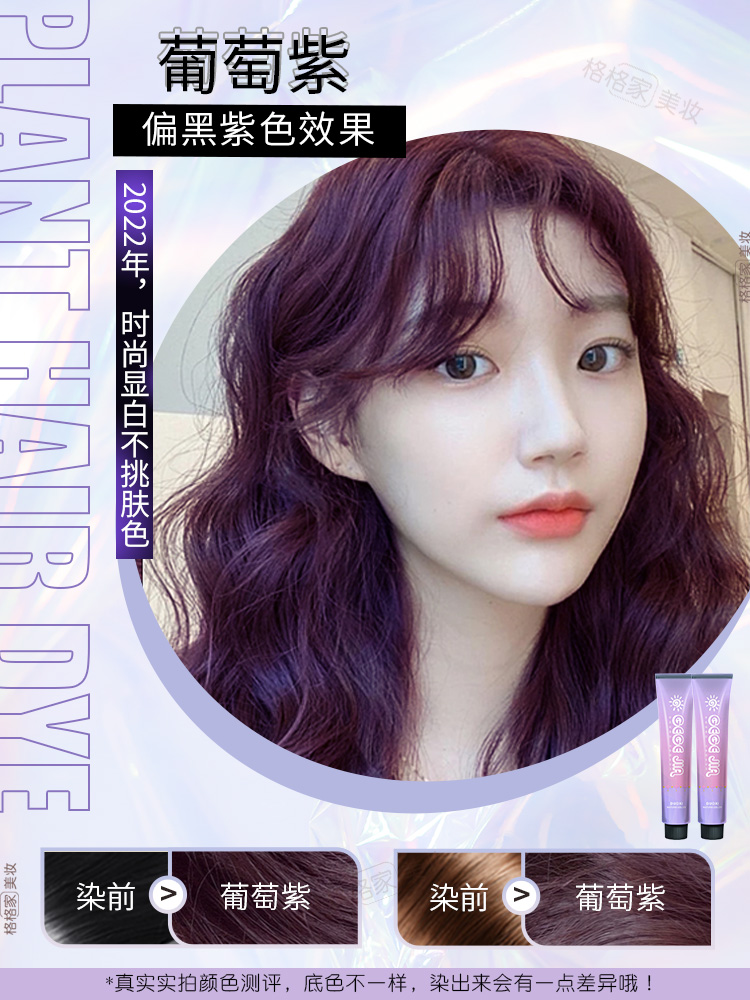 黑紫色染发剂膏泡泡沫葡萄紫植物天然正品纯免漂黑加仑紫女树莓红