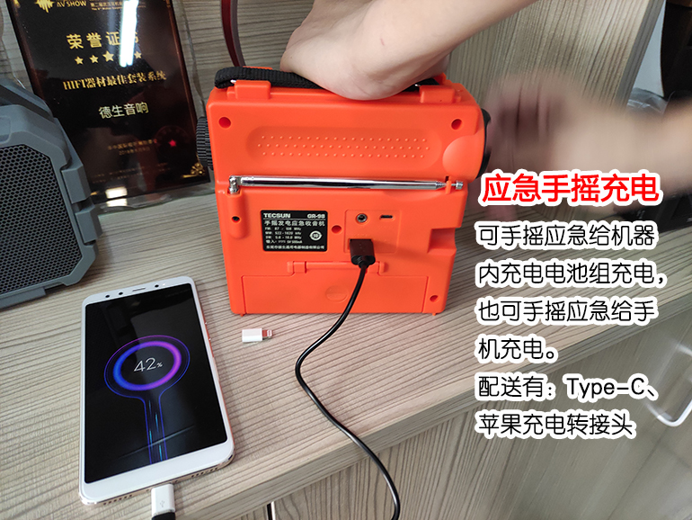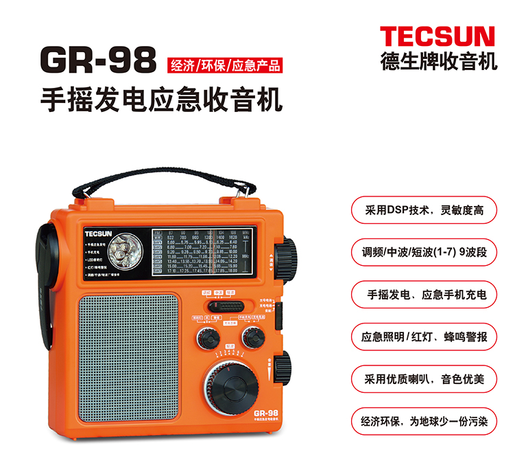 Tecsun/德生GR-98 DSP调频中波短波指针式手摇发电家庭应急收音机