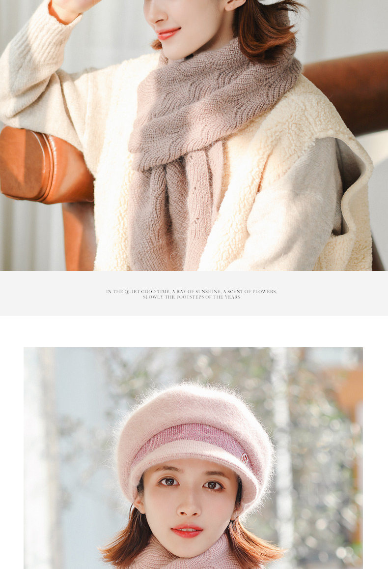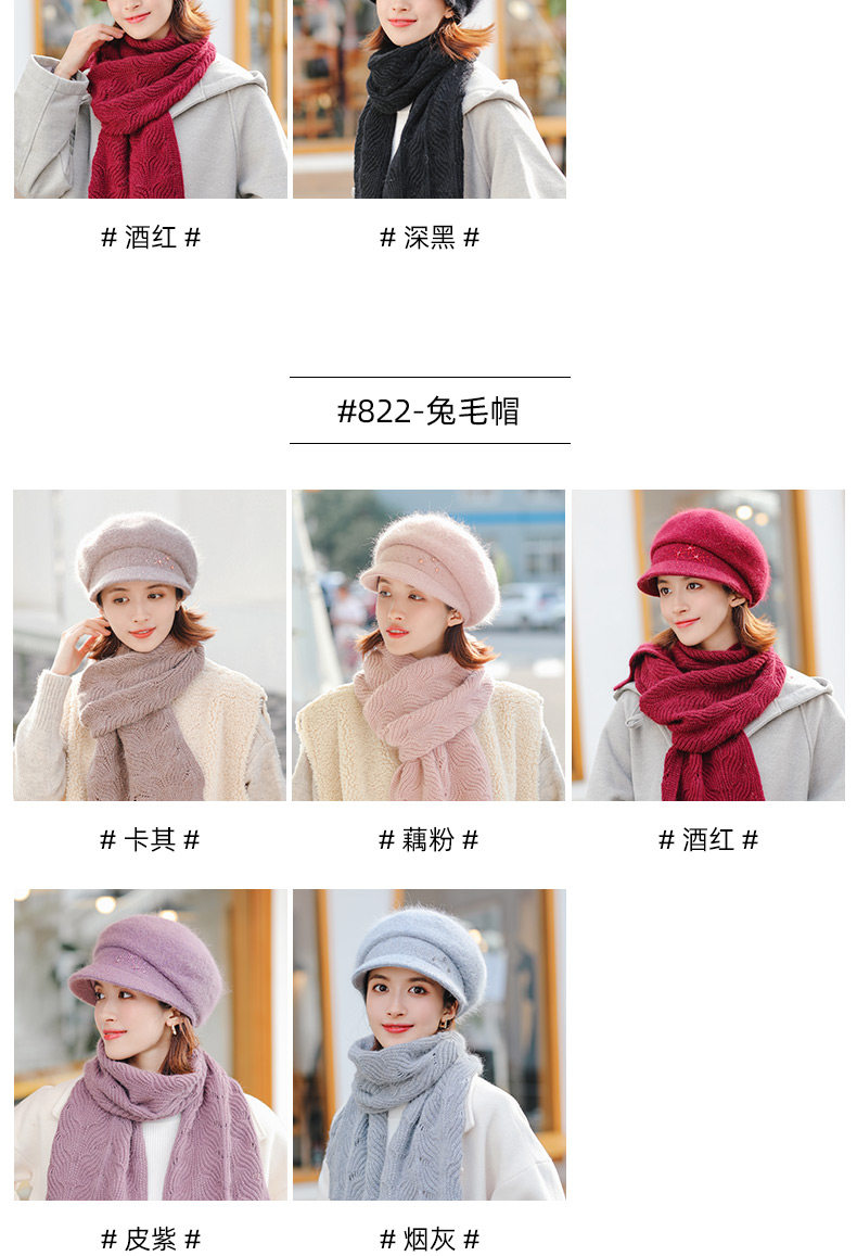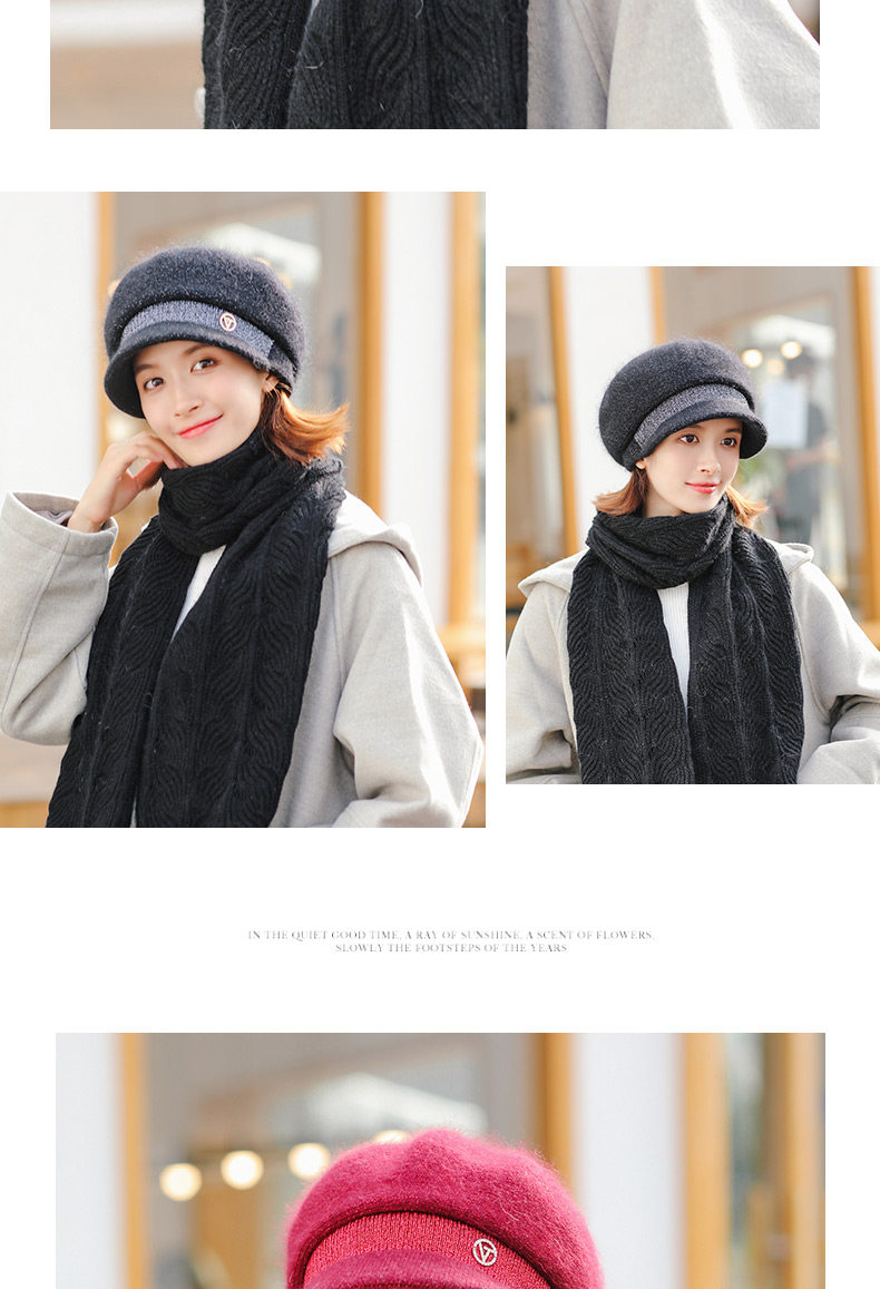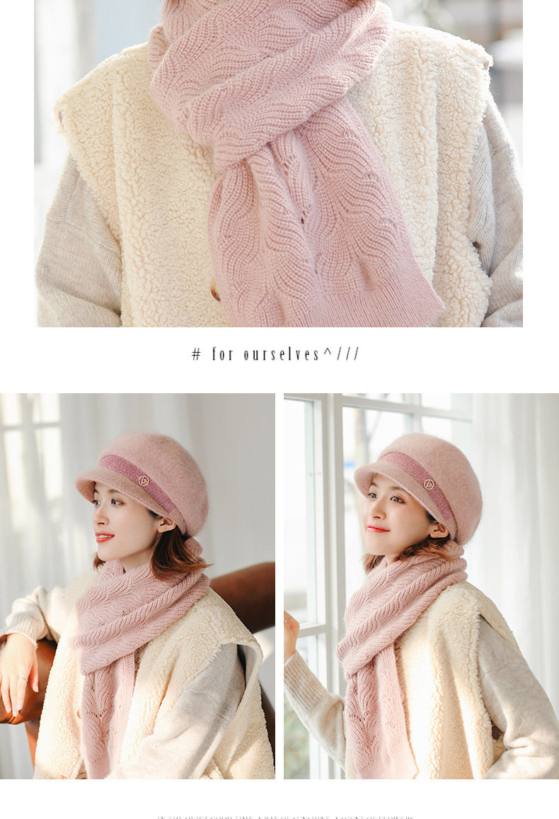 Trendy brand furry scarf hat set for women winter new versatile warm woolen plus velvet knitted hat for middle-aged and elderly people
